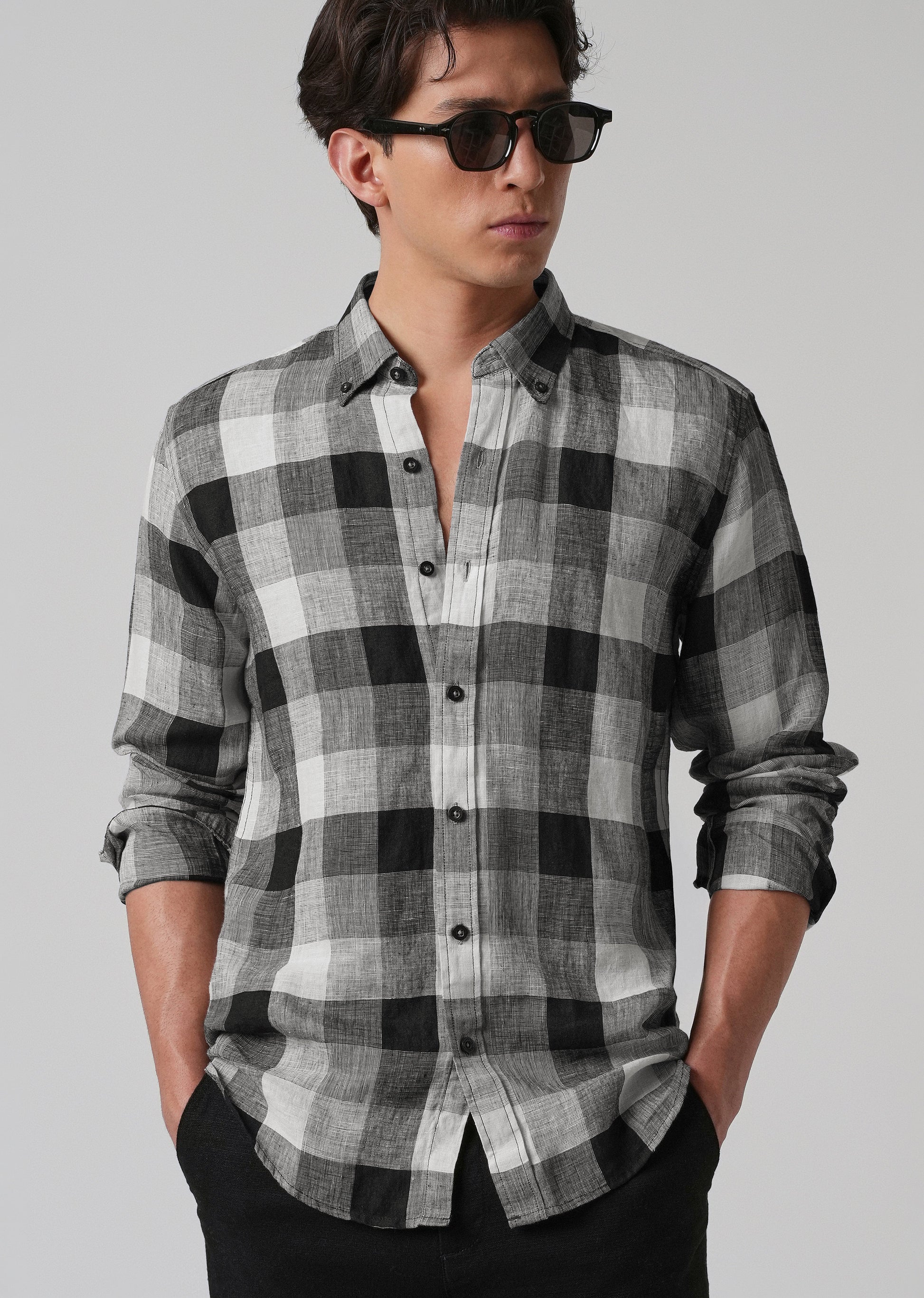 100% Pure Irish Linen Quadric Checks Shirt