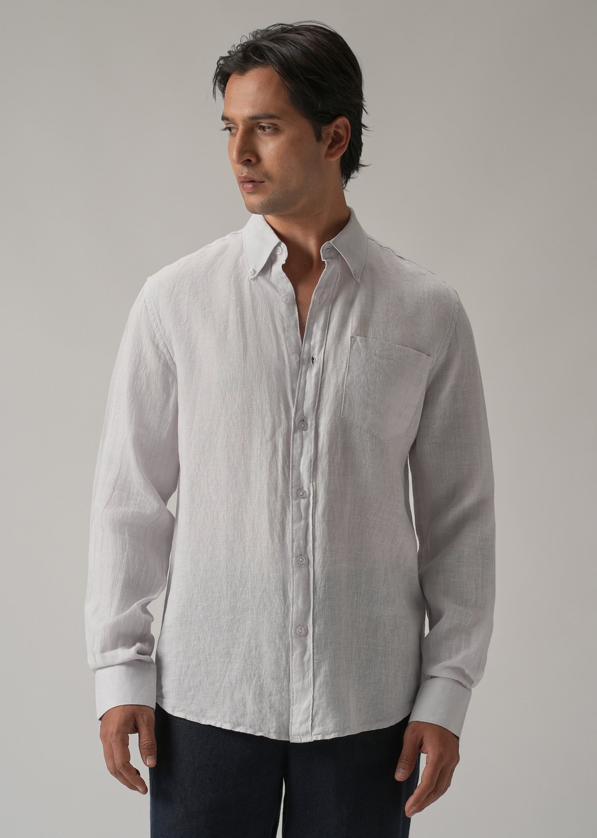 Lightweight, breathable, and made from pure linen. This shirt is designed for comfort and a polished look. It features a spread collar, button-up front, and long sleeves with buttoned cuffs. The chest pocket adds a functional touch, while fine stitching ensures a clean finish.