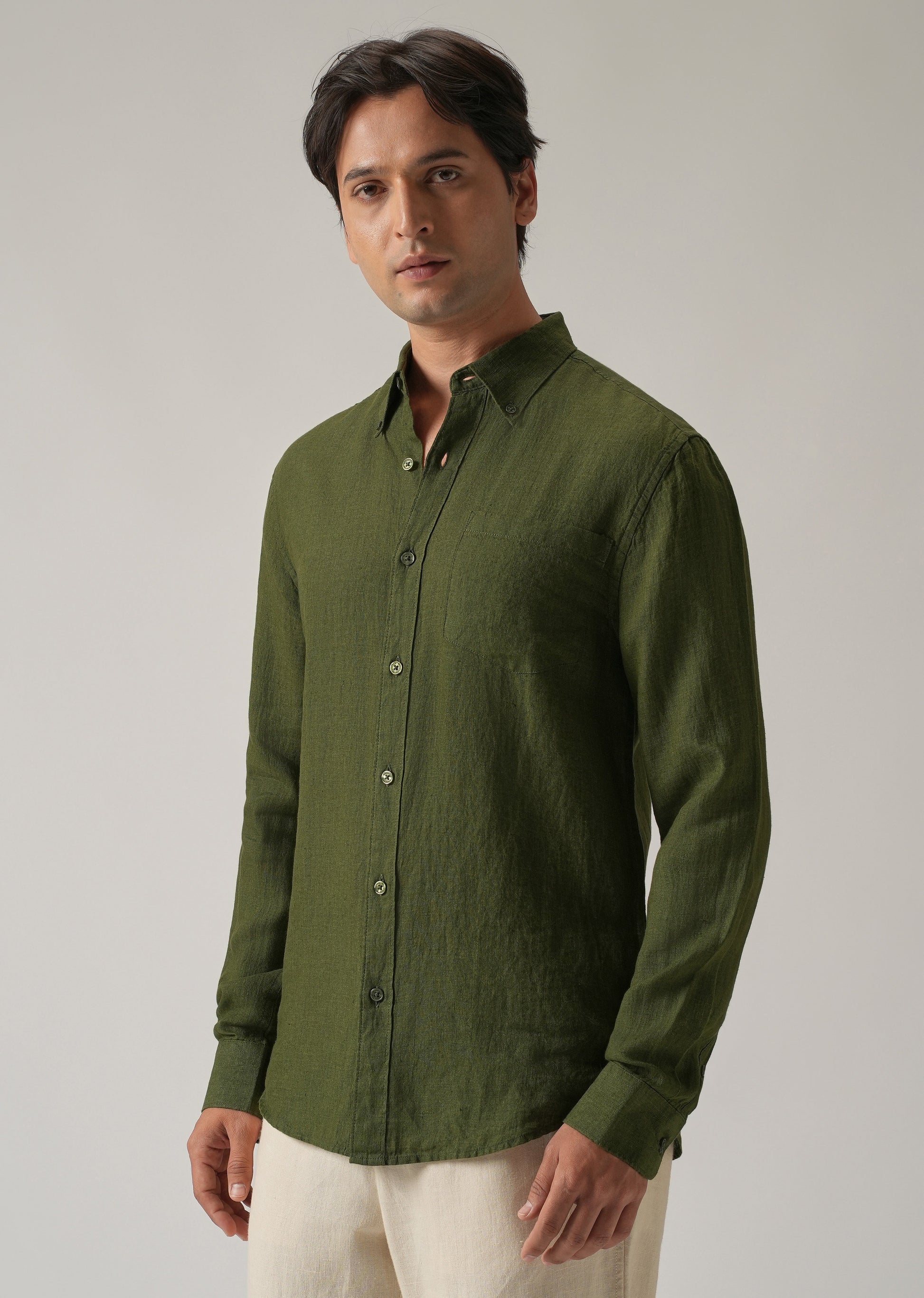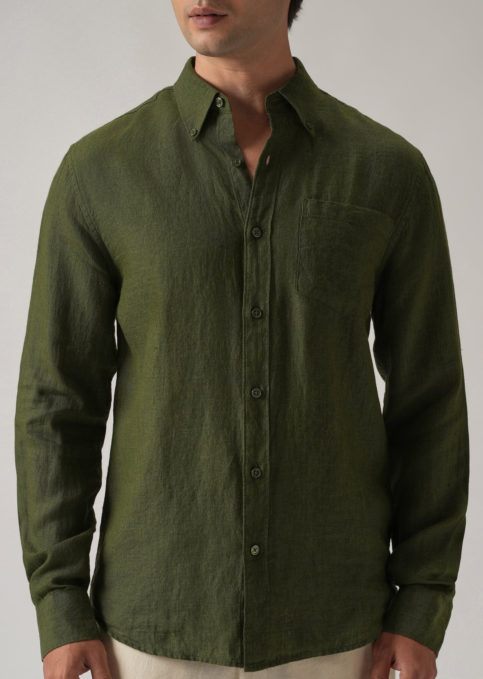 Lightweight, breathable, and made from pure linen. This shirt is designed for comfort and a polished look. It features a spread collar, button-up front, and long sleeves with buttoned cuffs. The chest pocket adds a functional touch, while fine stitching ensures a clean finish.