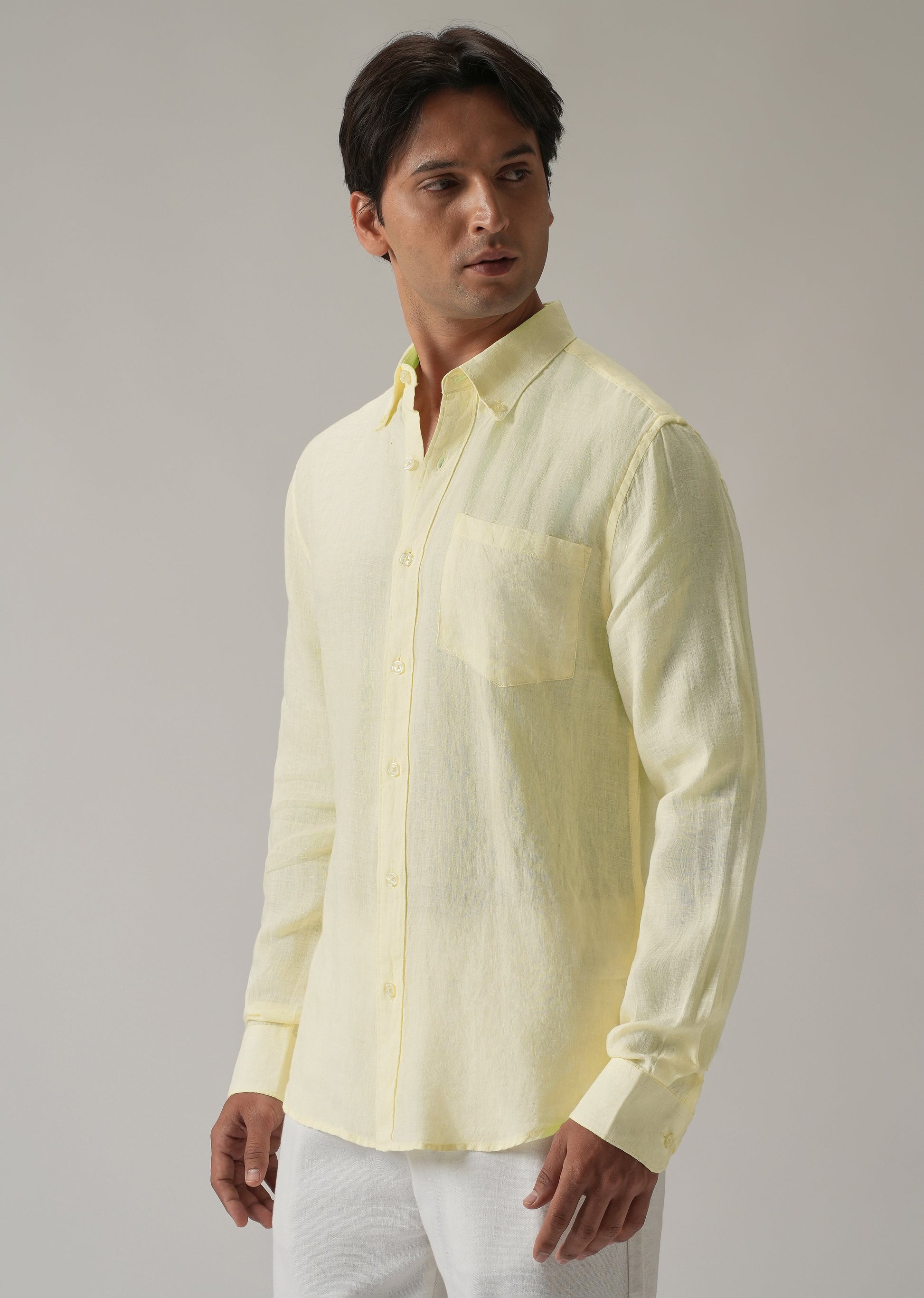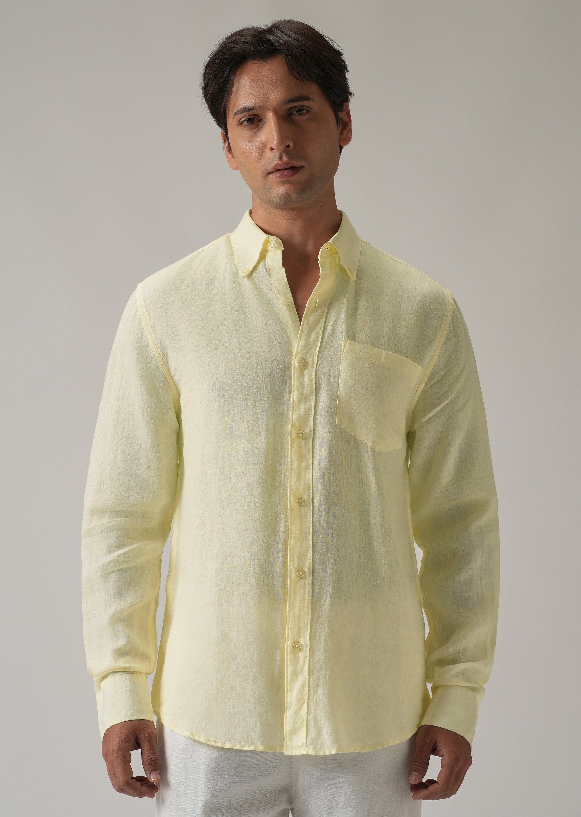 Lightweight, breathable, and made from pure linen. This shirt is designed for comfort and a polished look. It features a spread collar, button-up front, and long sleeves with buttoned cuffs. The chest pocket adds a functional touch, while fine stitching ensures a clean finish.