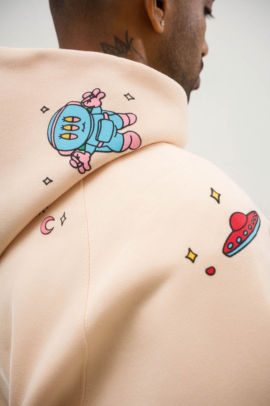 Celebrate personal victories, and milestones, and be at an all-time high with this playful and lighthearted hoodie crafted from a weighty cotton blend. Sprinkled with celestial assets from the UM design bank all over it, it’s a cosmic masterpiece. This baby pink hoodie is our all-time favorite. You know why ;)