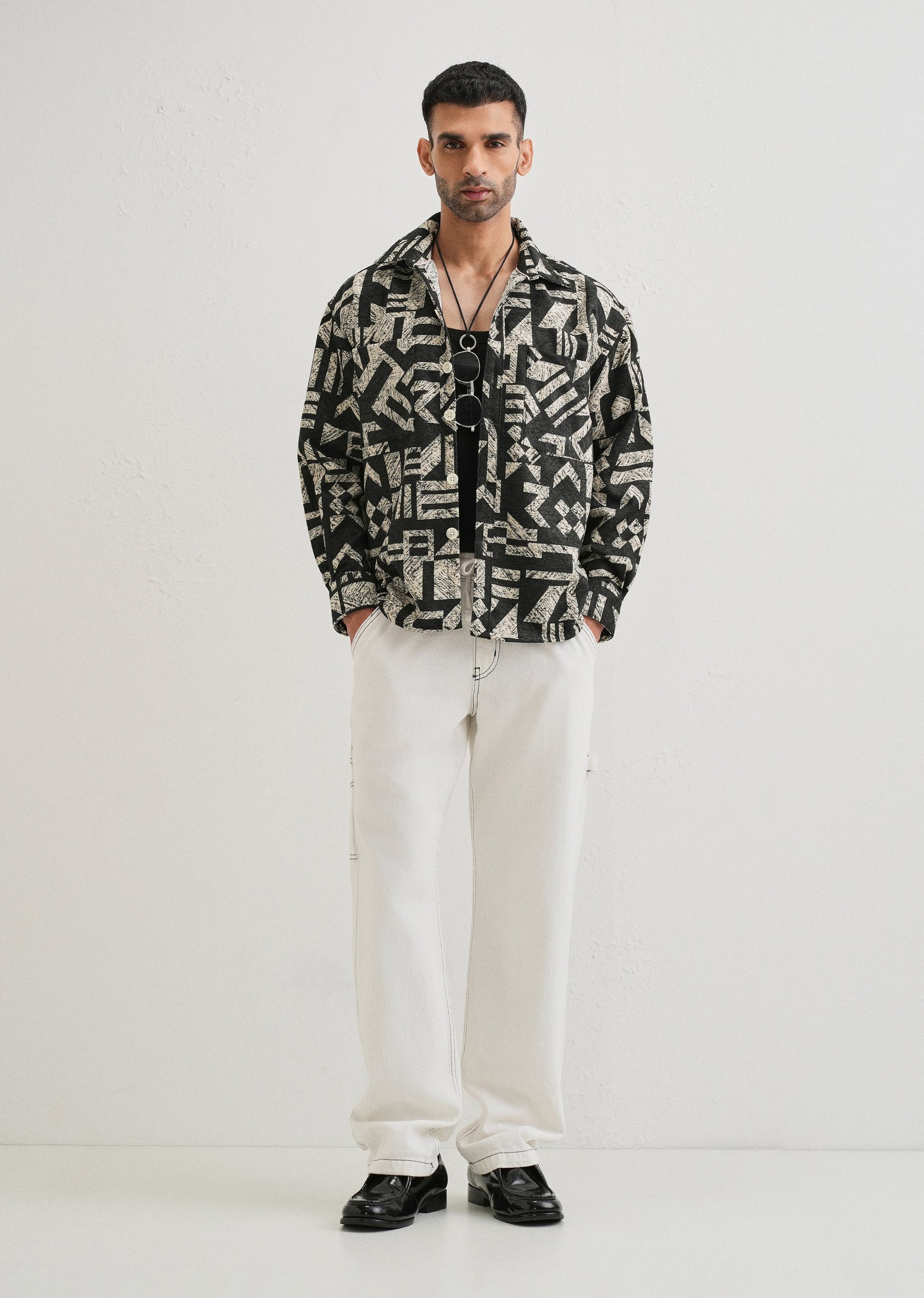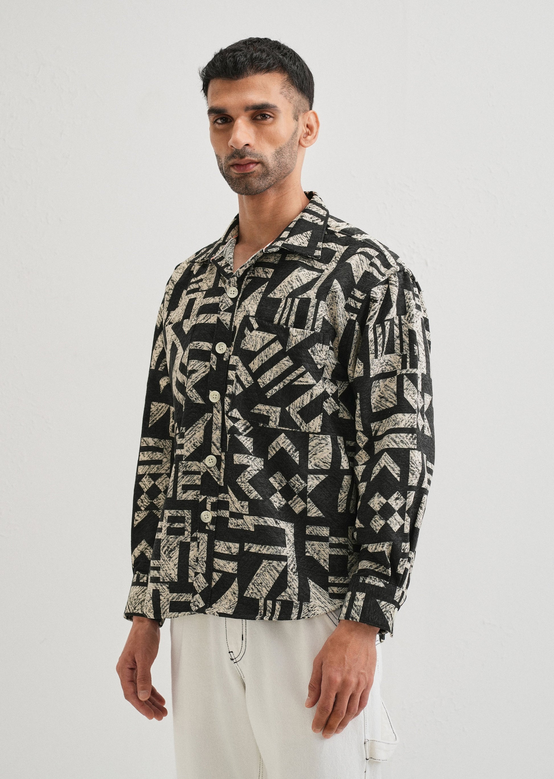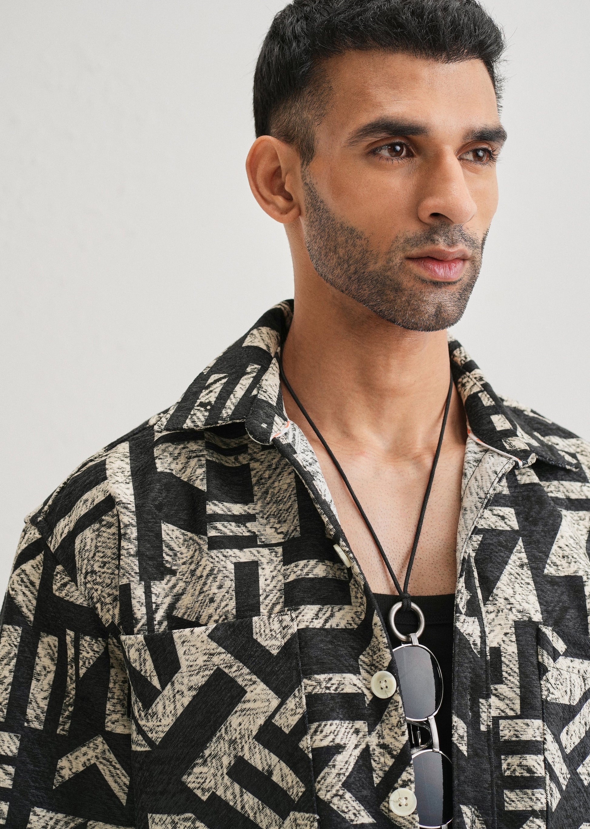 Beige Black Regular Fit Shacket