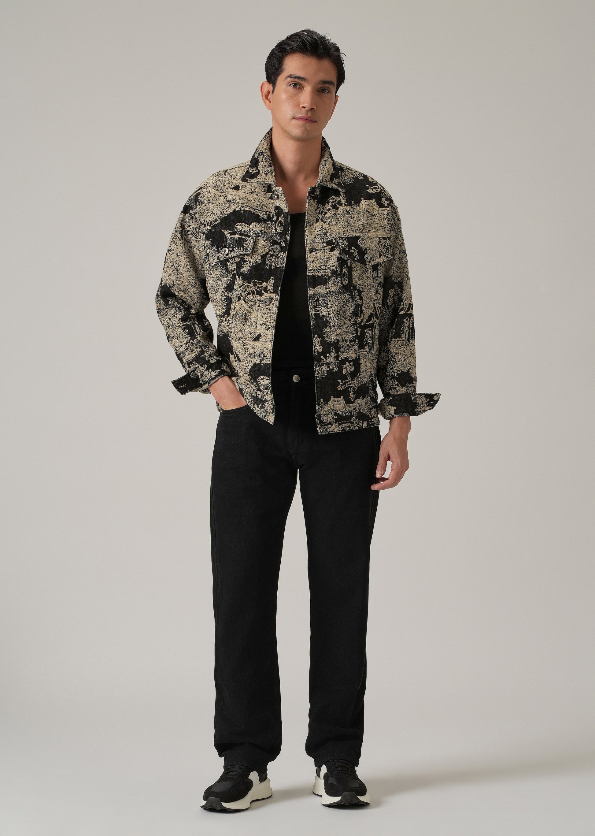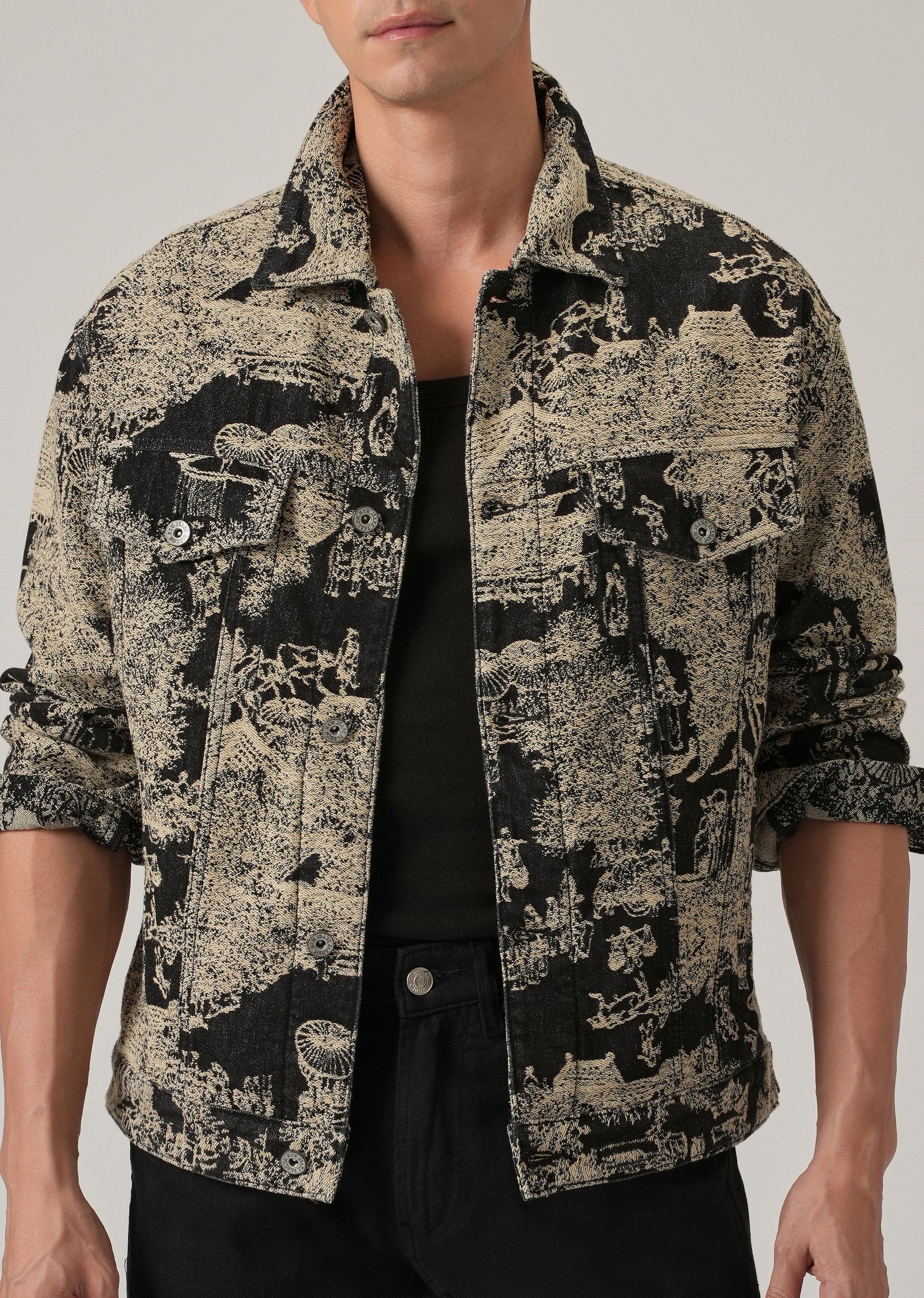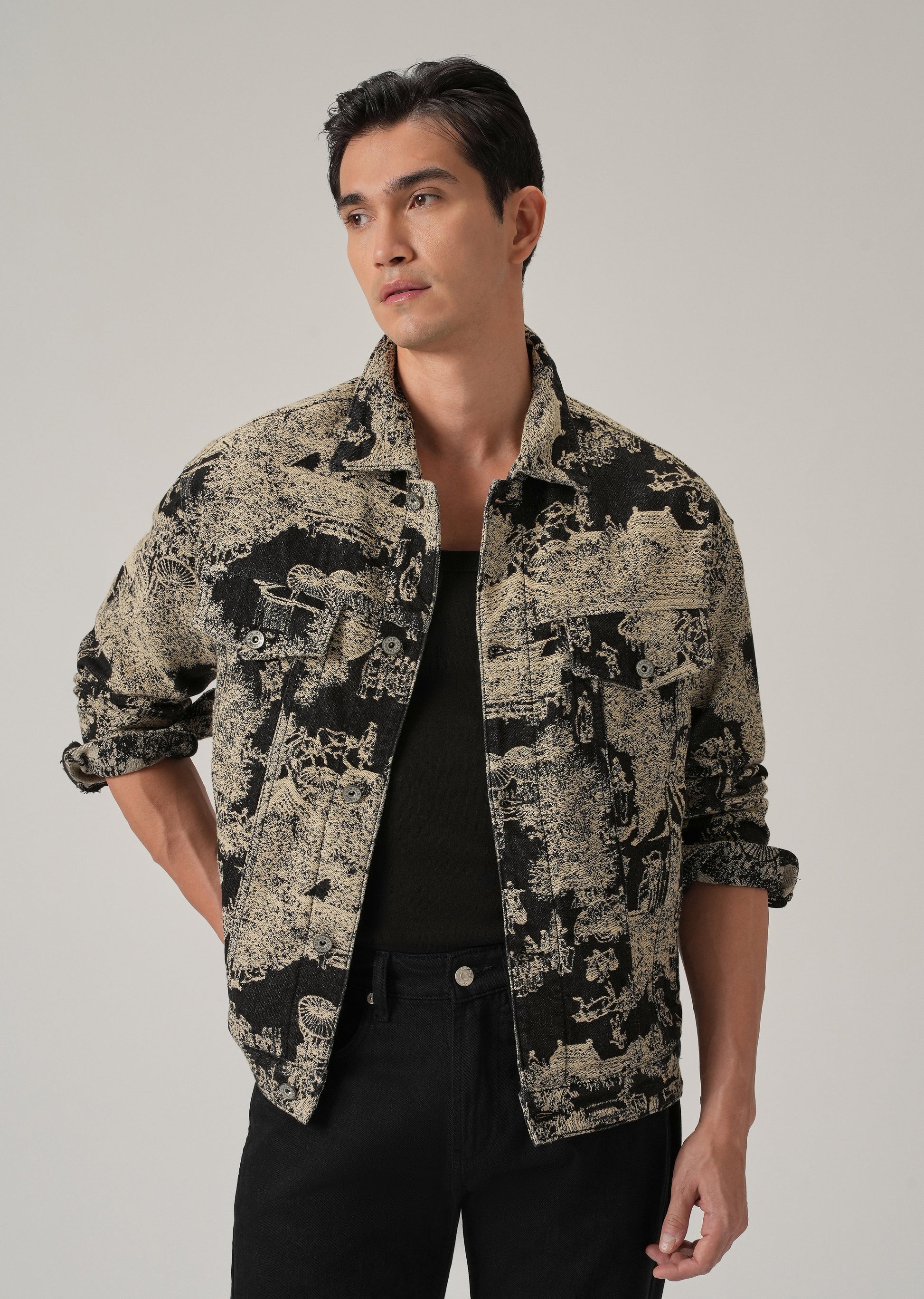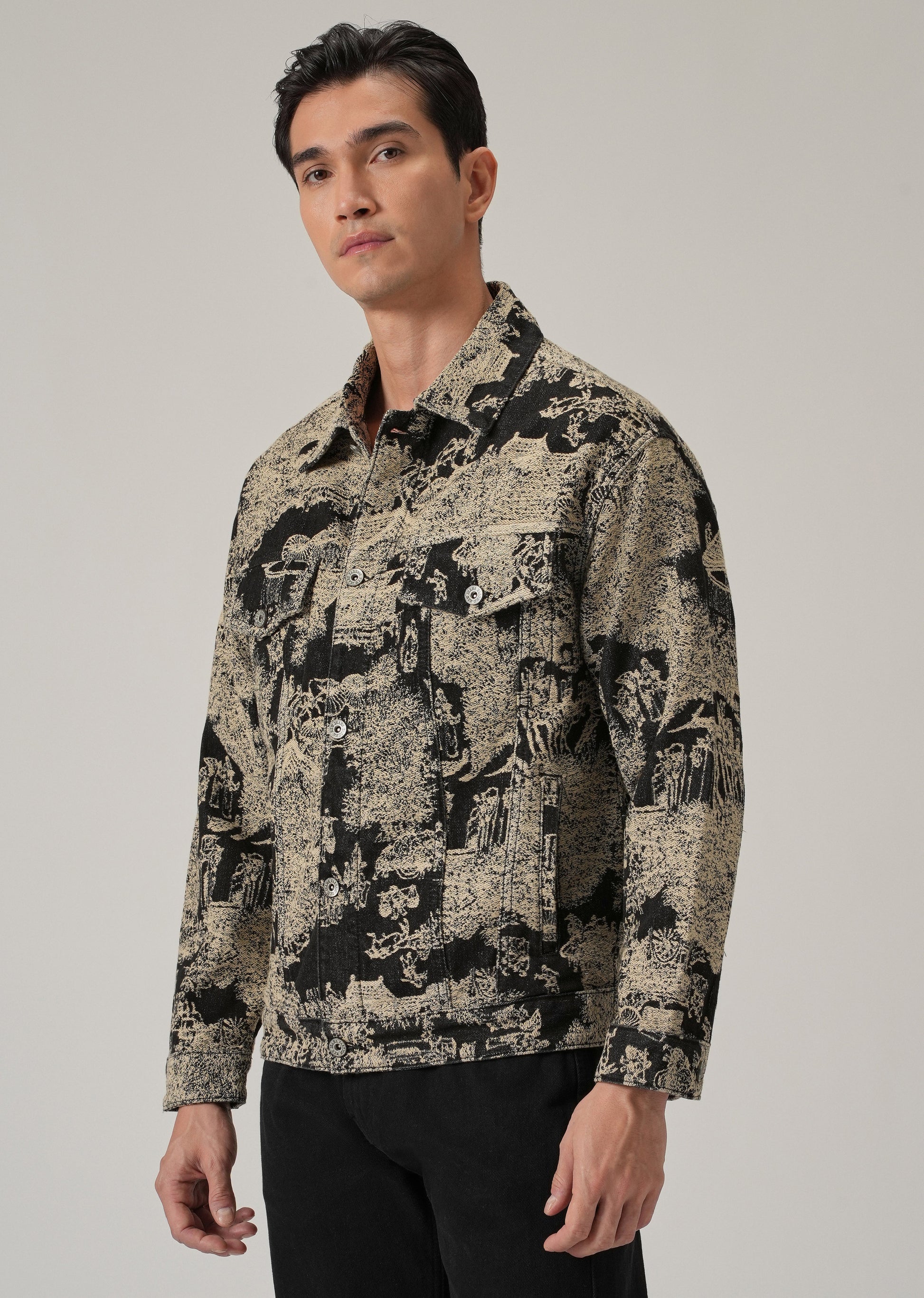 Beige Denim Jacquard Jacket