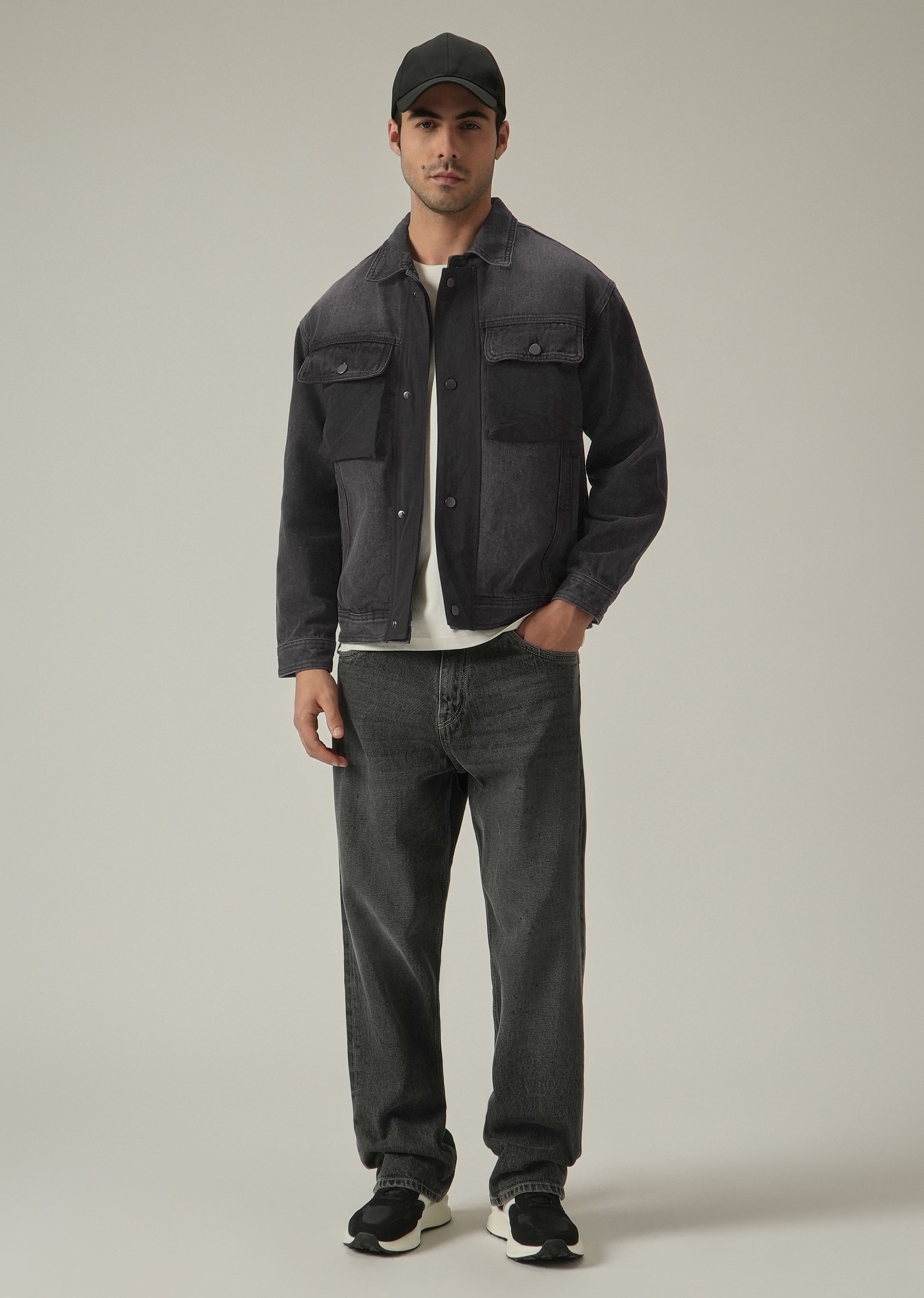 Black Contrast Pocket Denim Jacket