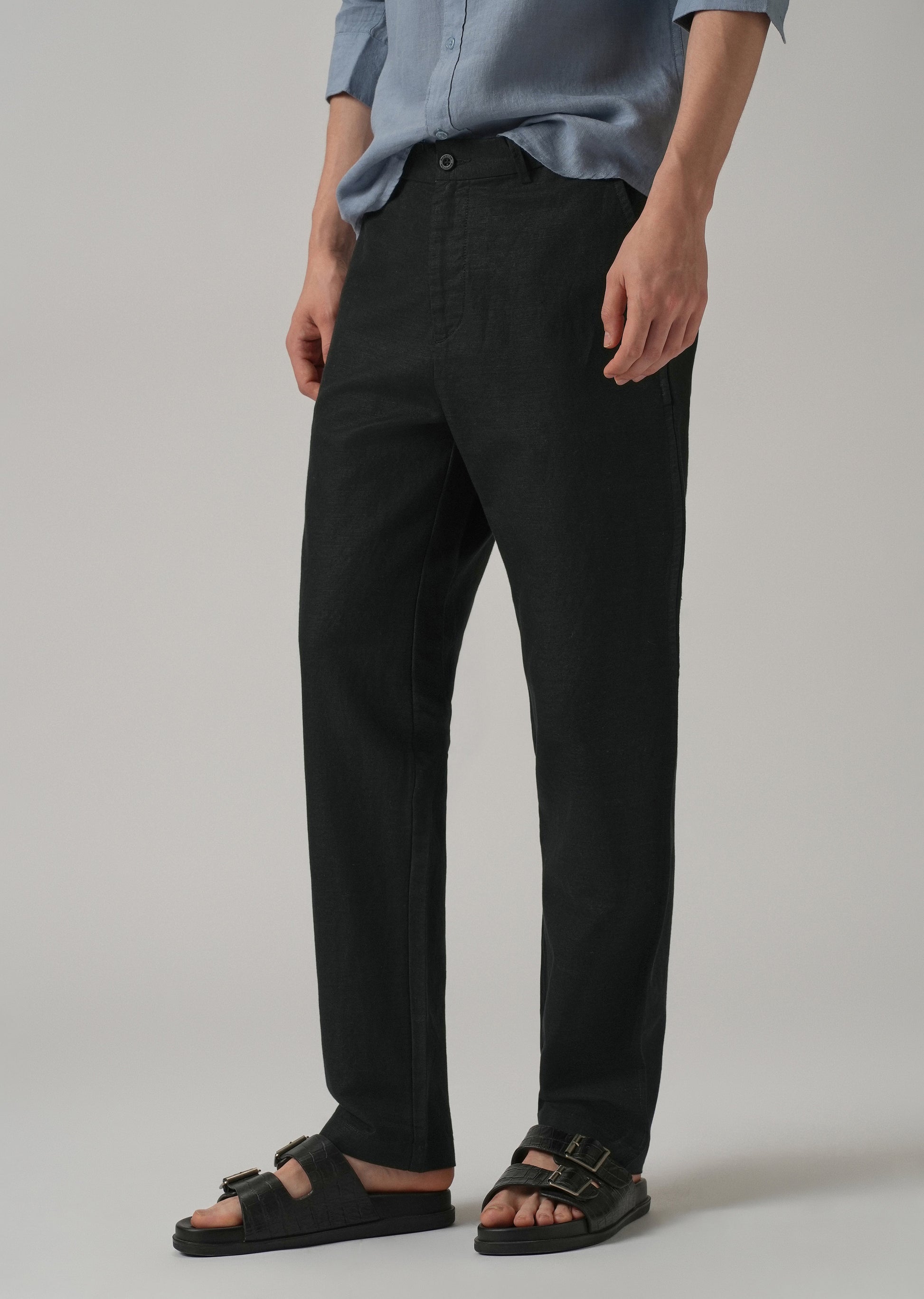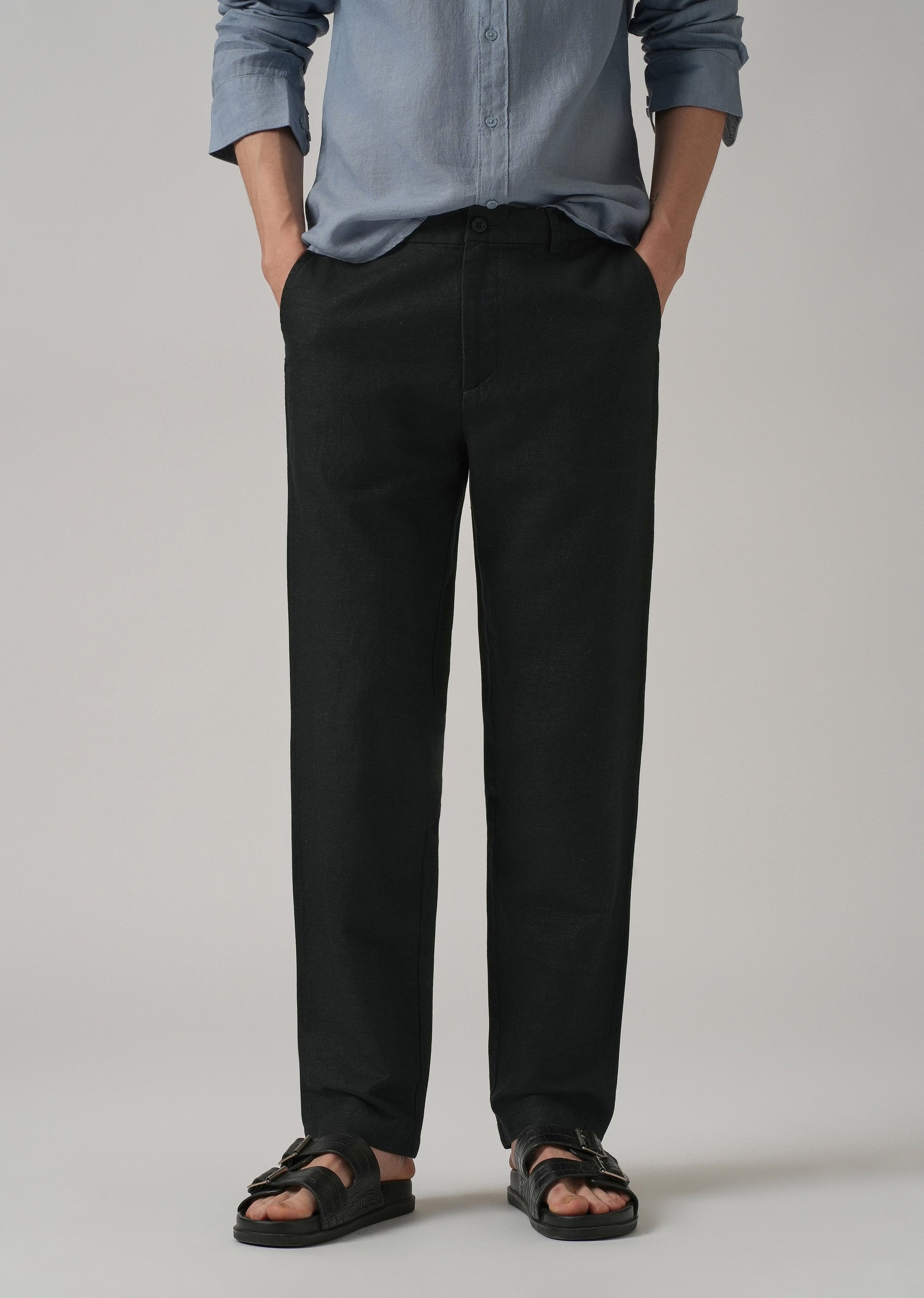 These versatile trousers feature a semi-elasticated waistband for added comfort and a button closure with belt loops for a personalized fit. With two side pockets and two welt pockets at the back. The relaxed fit offers comfortable feel.