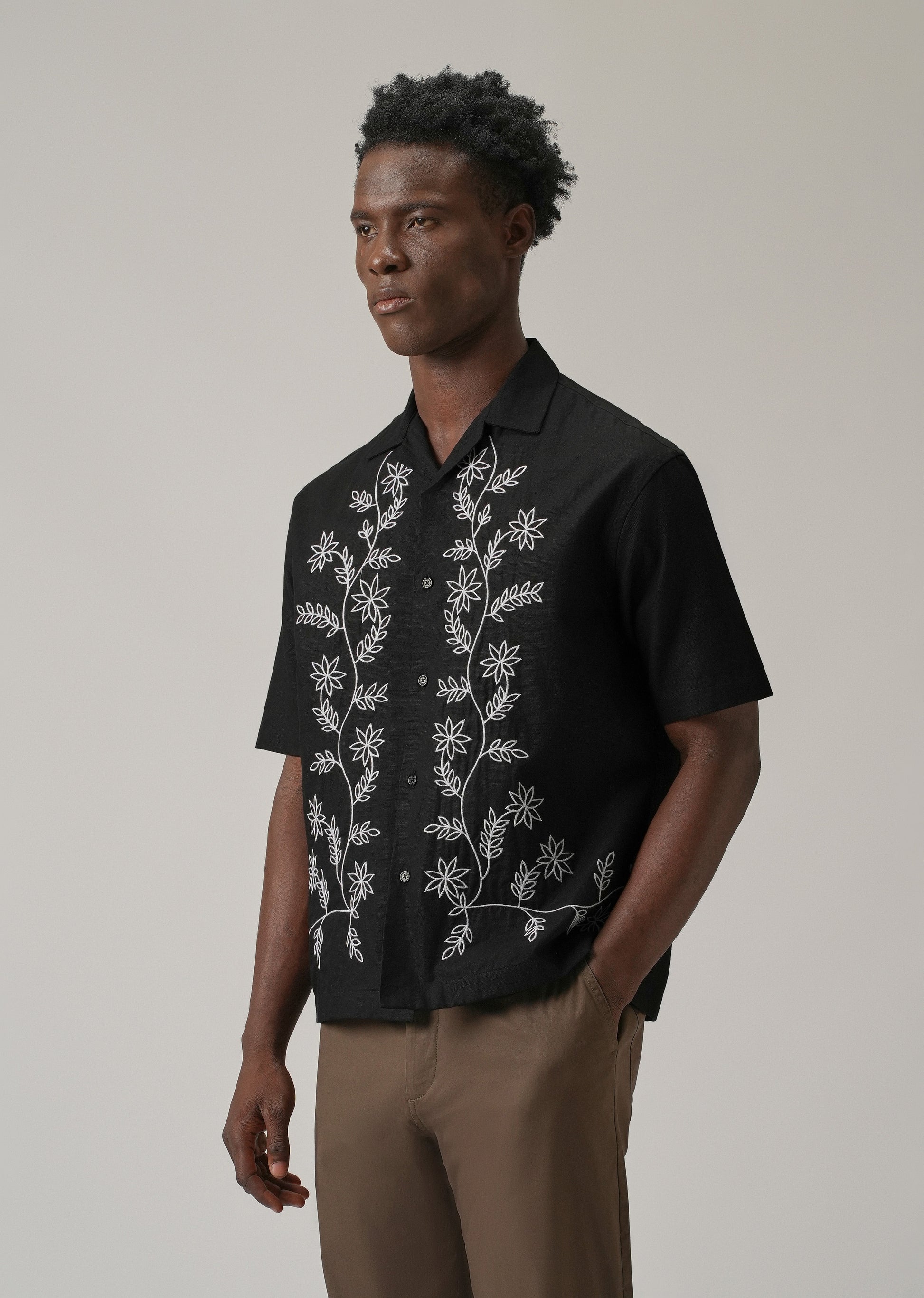 - Features a Cuban collar for that laid-back, stylish look.