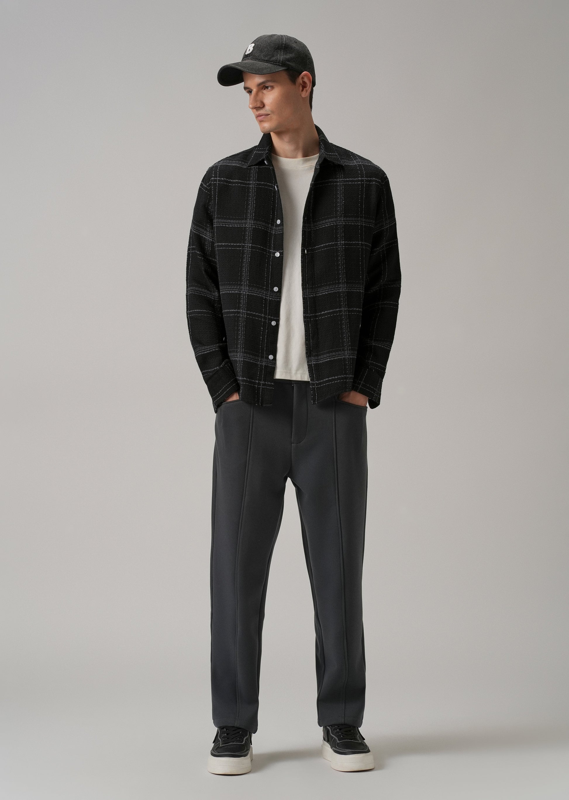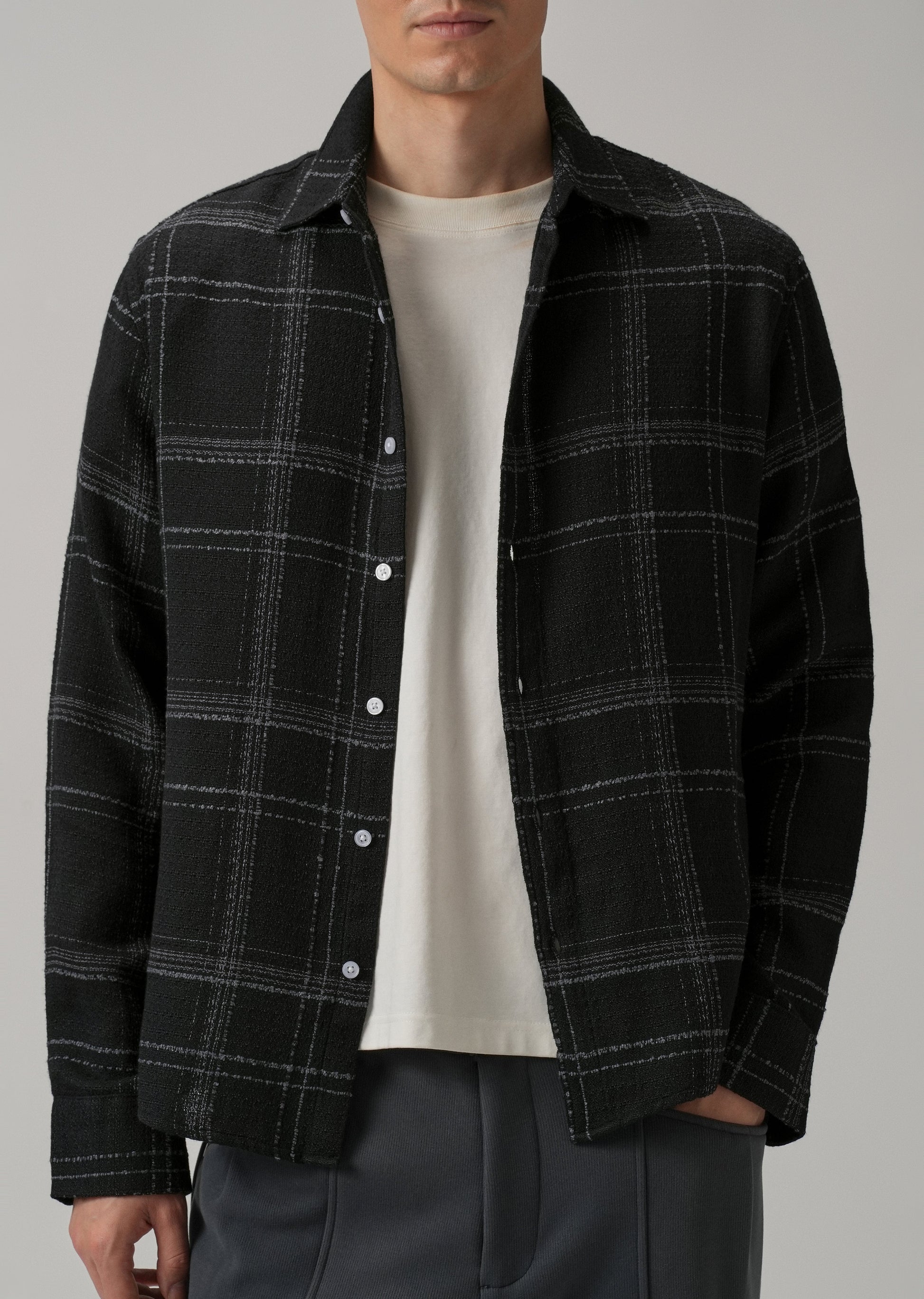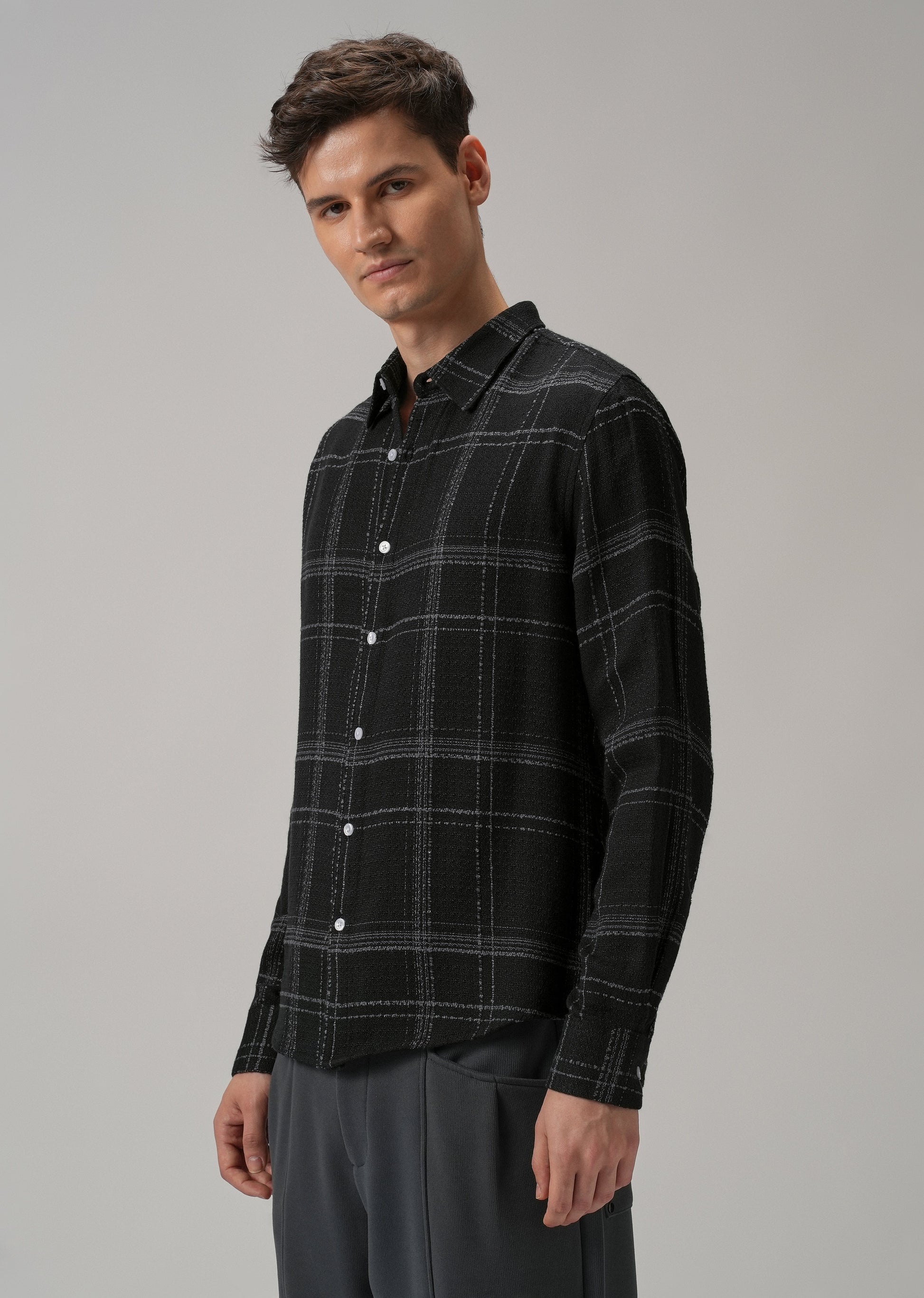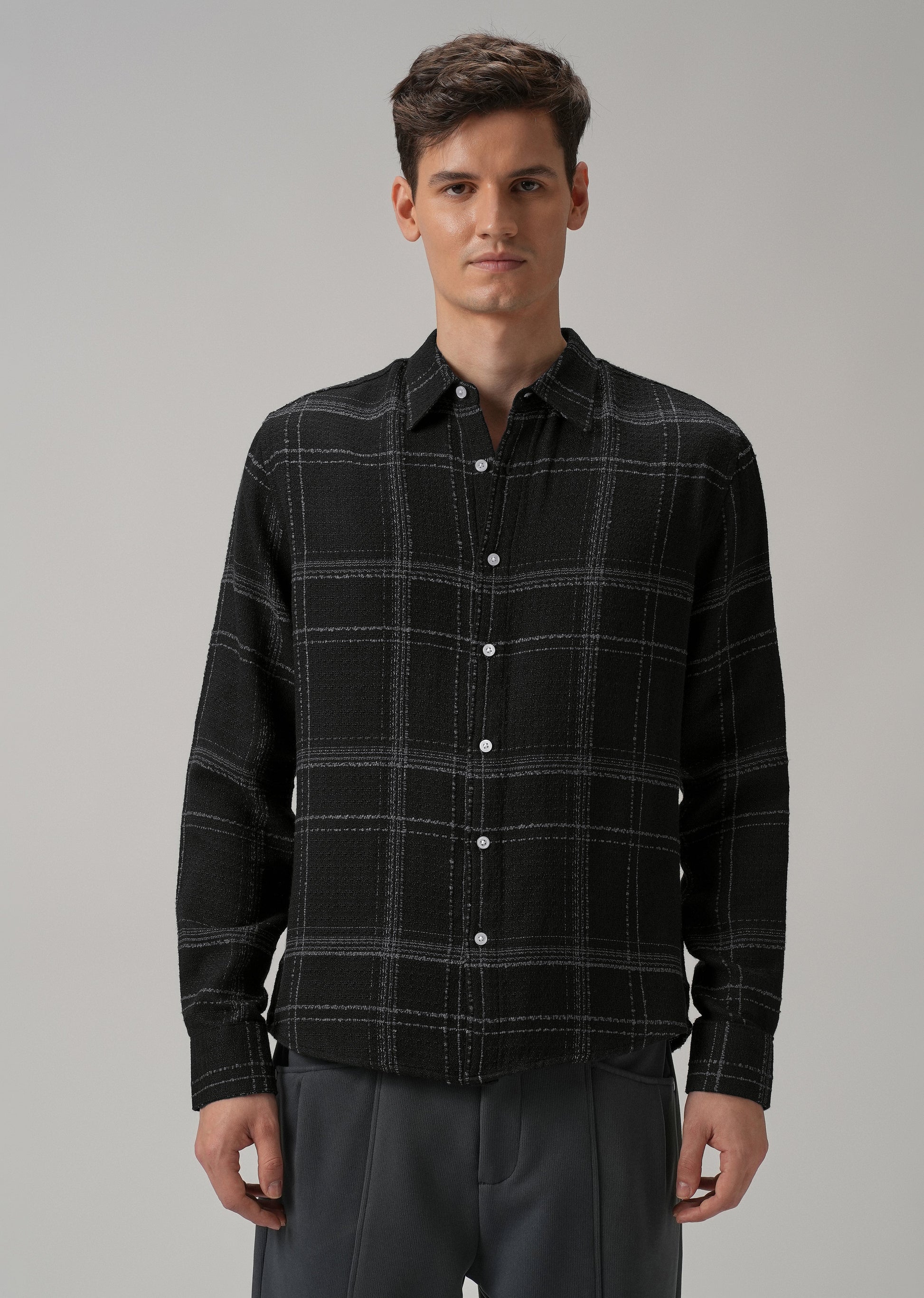 Black Plaid Textured Cotton Check Shirt