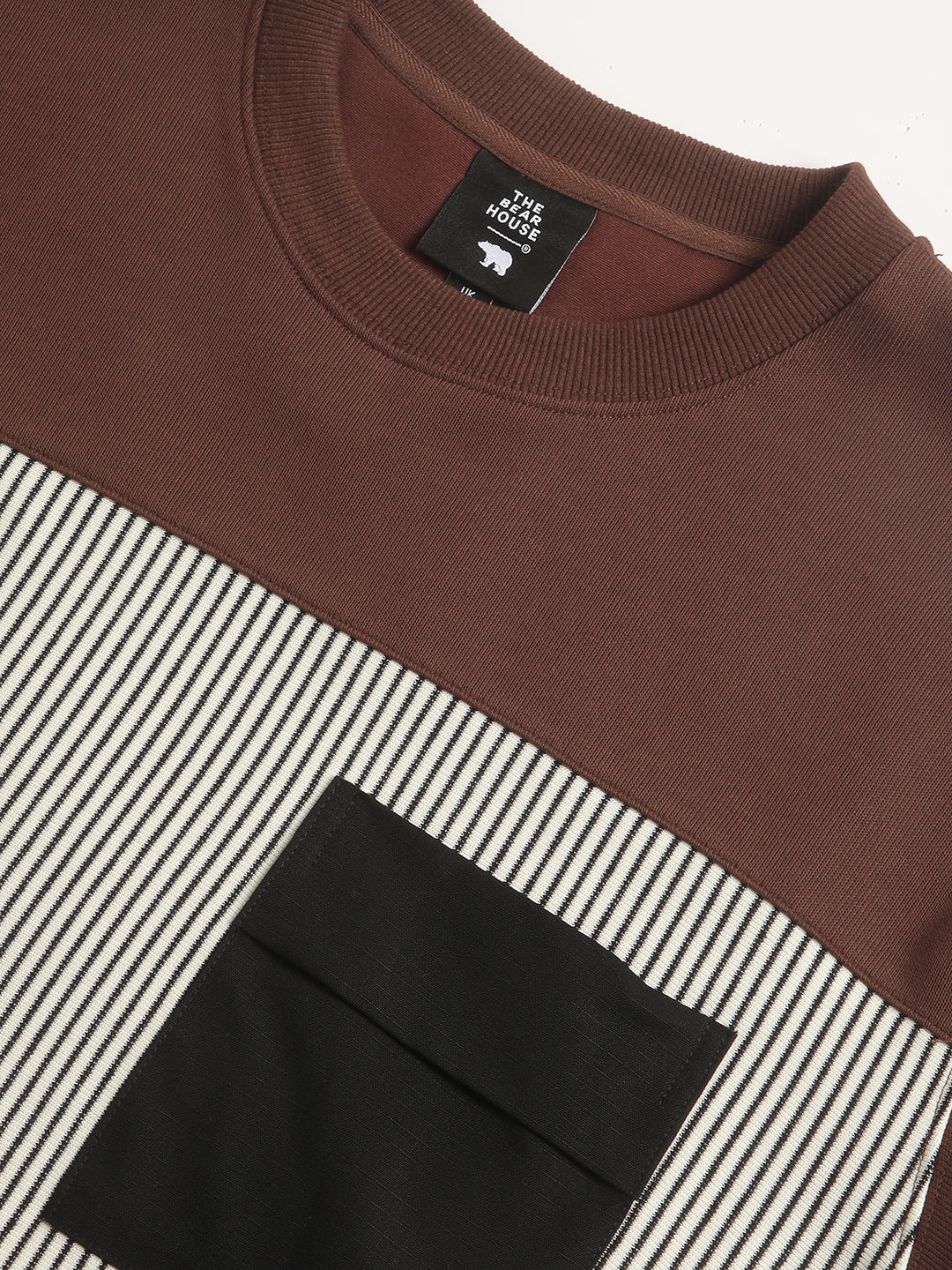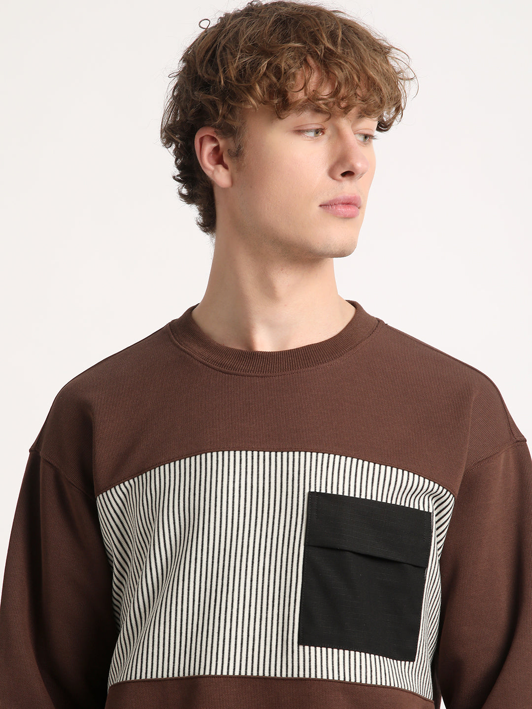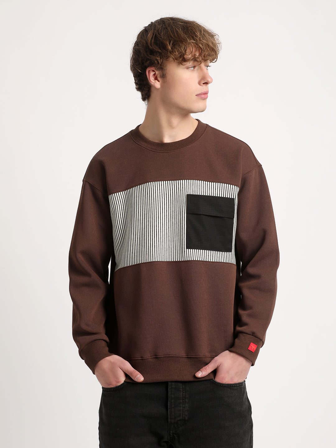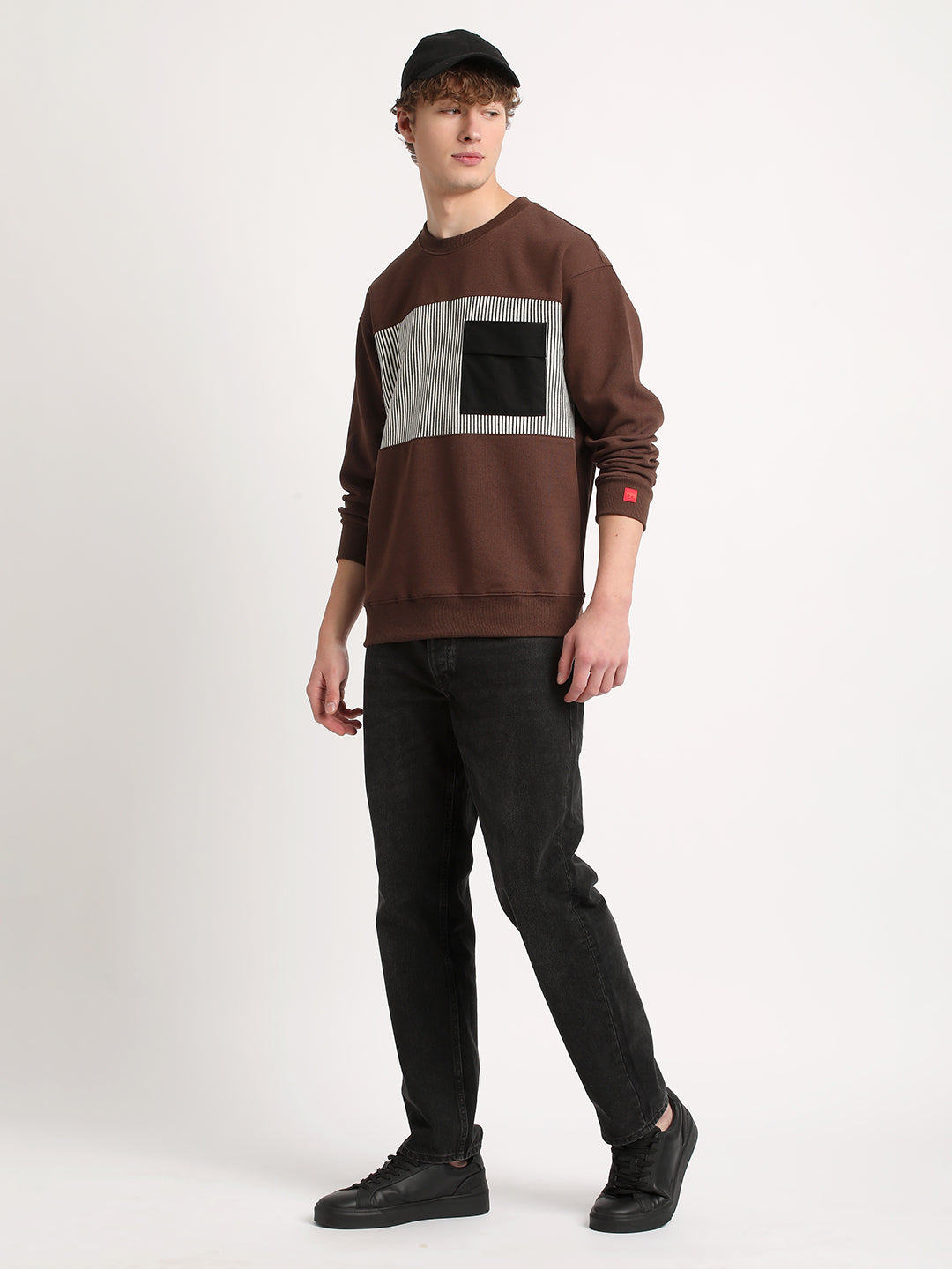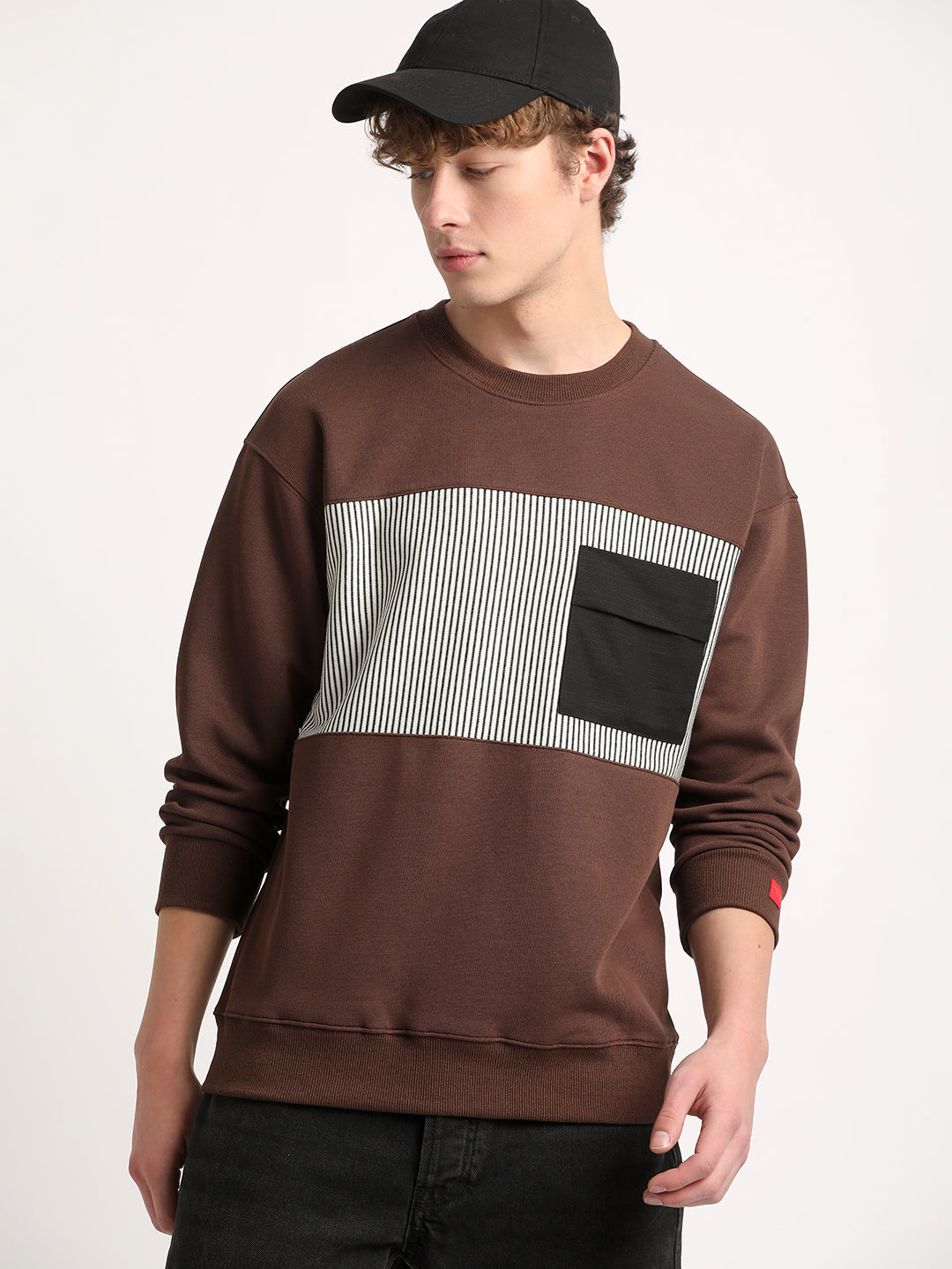 Men Brown Colour blocked Relaxed Fit Sweatshirt