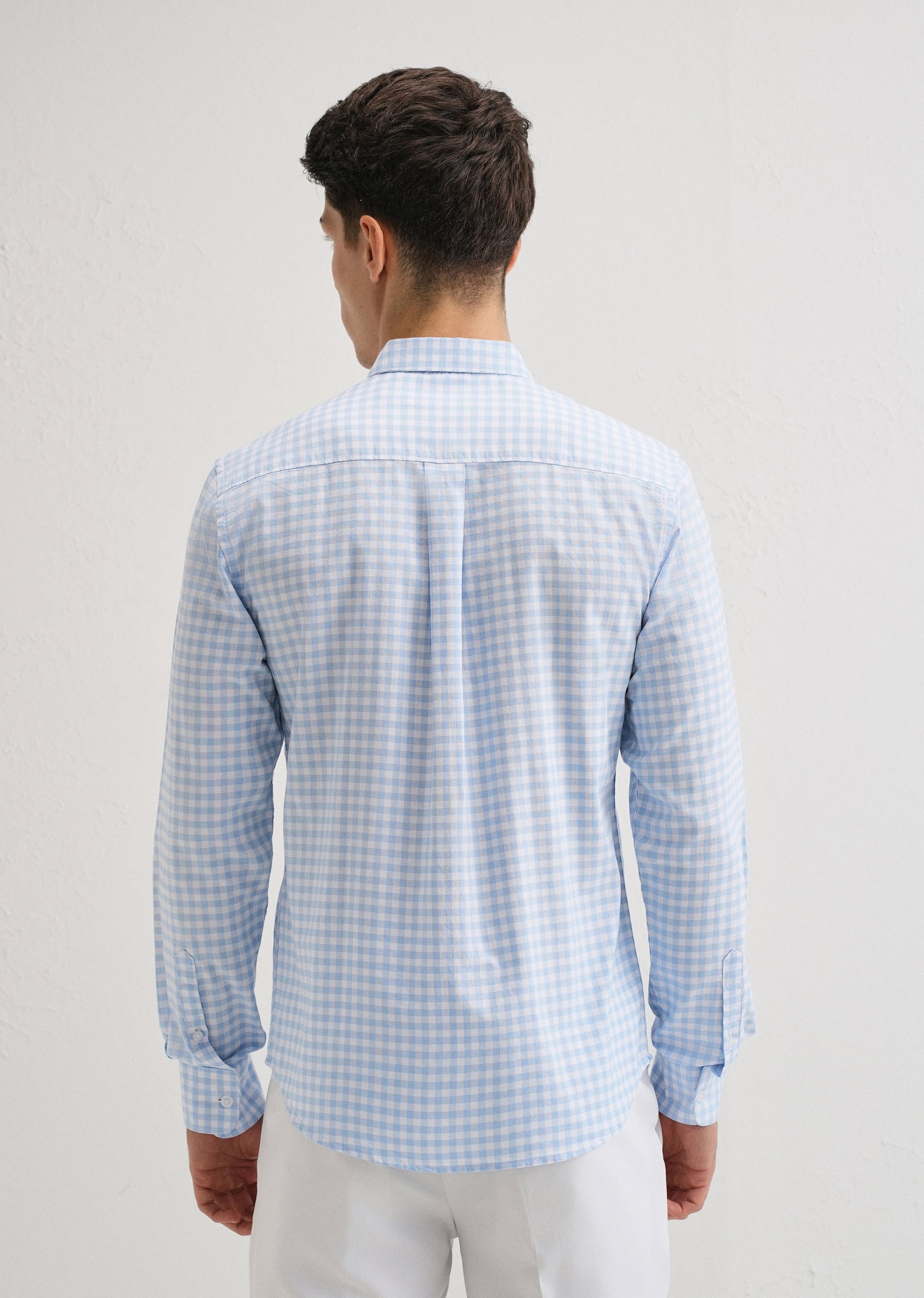Add a timeless touch to your wardrobe with this classic check shirt. Designed with a versatile checked pattern, it blends casual comfort with effortless style. Crafted from soft, breathable fabric, it ensures all-day ease whether worn solo or layered. Featuring a button-down front, full sleeves, and a neatly regular fit, this shirt transitions seamlessly from work to weekend.