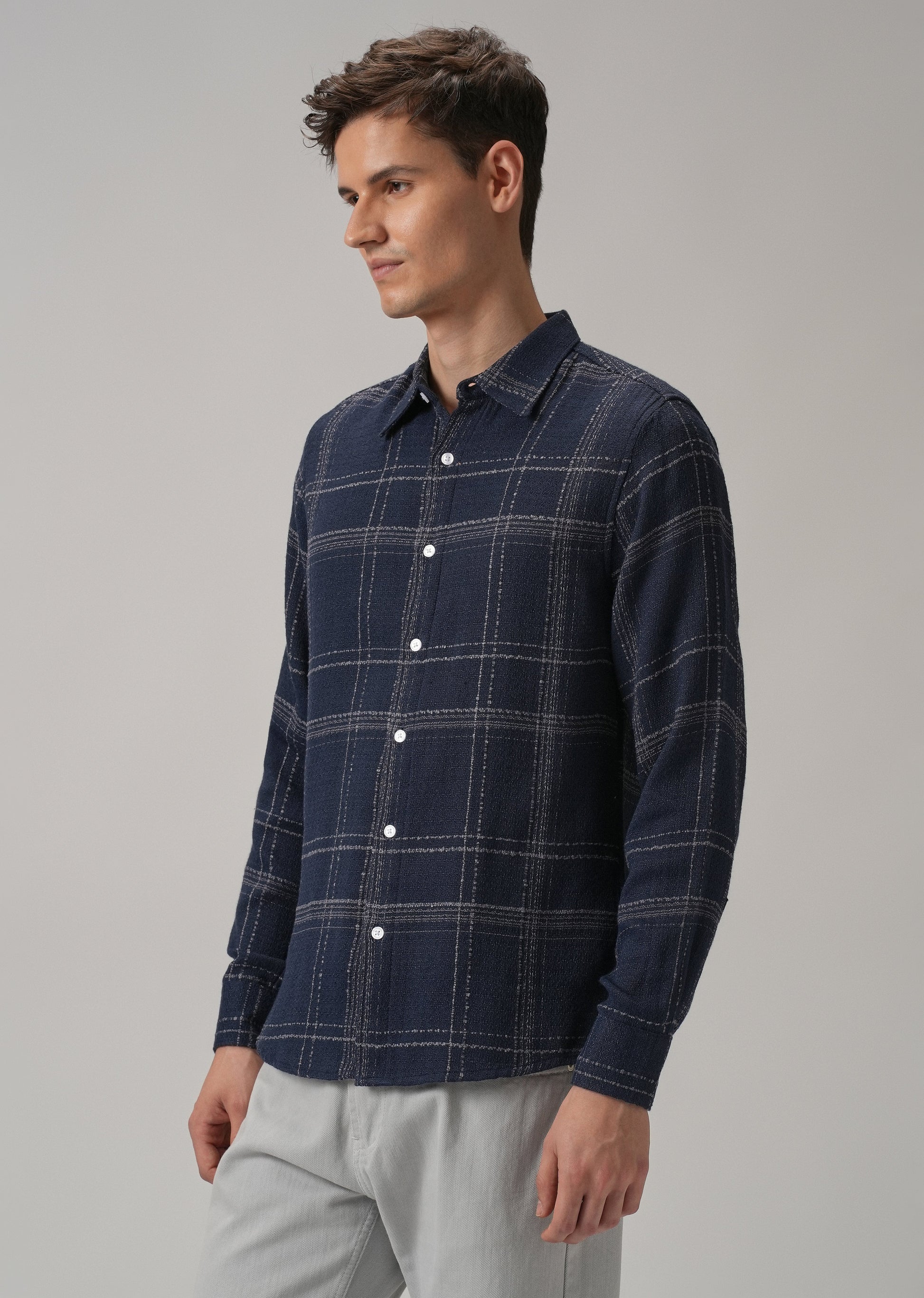 Blue Plaid Textured Cotton Check Shirt