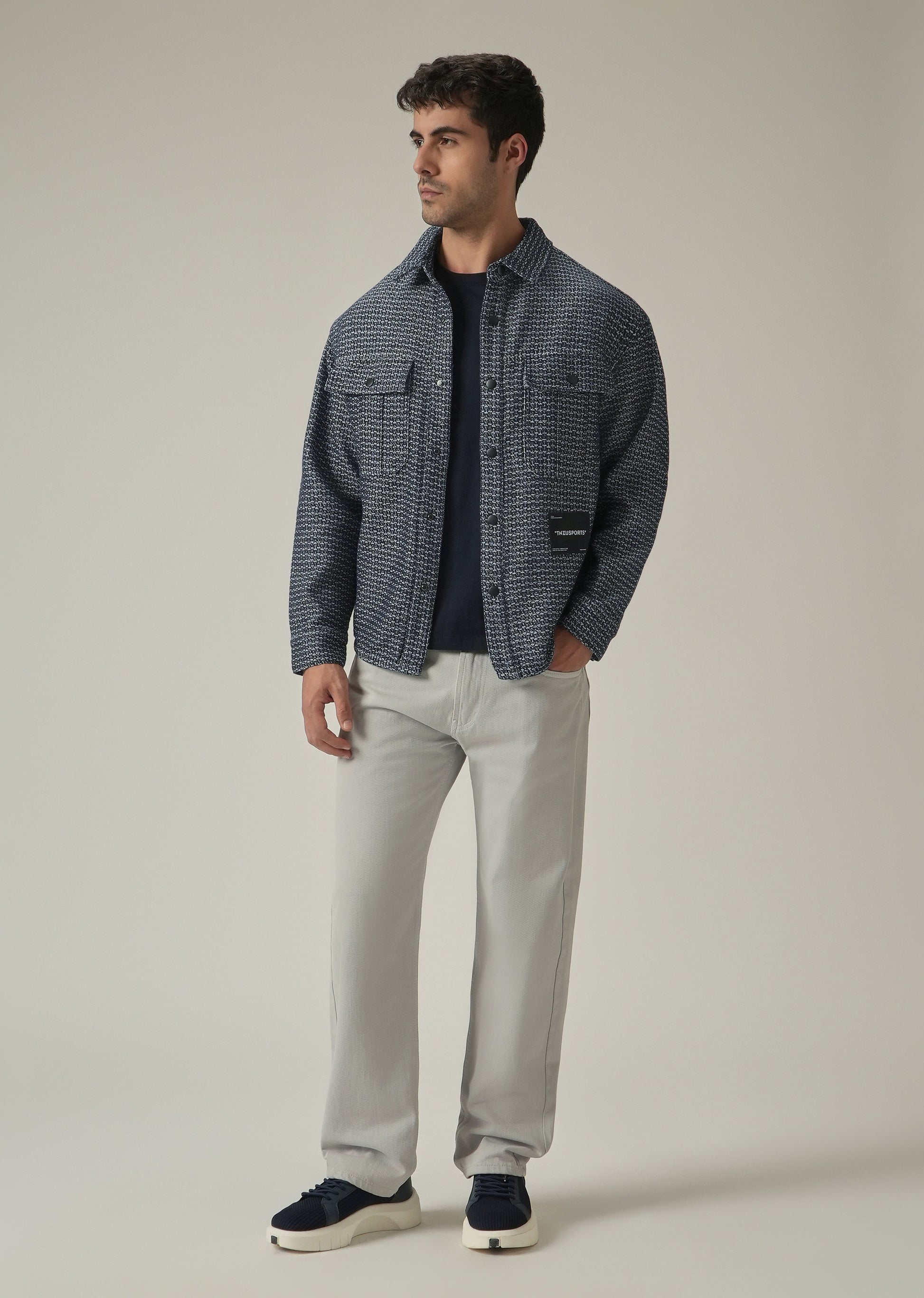 Designed for both style and comfort, this jacket is your new go-to layering piece. Crafted from premium Denim Jacquard fabric, it’s perfect for adding a touch of rugged charm to any outfit. With its classic button-up front and practical front pockets, it’s a versatile piece that works all year round.
