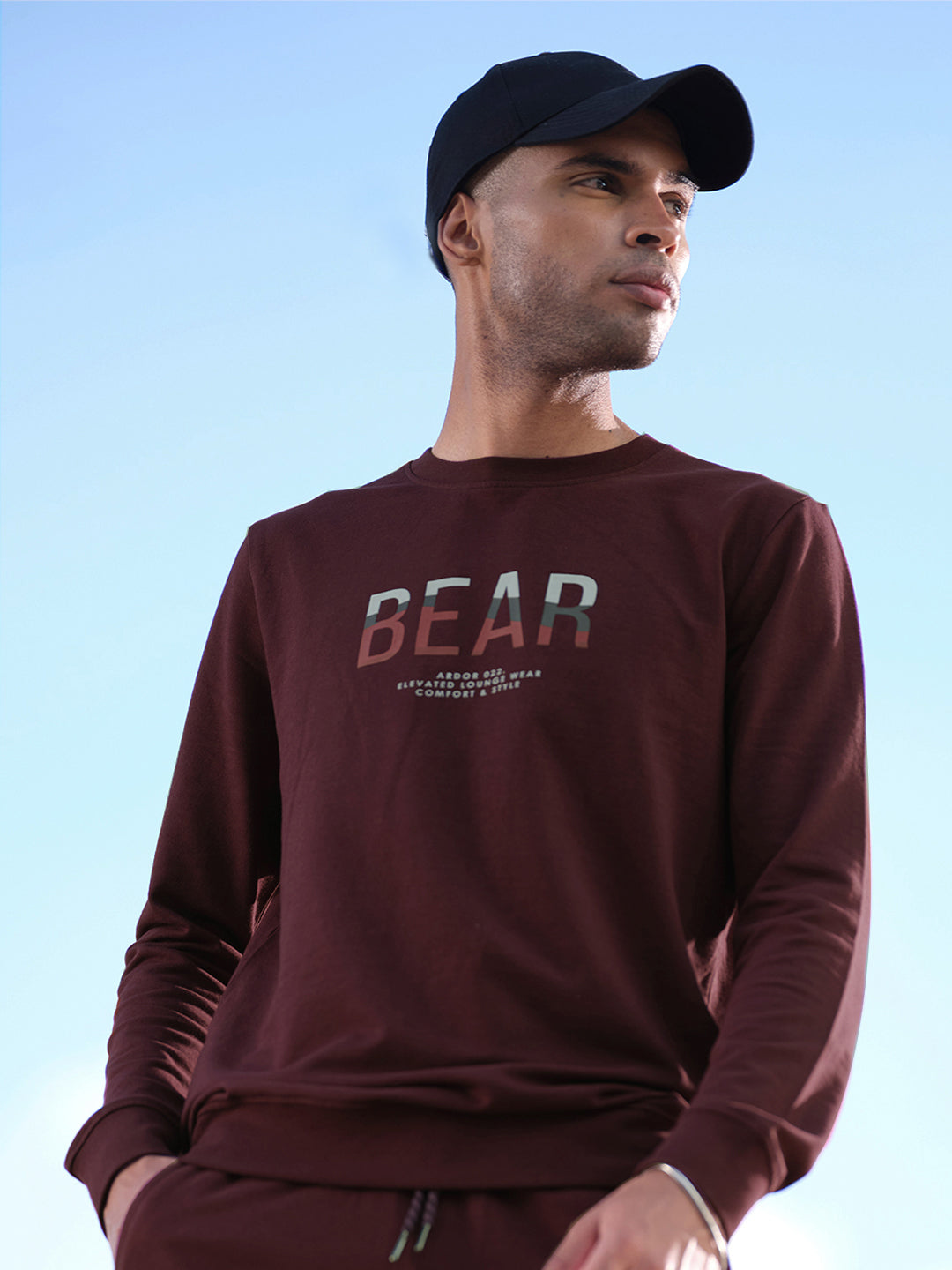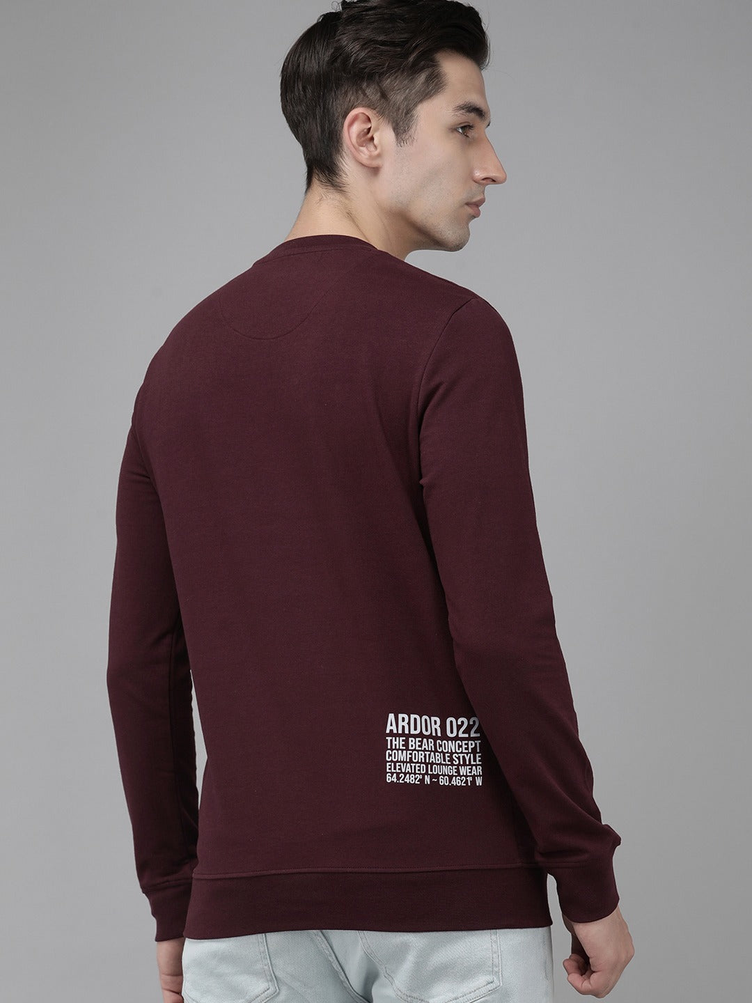 Ardor Edition Men Maroon Slim Fit Printed Pure Cotton Sweatshirt