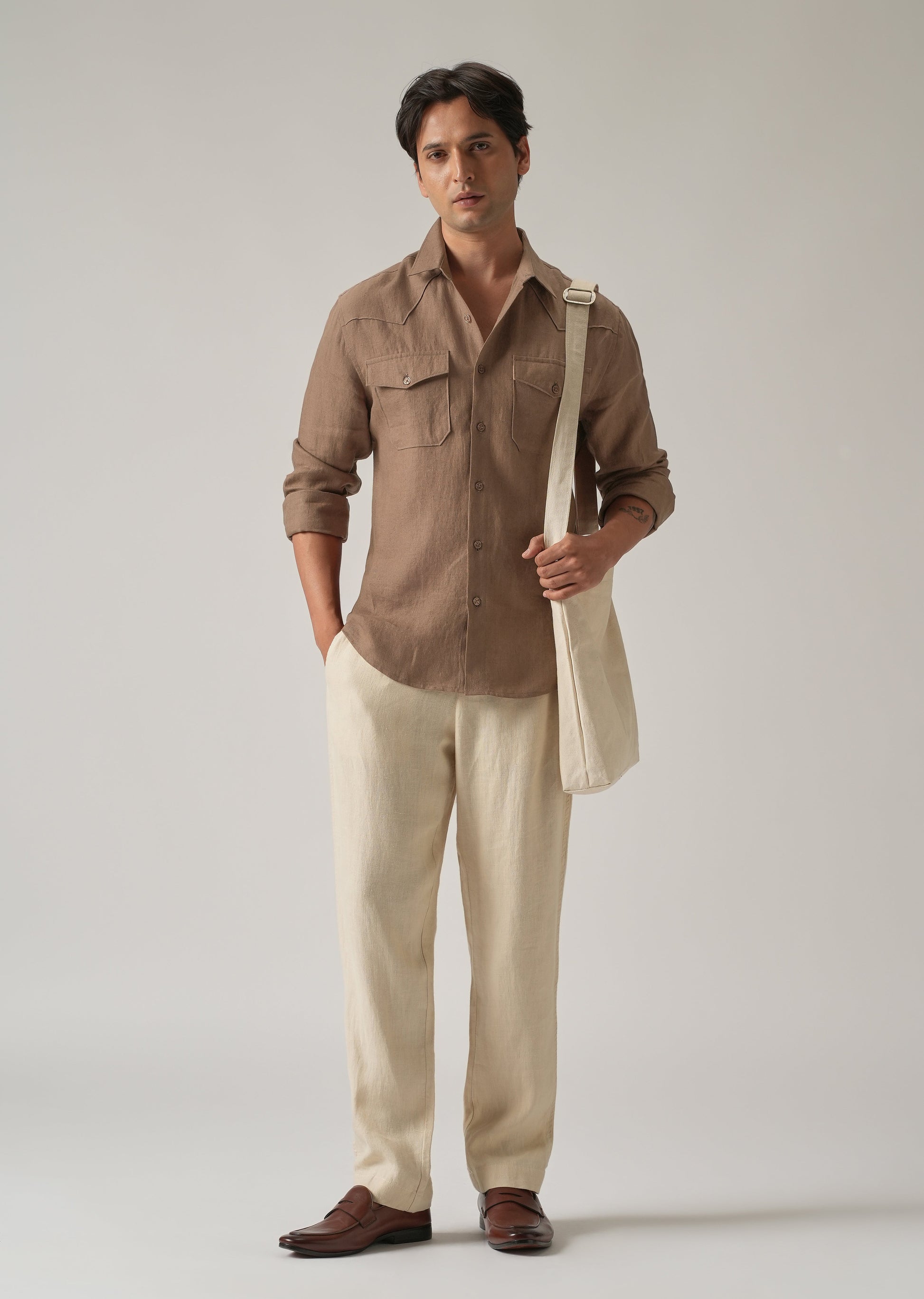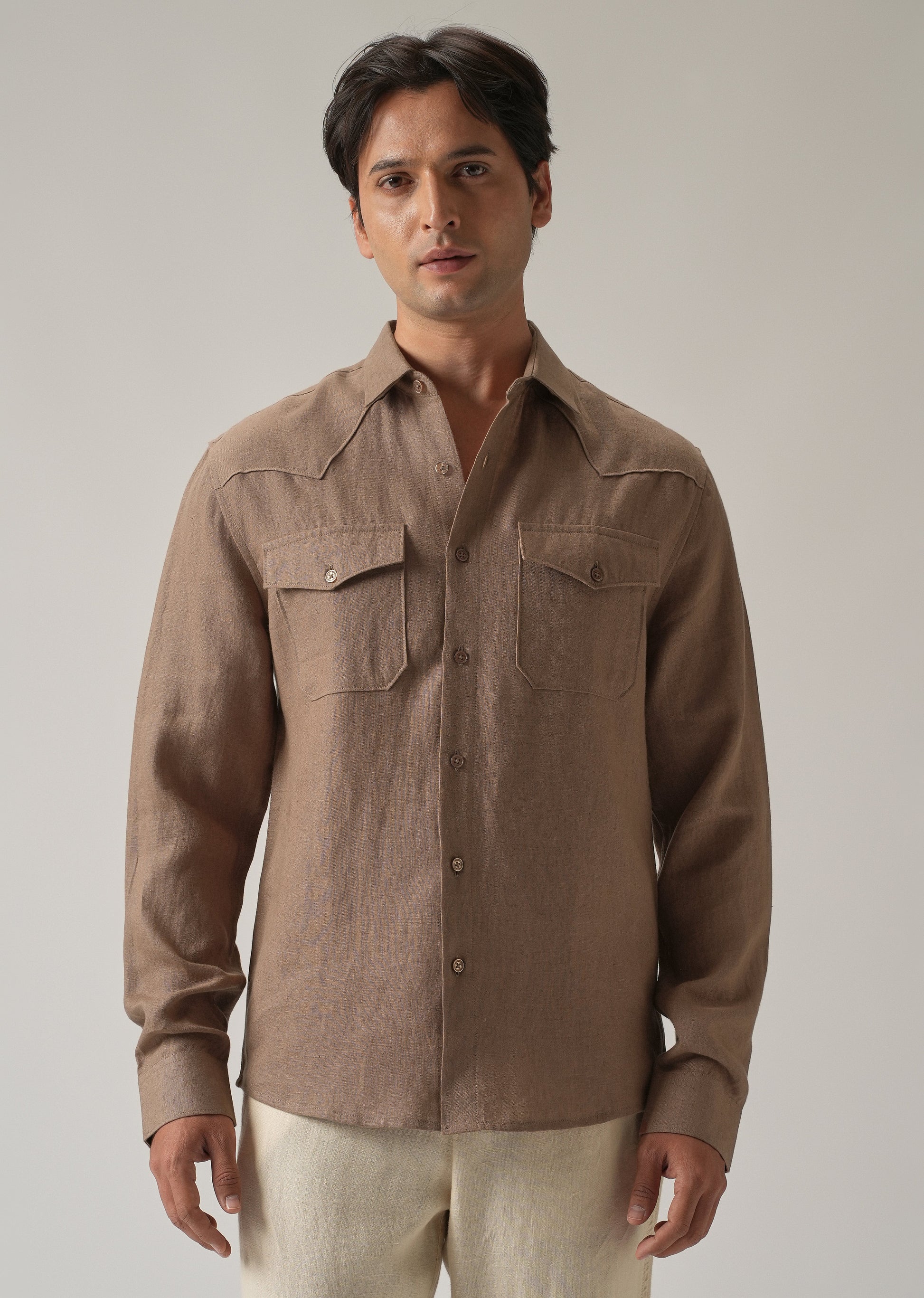 Brown Double Pocket 100% Pure Irish Linen Shirt