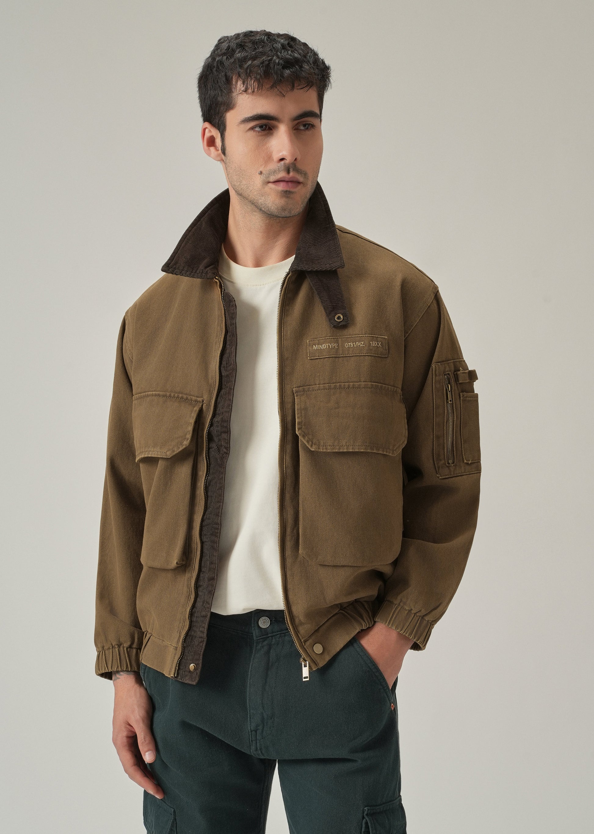 - Stand collar with a corduroy fabric for a sharp, clean look.