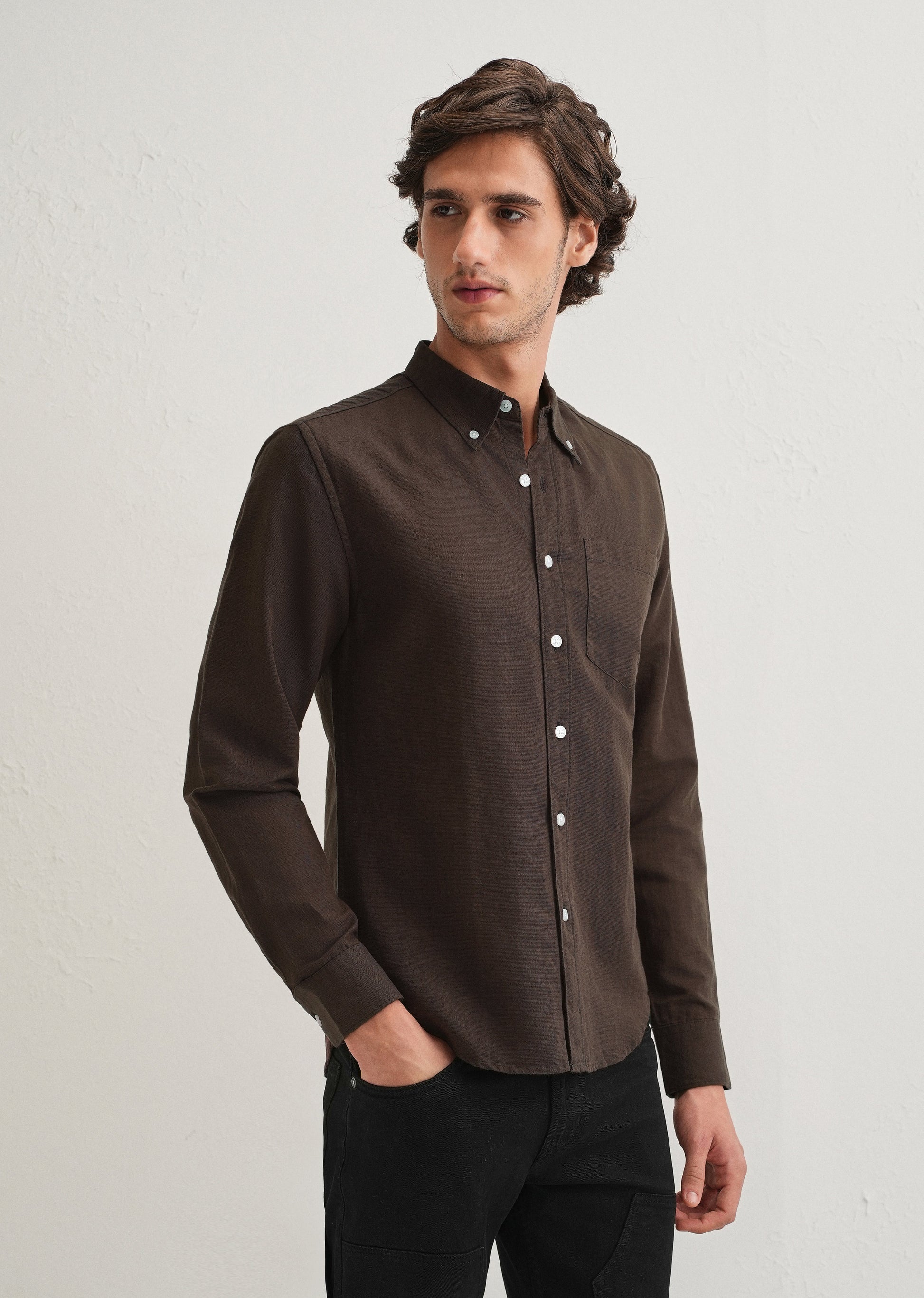 Crafted from a breathable cotton-linen blend, it’s perfect for any season, offering comfort and style in equal measure. A plain shirt built for work and beyond. Crisp, breathable, and easy to style, it keeps you looking sharp through long hours without compromising comfort. Available in a range of versatile colors, this shirt effortlessly enhances your everyday wardrobe.
