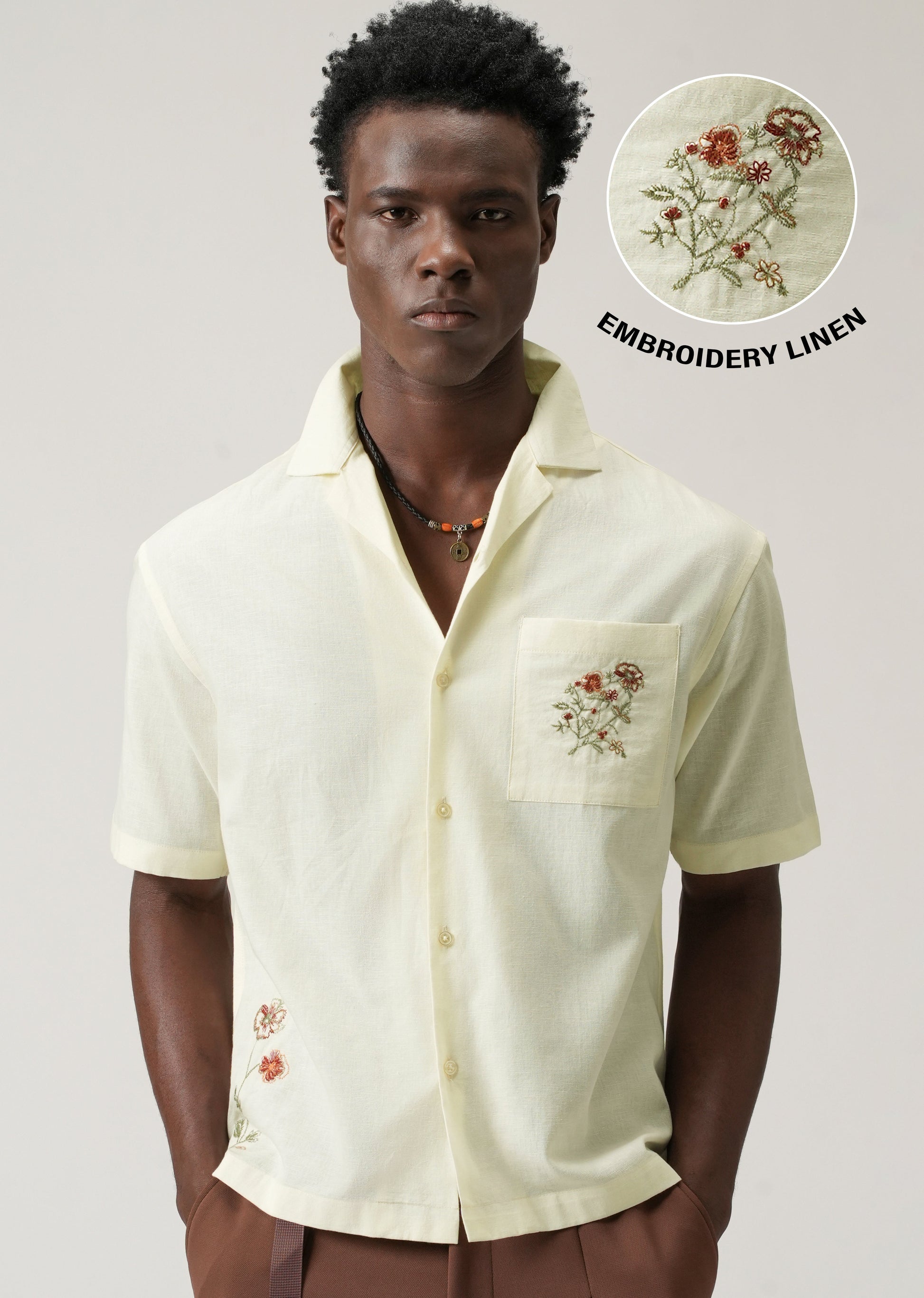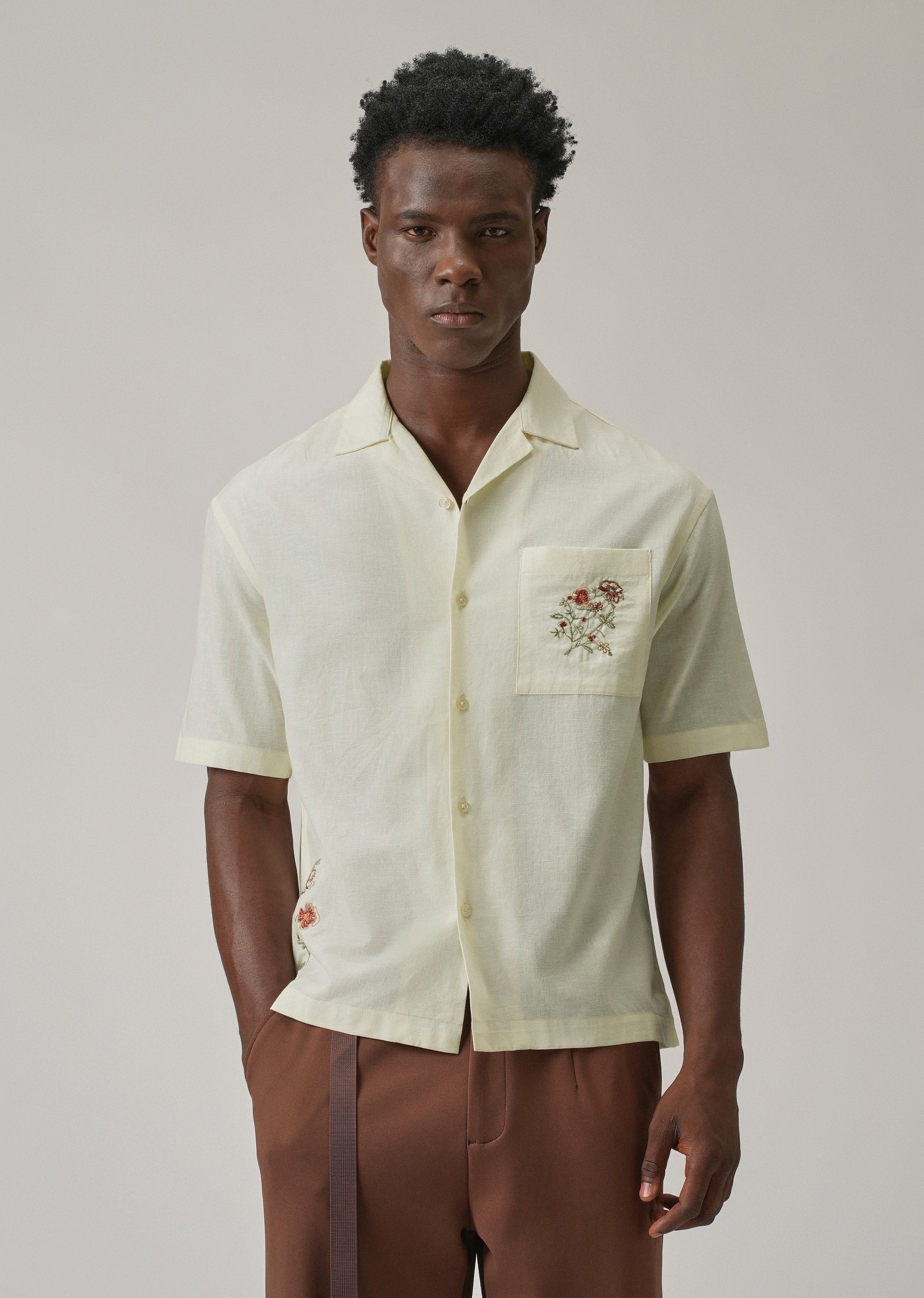 Elevated design with embroidery detailing. This shirt features embroidered details on the garment, adding a refined touch to a classic silhouette. The cuban collar, button-up front, while the regular fit ensures a sharp and tailored appearance.