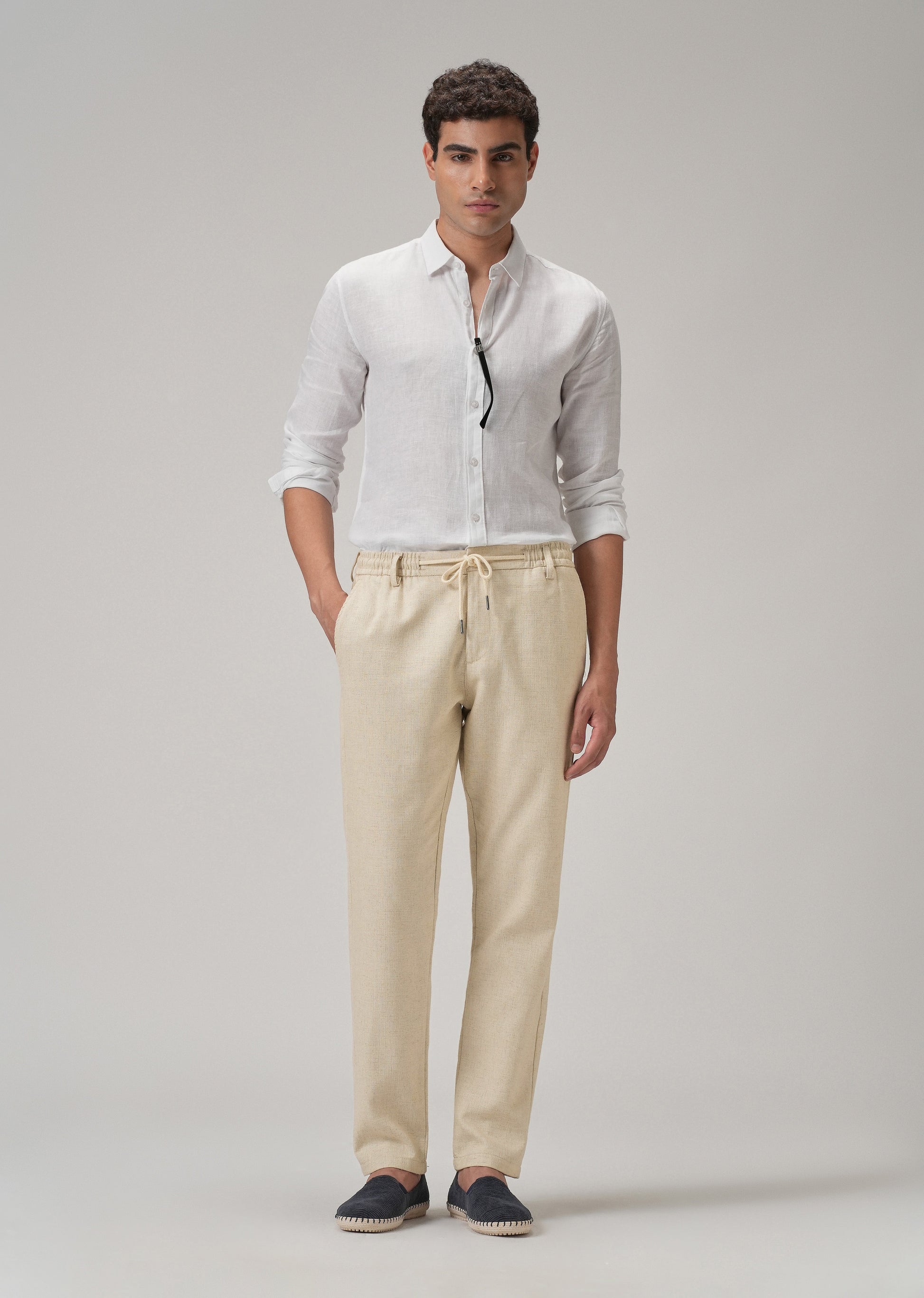 Designed for movement and made to keep up - these trousers feature an elasticated waist with a concealed drawstring, so you get a clean look without losing comfort. Crafted in a blended linen fabric, with belt loops and four functional pockets, this pair balances laid-back feel with everyday polish.