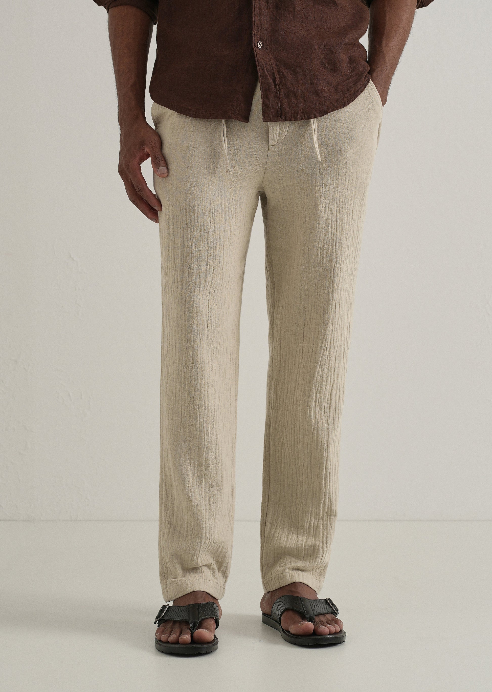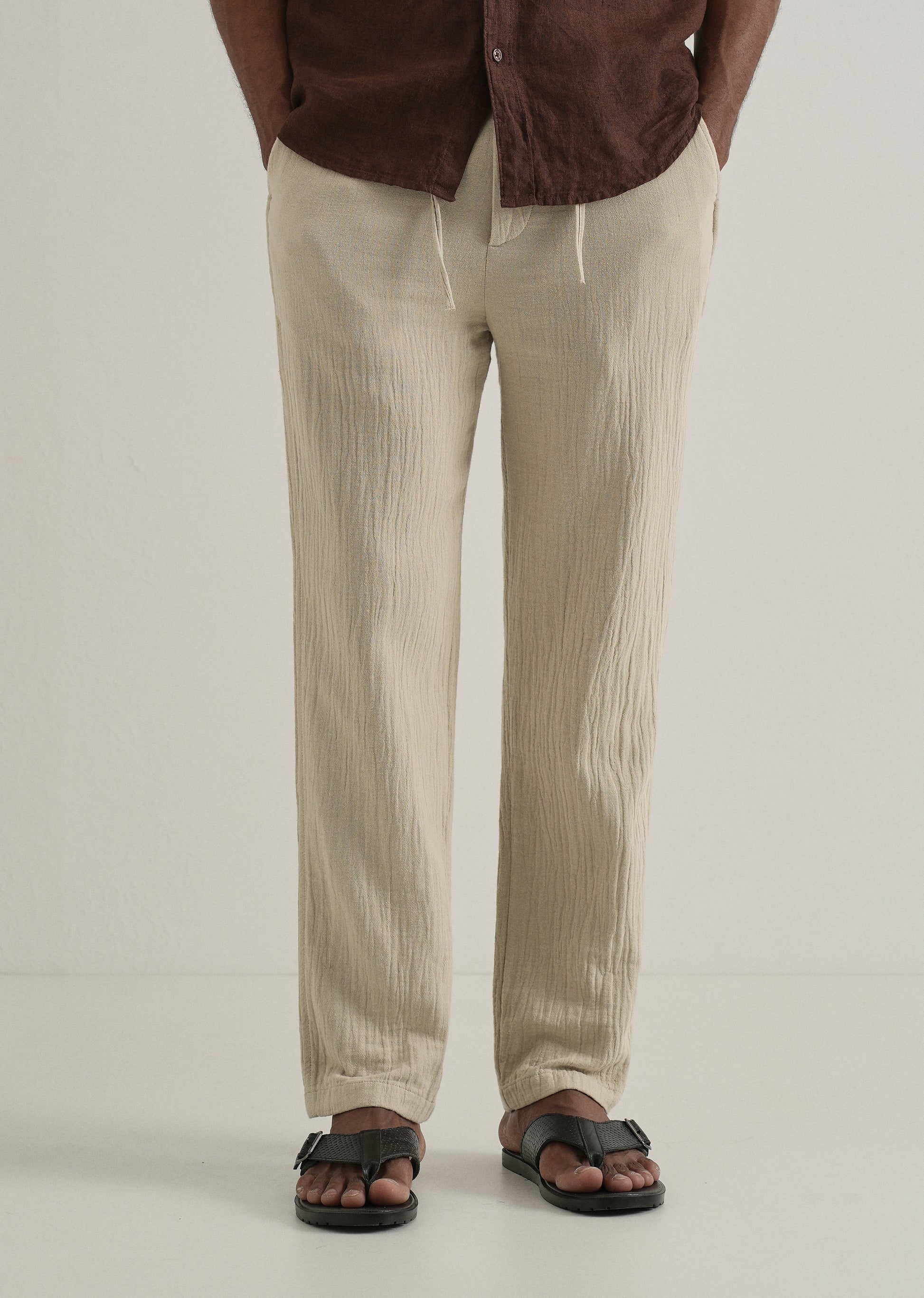 Dark Beige Crinkled Cotton Trouser