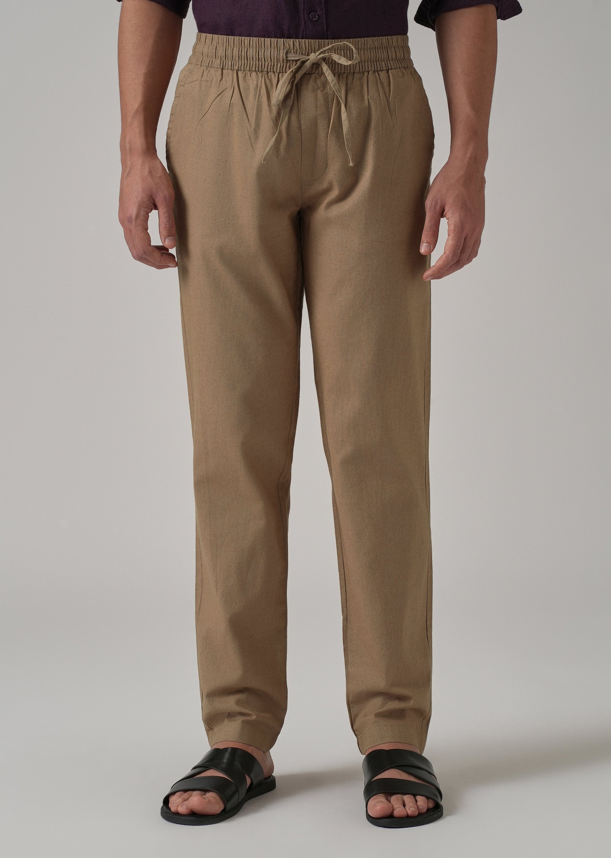 Comfort meets versatility. Designed with an elasticated waist and adjustable drawstring, these pants offer a perfect balance of ease and style. Featuring two front pockets and two welt pockets at the back, they provide both function and a clean look. The linen-cotton blend ensures breathability, making them ideal for all-day wear.