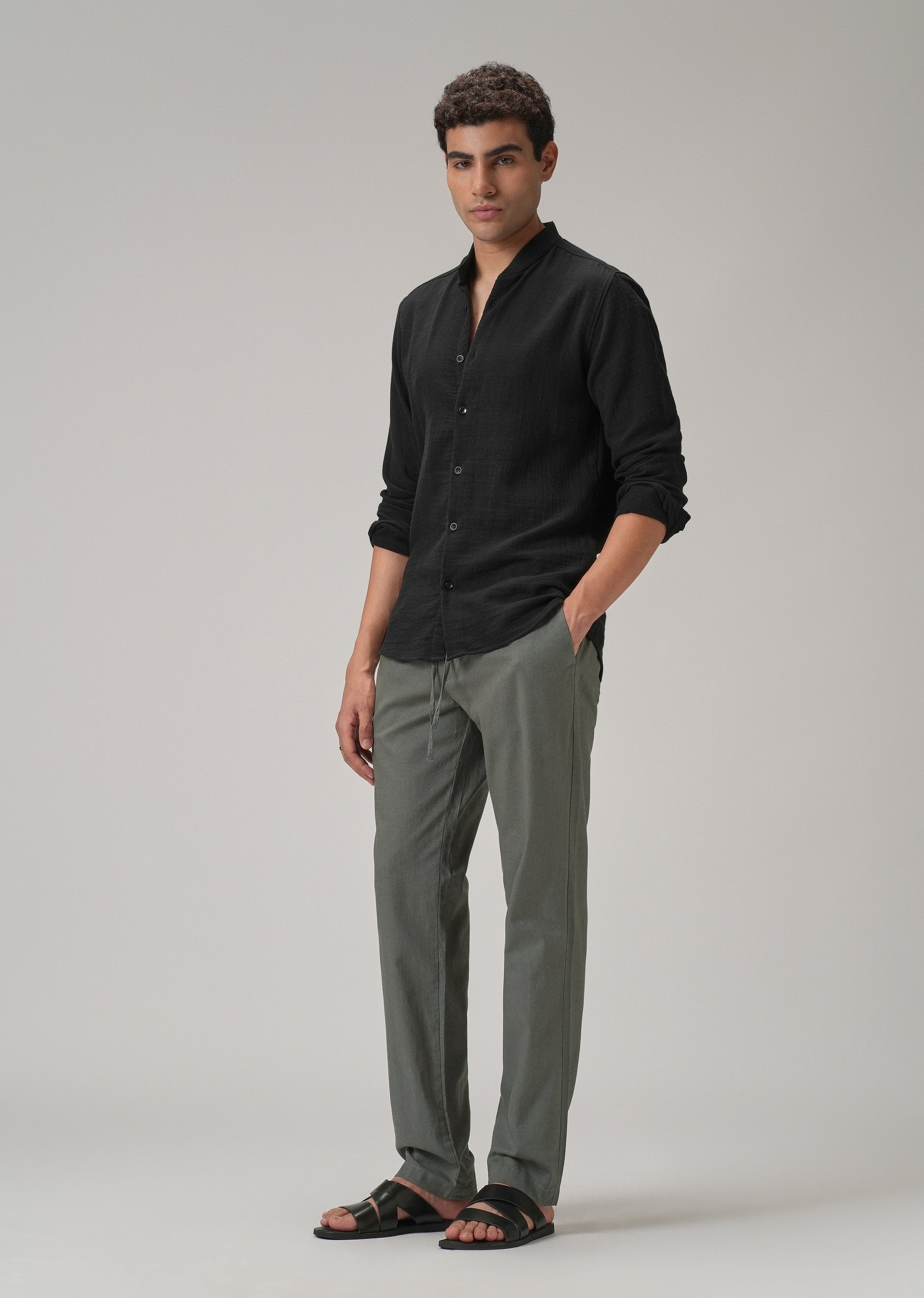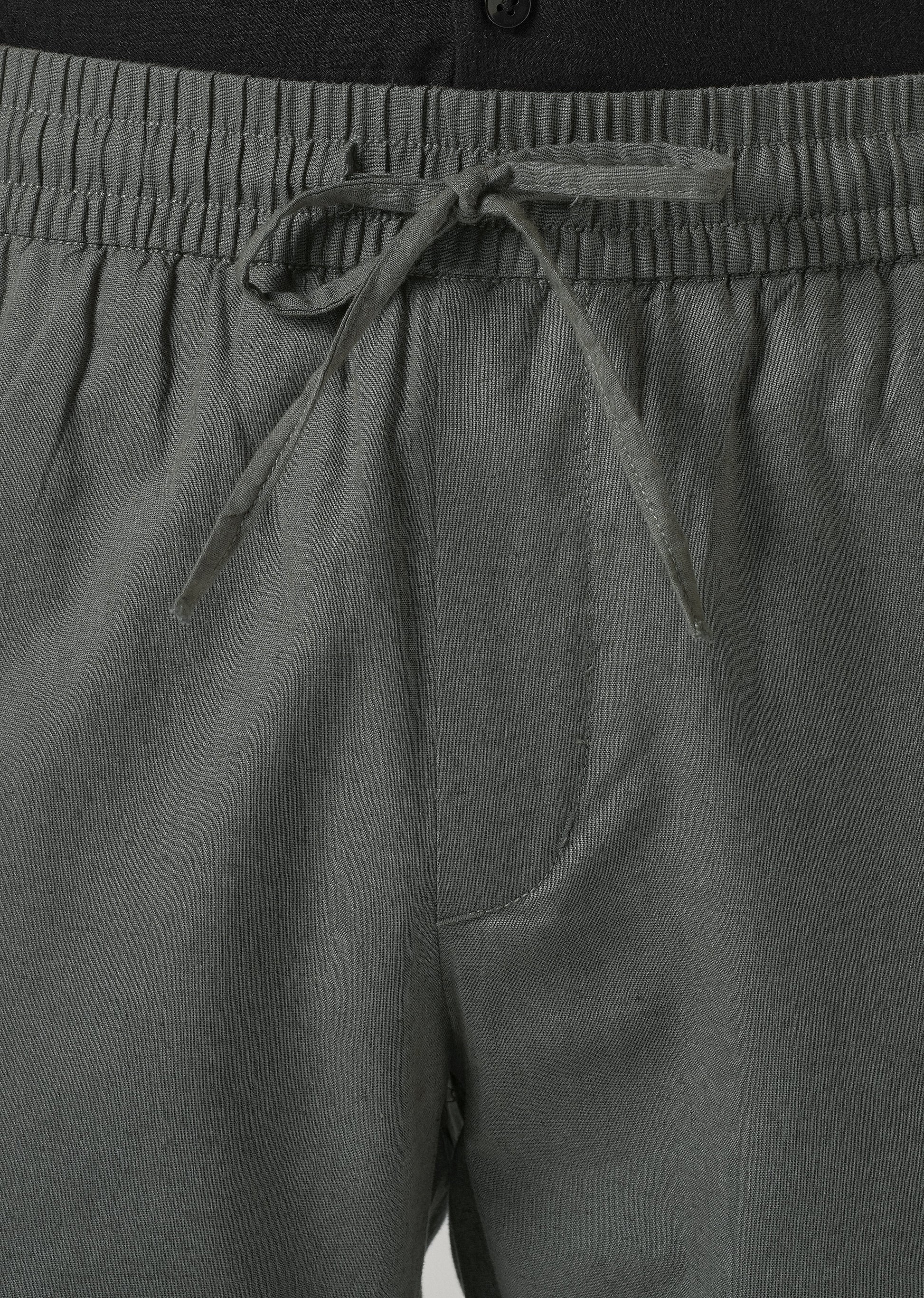 Comfort meets versatility. Designed with an elasticated waist and adjustable drawstring, these pants offer a perfect balance of ease and style. Featuring two front pockets and two welt pockets at the back, they provide both function and a clean look. The linen-cotton blend ensures breathability, making them ideal for all-day wear.