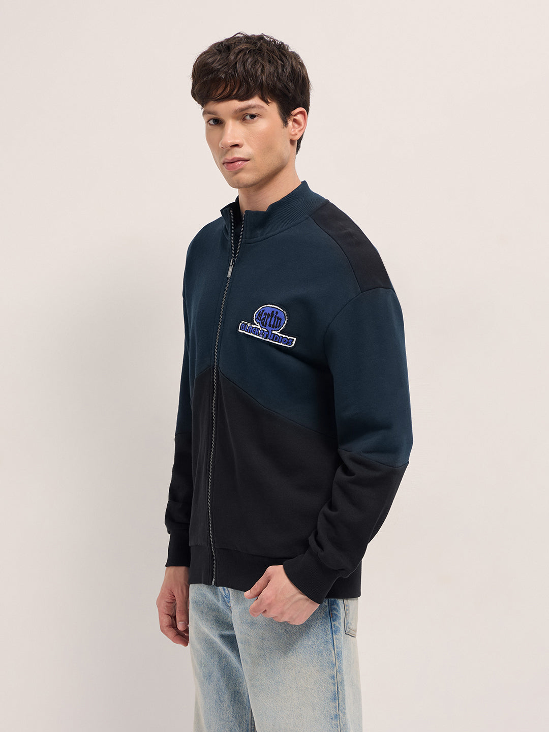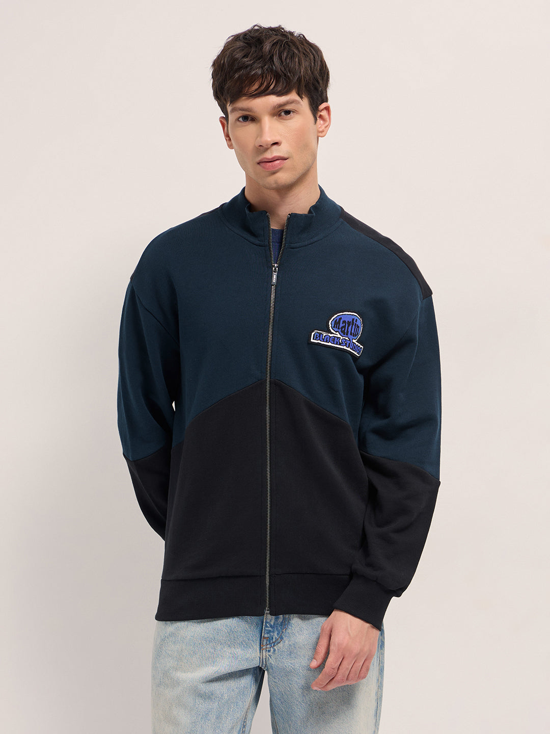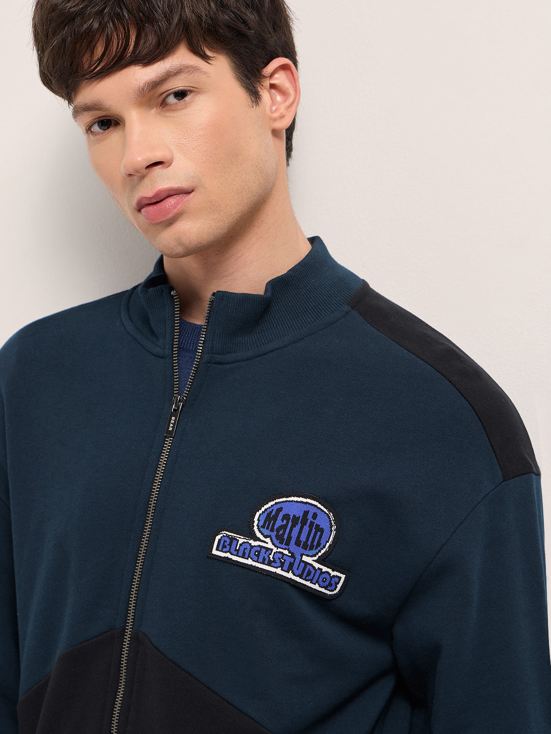 Navy & Black Colorblock Zip-Up Sweatshirt with “Marlin Black Studio” Patch