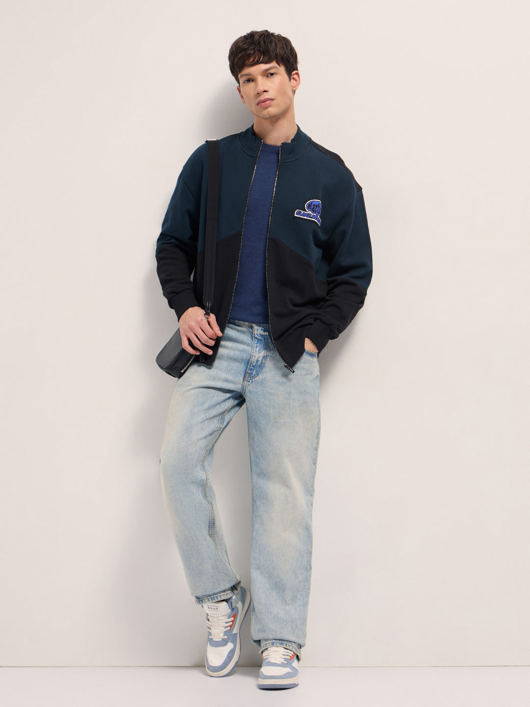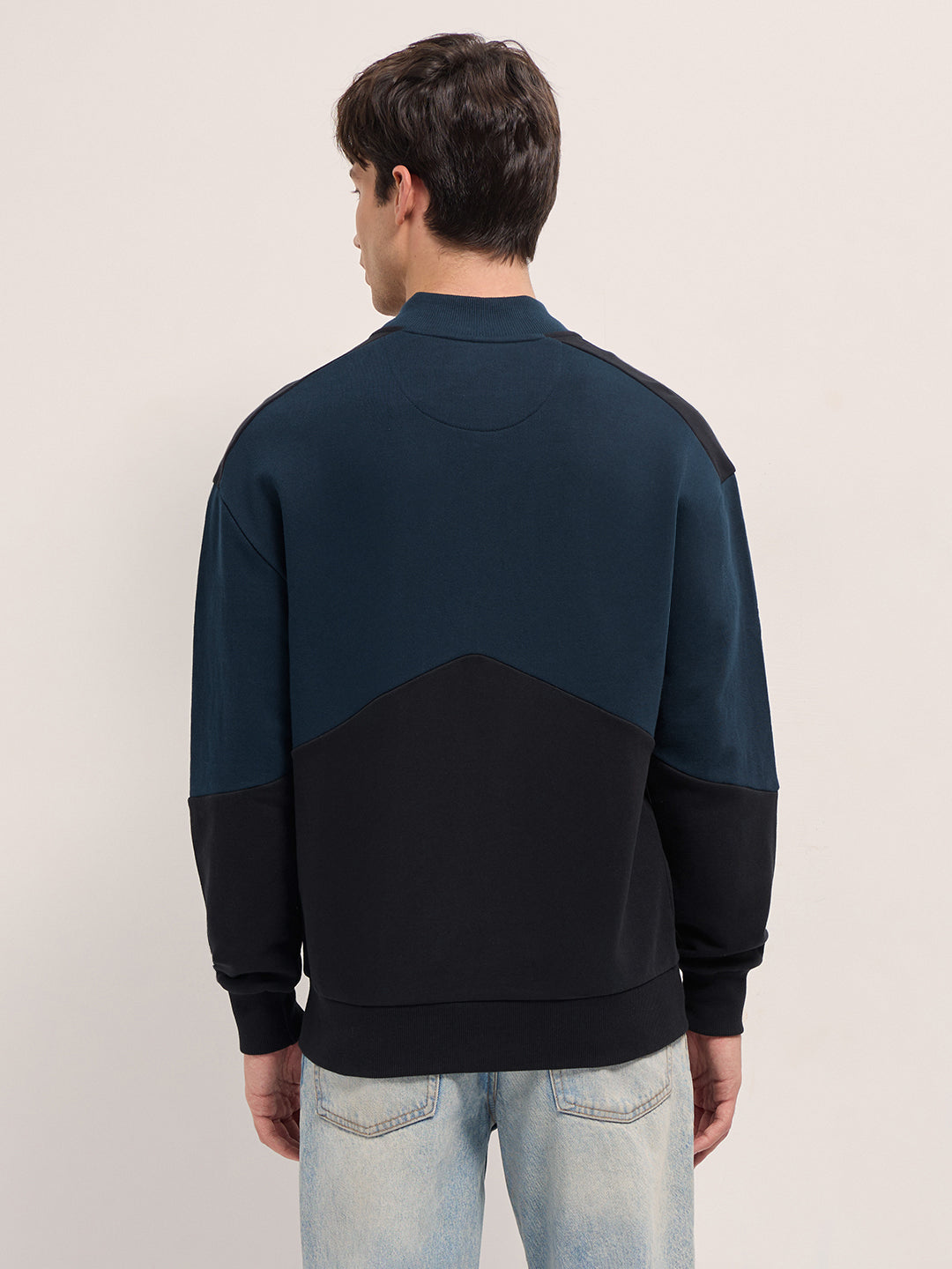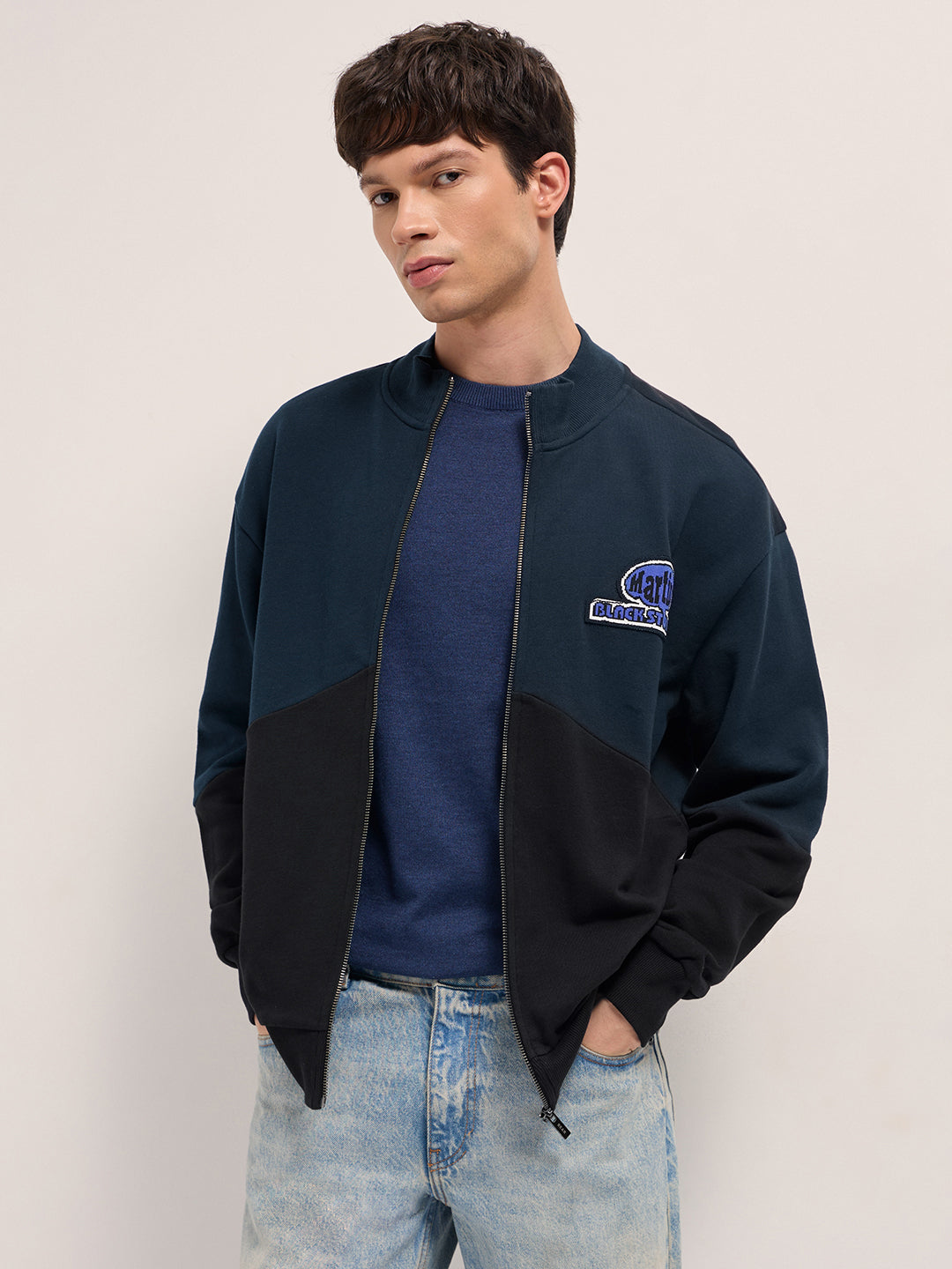 Navy & Black Colorblock Zip-Up Sweatshirt with “Marlin Black Studio” Patch