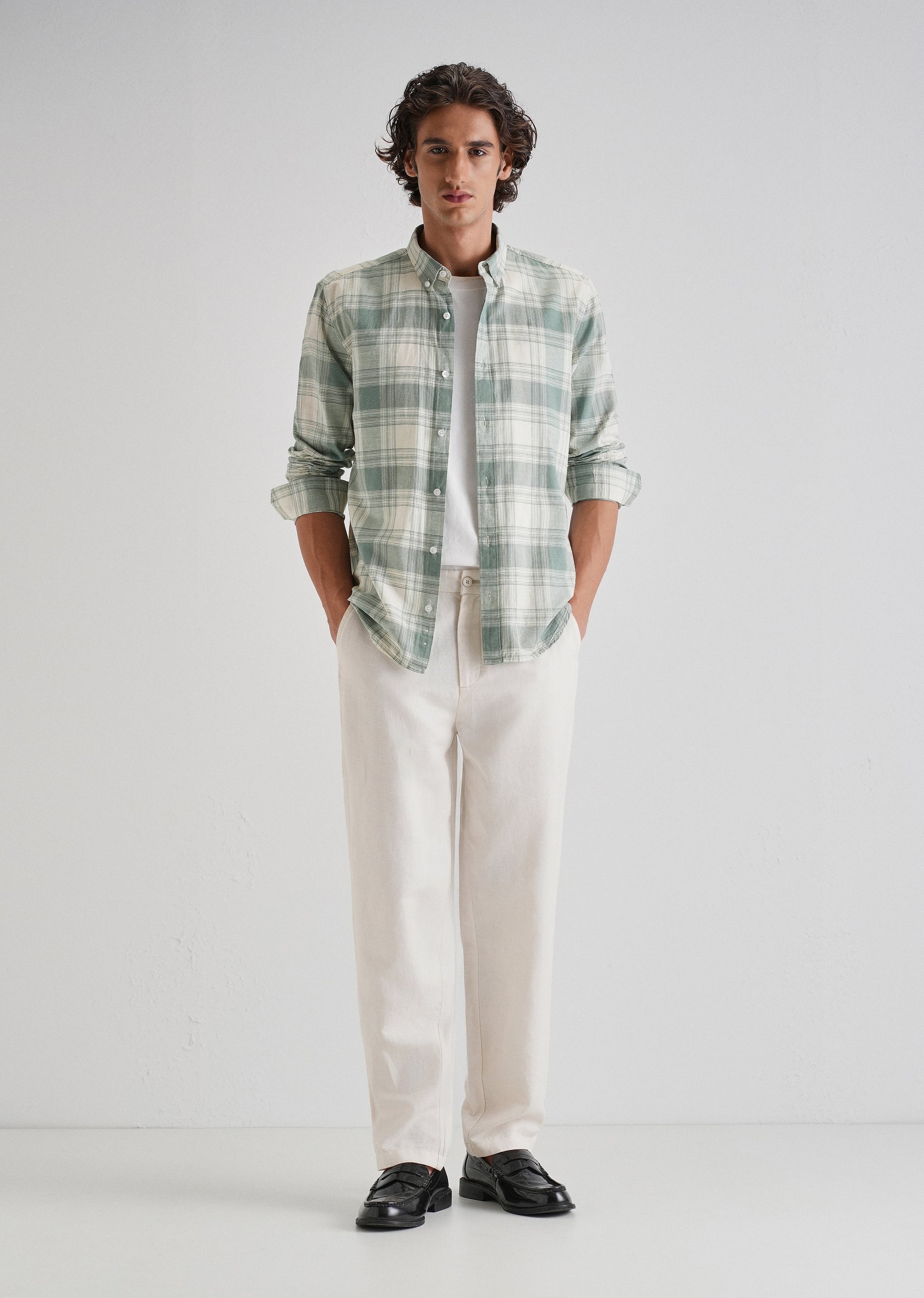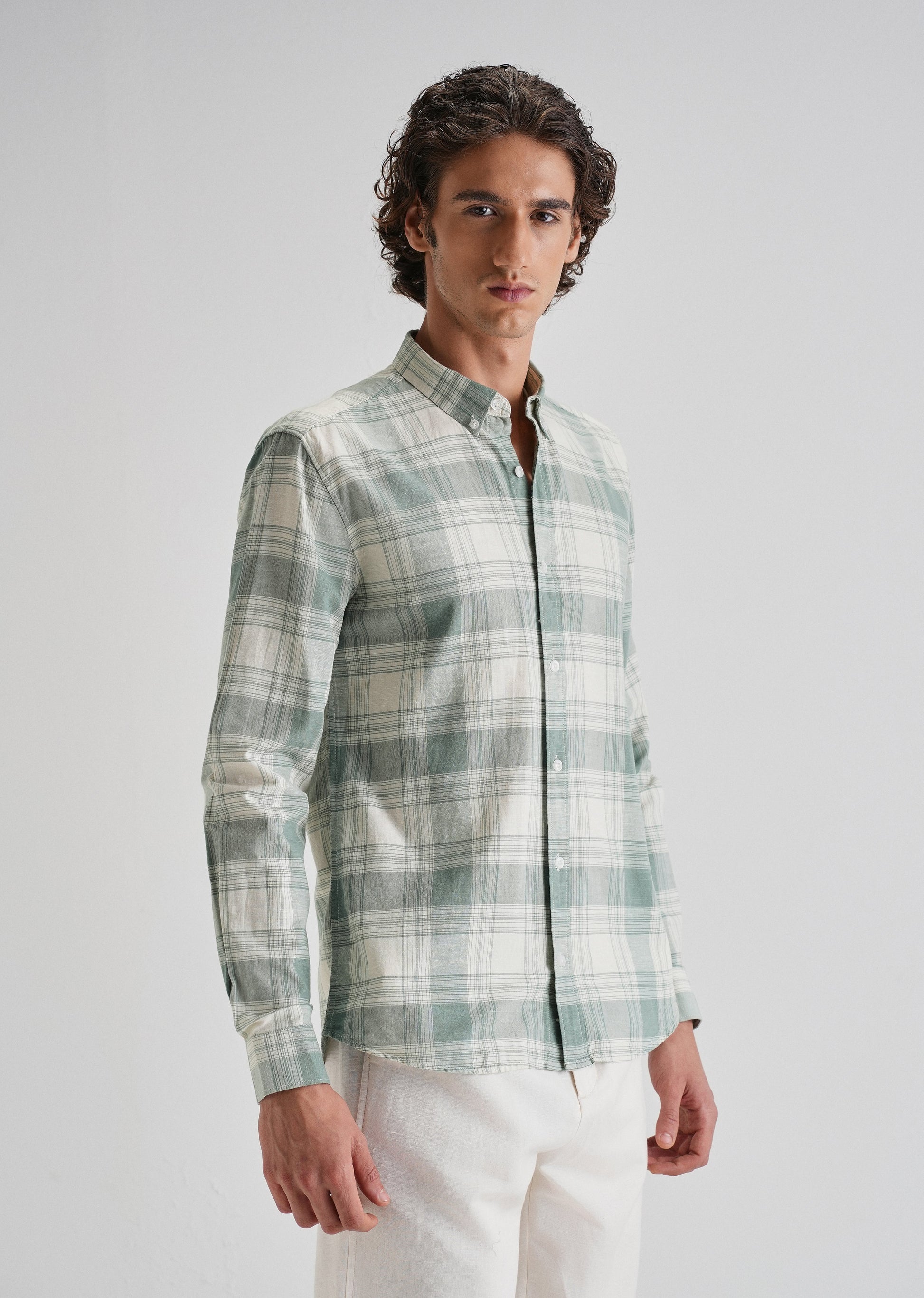 Look and feel your best all day in this cotton check shirt. The soft cotton fabric breathes easily, while the tailored slim fit gently drapes without clinging to your body. Whether dressing up for work or, a night out, or just casual weekends, these all-around shirt has you covered.