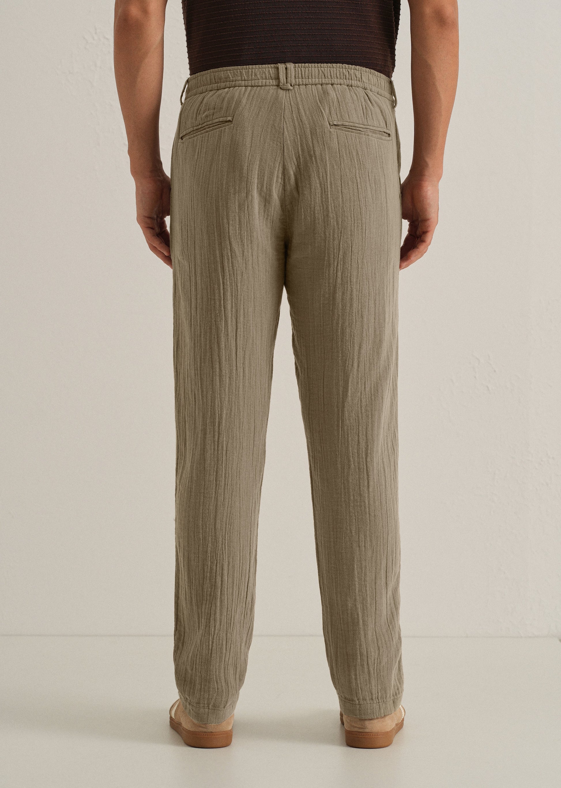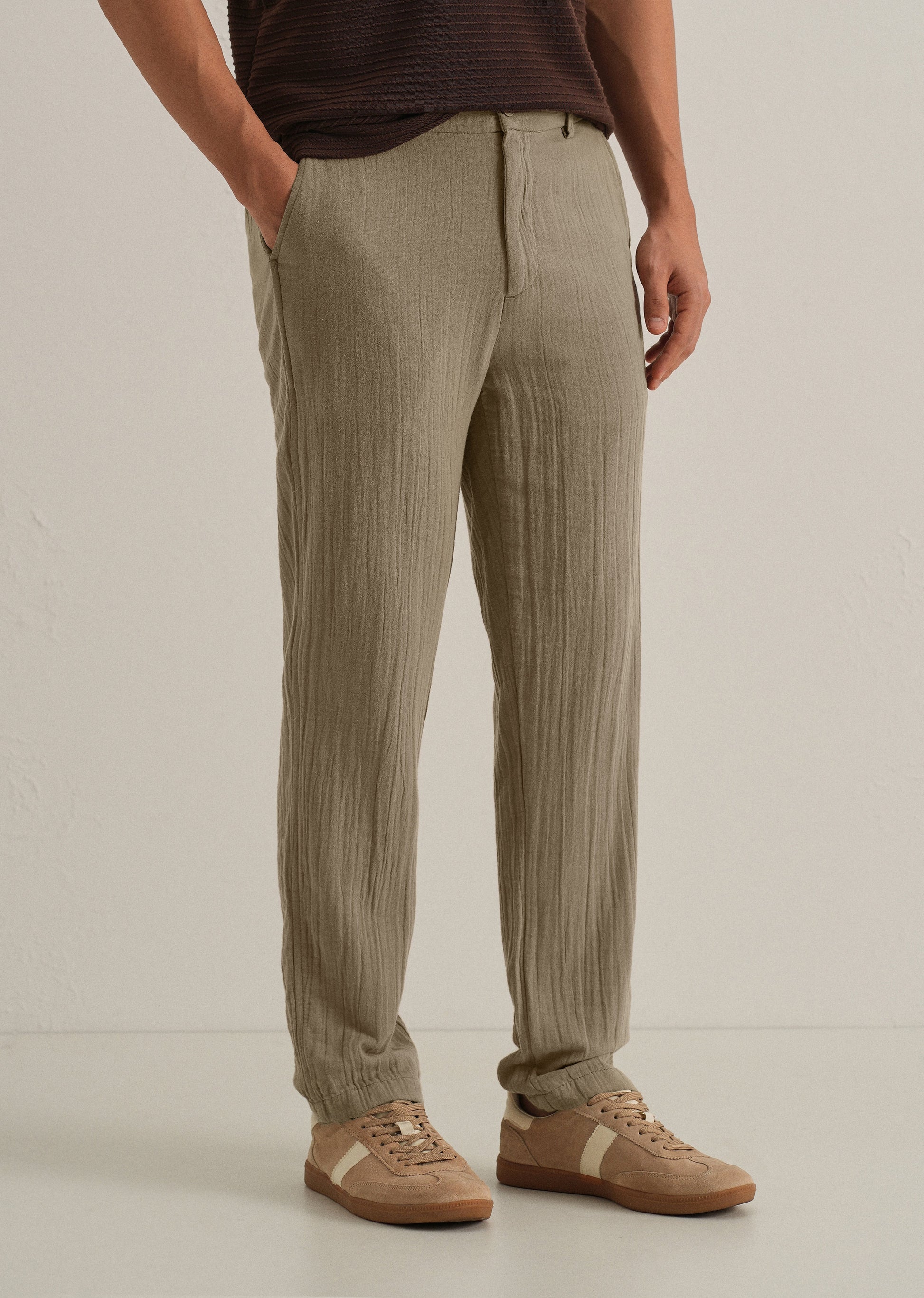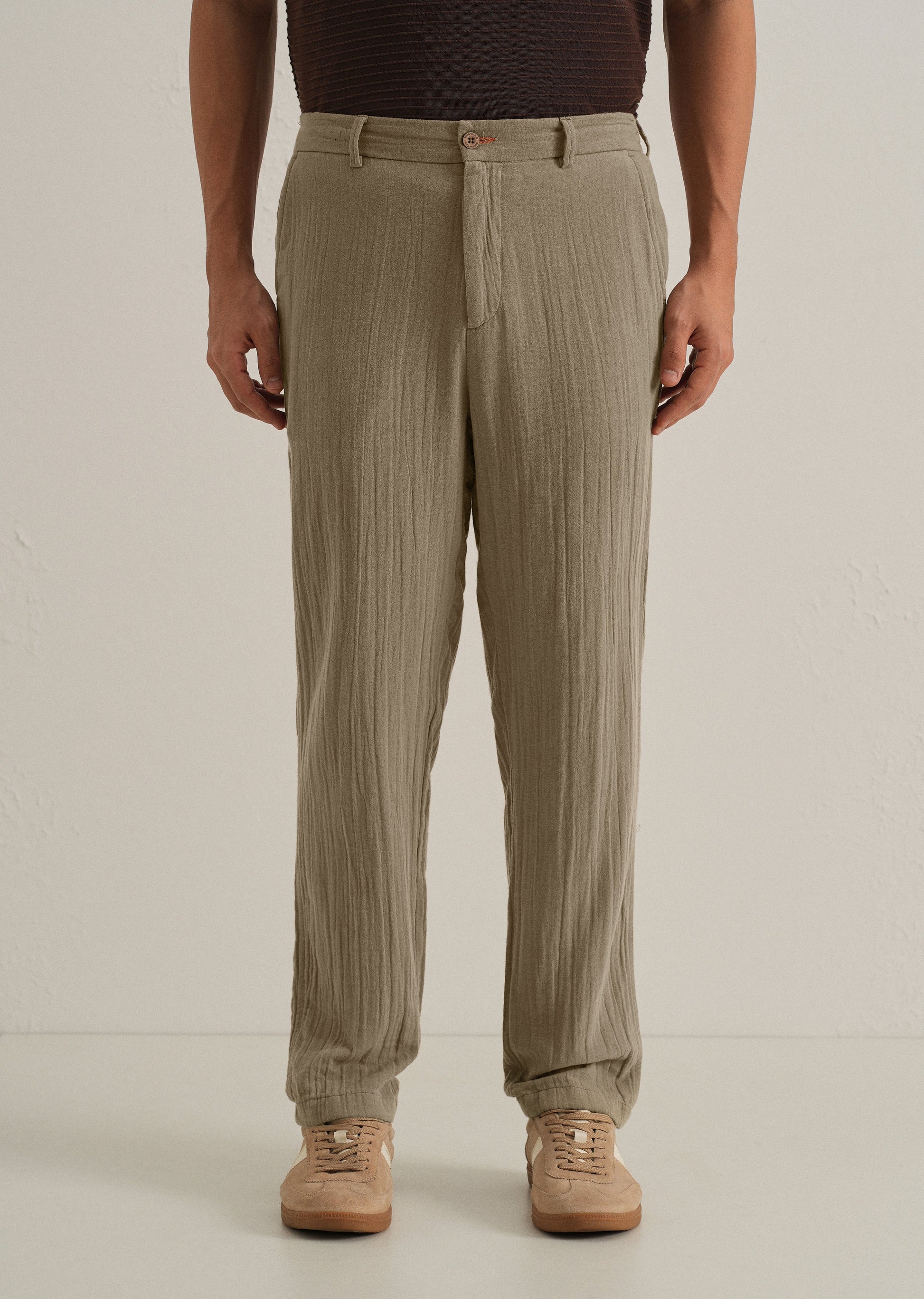 Khaki Crinkled Cotton Trouser
