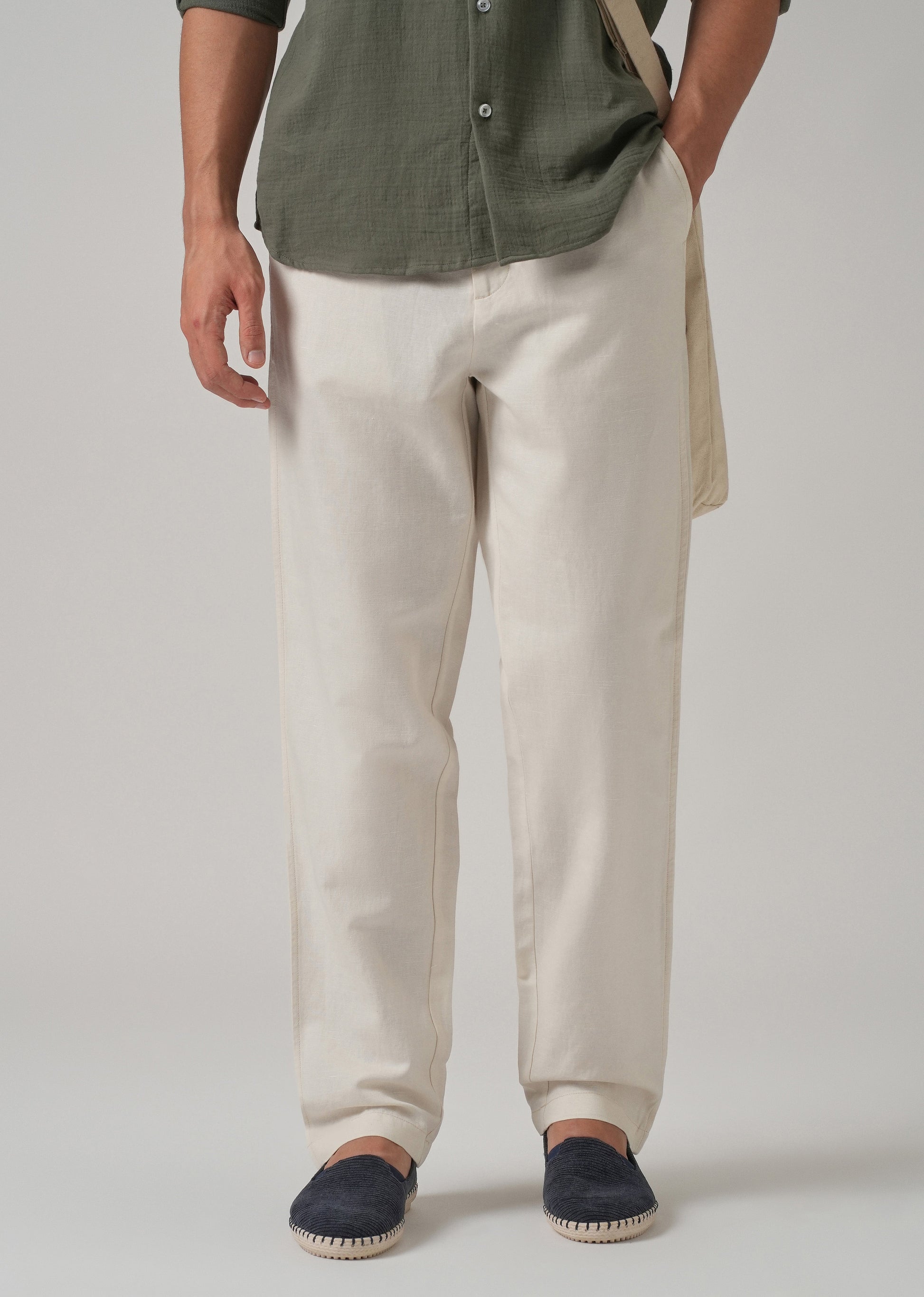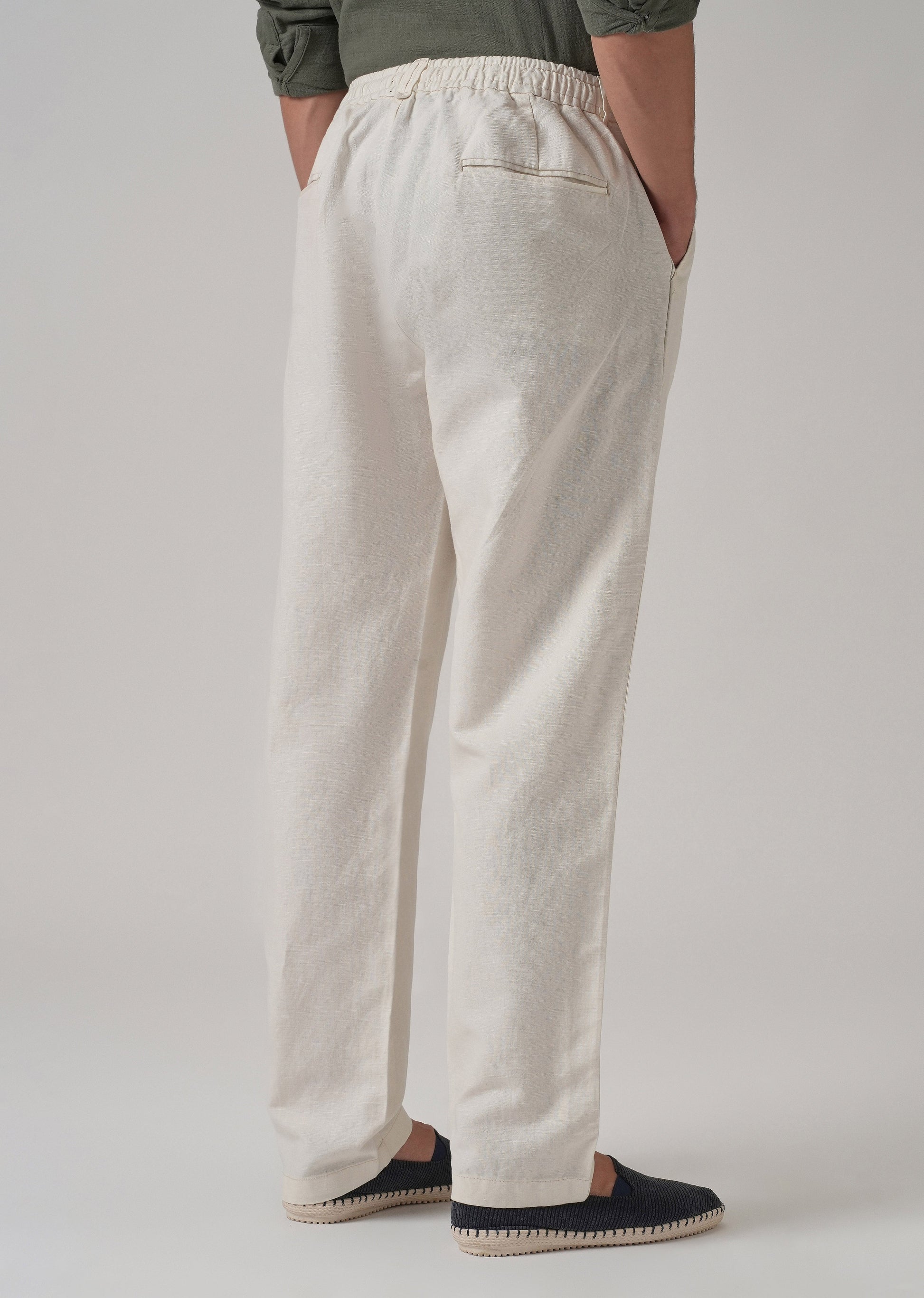 Light Cream Linen Relaxed Fit Trouser