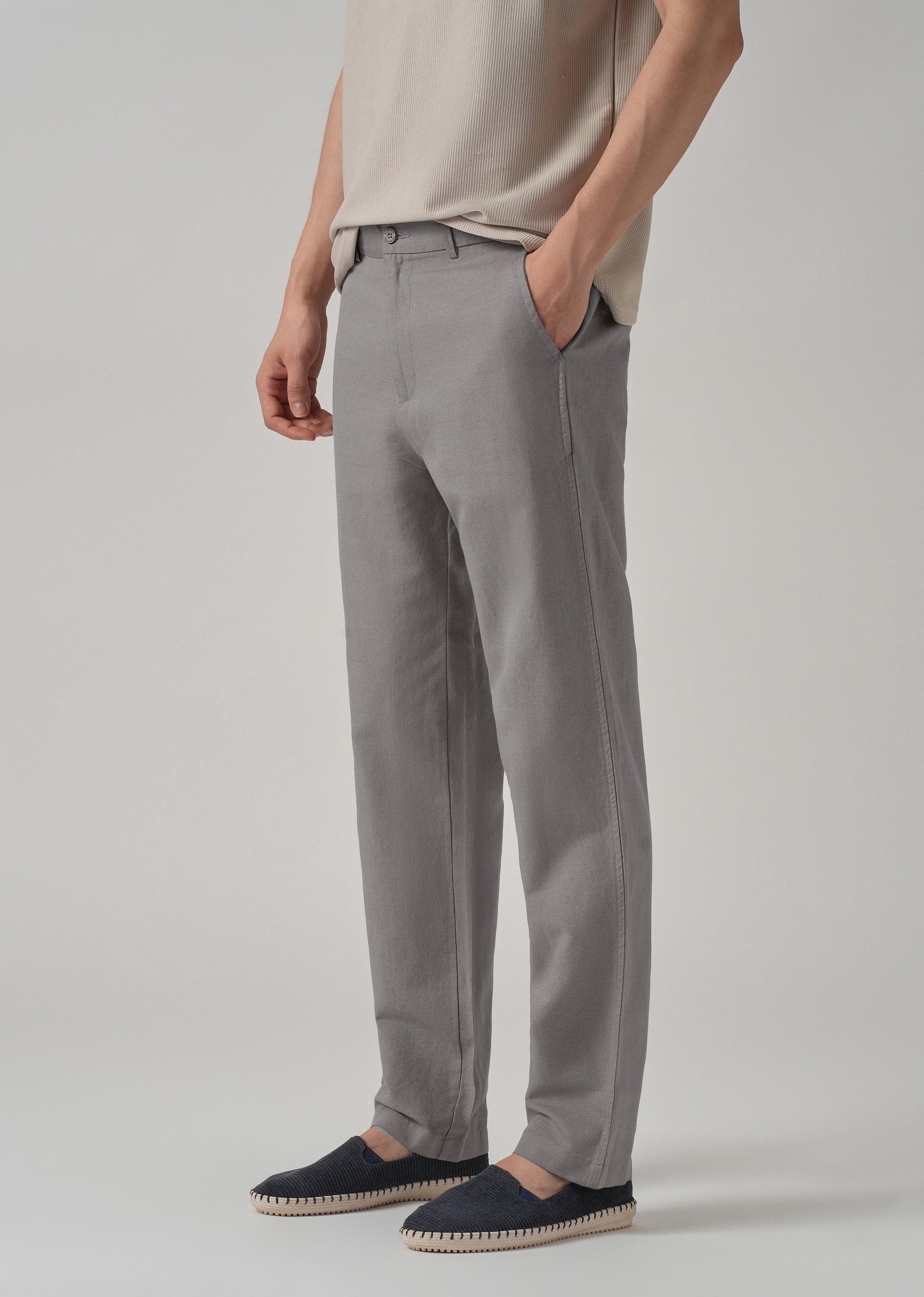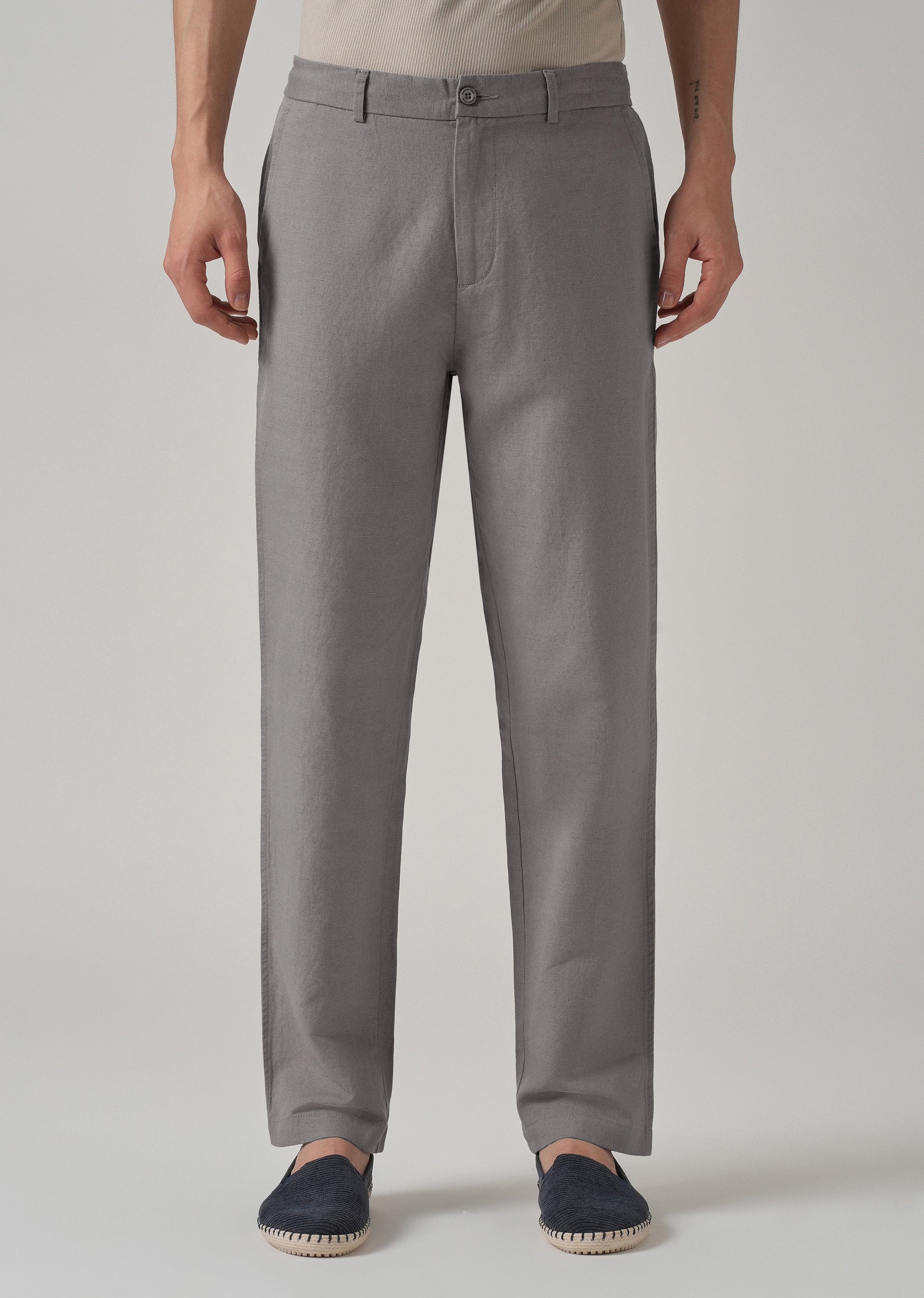Light Grey Linen Relaxed Fit Trouser