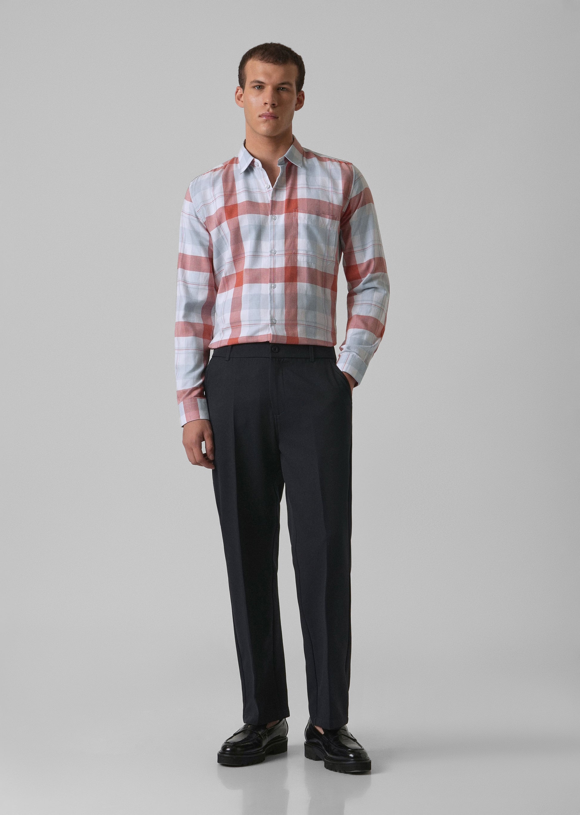 Look and feel your best all day in this cotton check shirt. The soft cotton fabric breathes easily, while the tailored slim fit gently drapes without clinging to your body. Whether dressing up for work or, a night out, or just casual weekends, these all-around shirt has you covered.