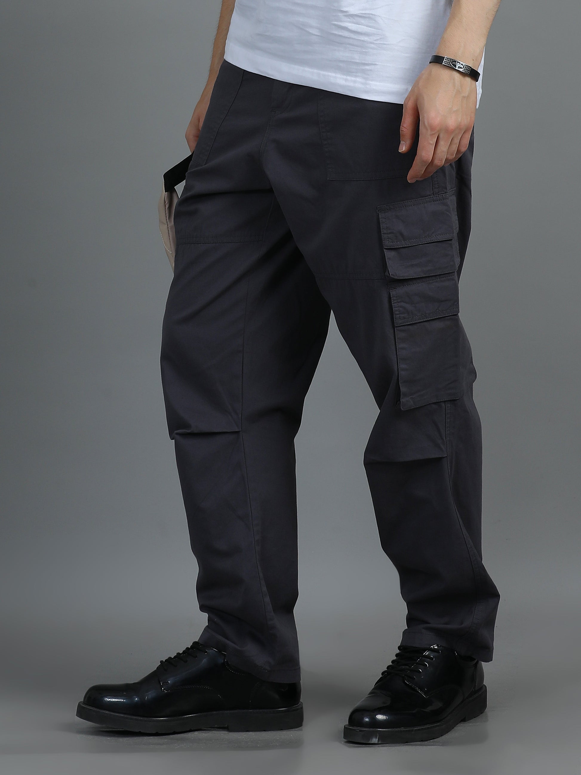 Pack of 2 Cotton Relaxed Fit Cargo Trousers, Charcoal Grey Black