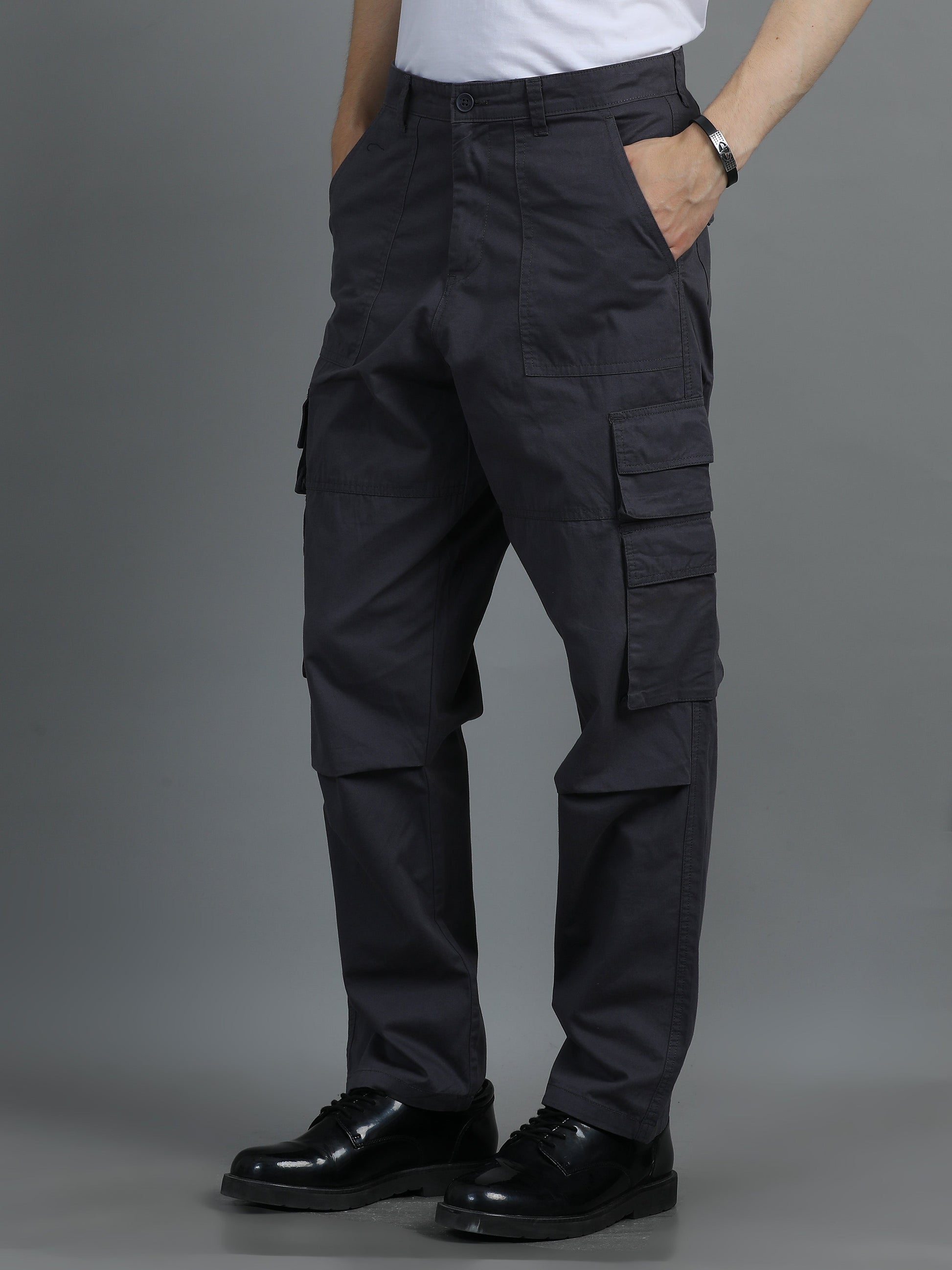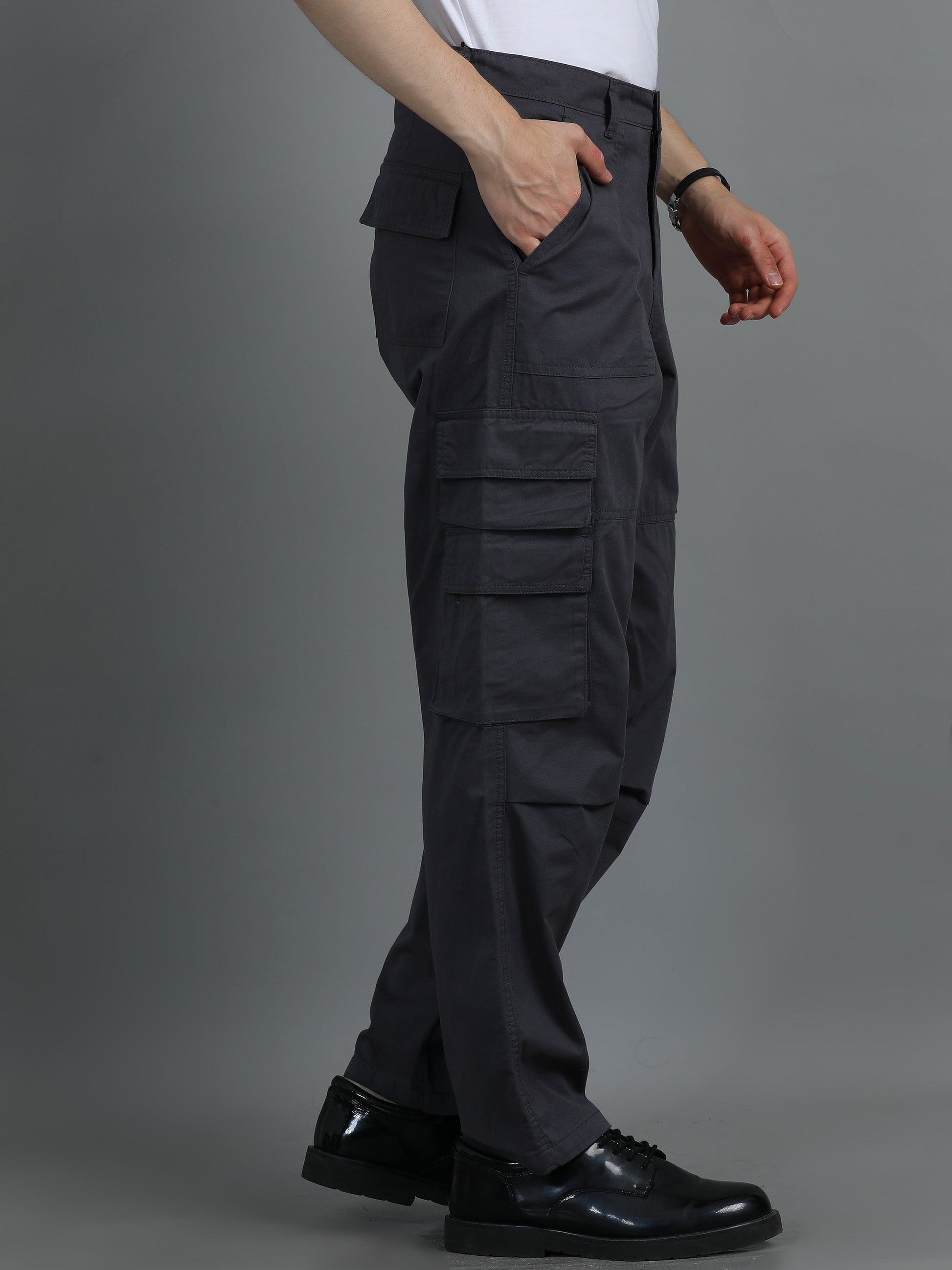 Pack of 2 Cotton Relaxed Fit Cargo Trousers, Charcoal Grey Brown