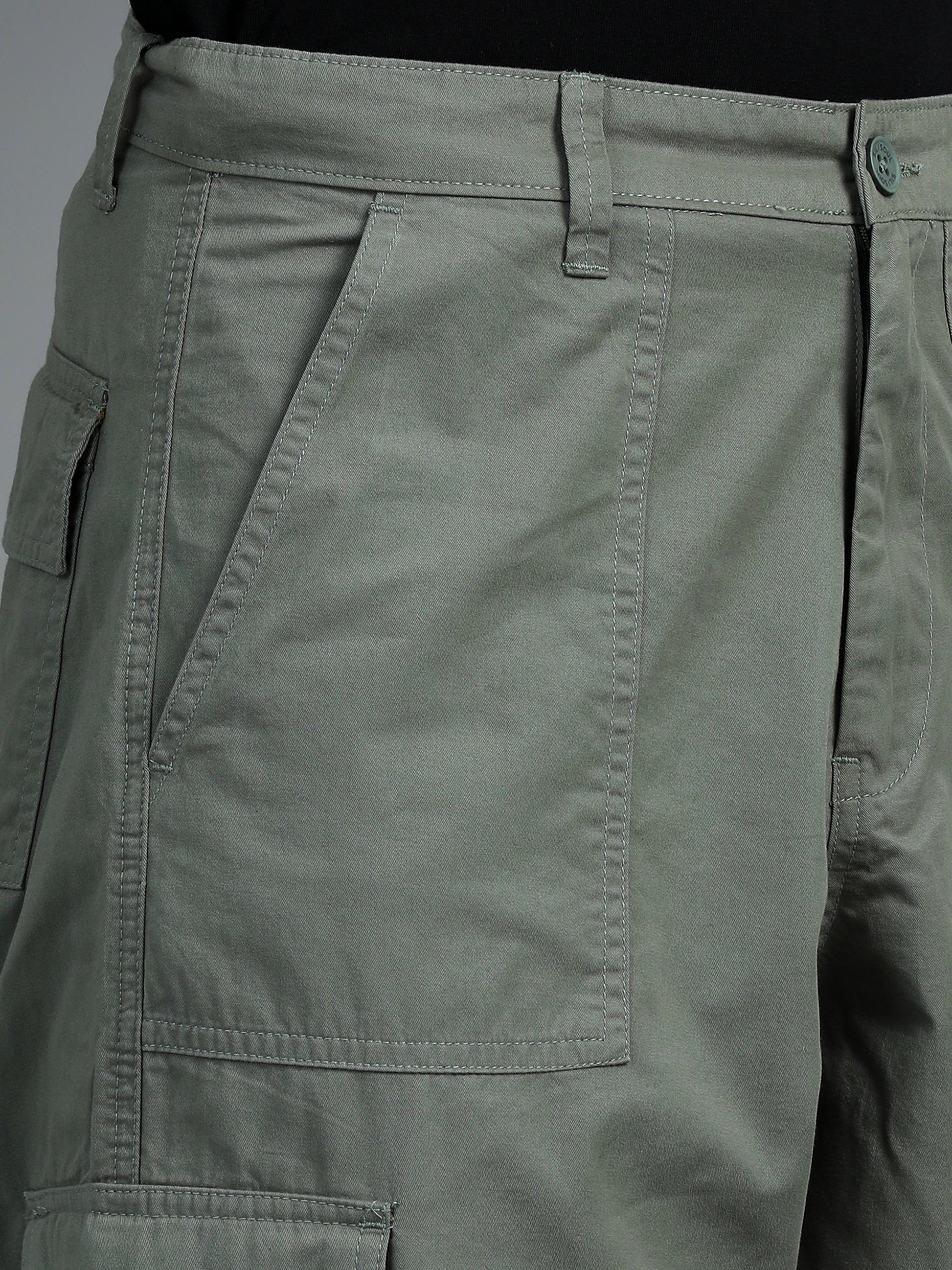 Pack of 2 Cotton Relaxed Fit Cargo Trousers, Black Moss Green