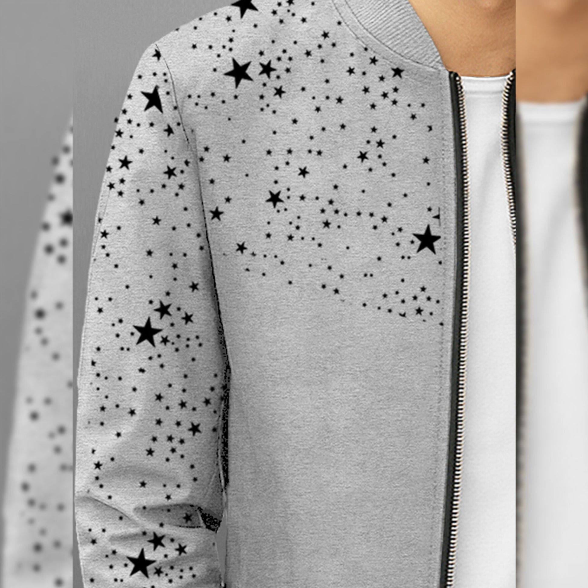 Men Full Sleeve Star Printed Round Neck Jacket Grey