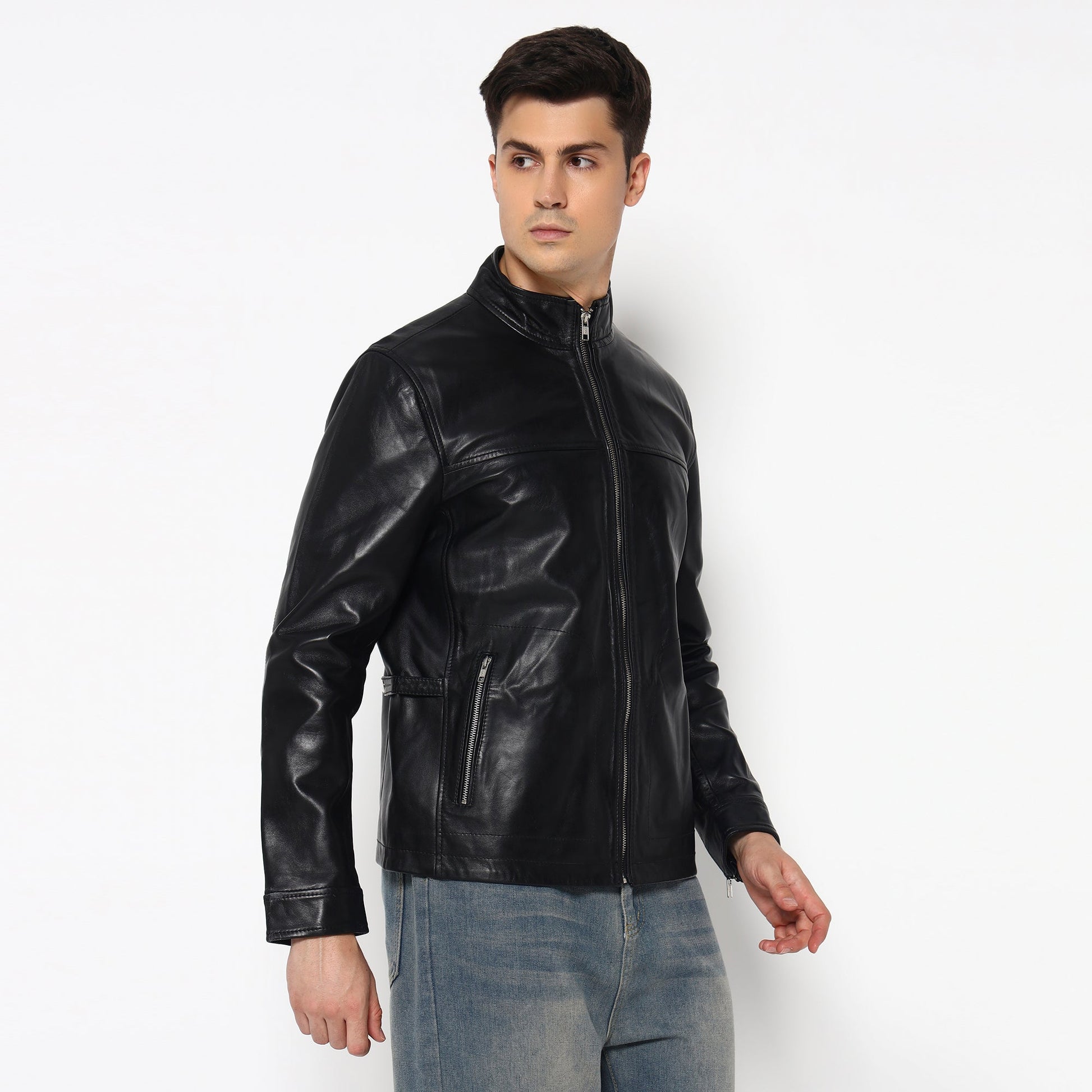 Designed for both style and comfort, it comes with multiple zippered pockets and a smooth inner lining, making it ideal for casual outings, evening events, or layering over your favorite outfits. Durable, versatile, and effortlessly stylish, this sleek black leather jacket is a timeless addition you’ll reach for season after season.