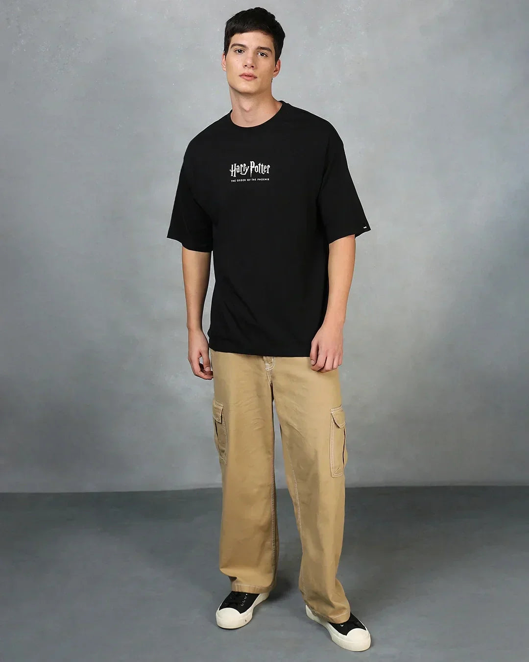 Strut in style to the Grimmauld Place with this Order Of The Phoenix Men's Black Graphic Printed Oversized T-shirt. Pair this Official Harry Potter t-shirt with cargo pants and sneakers for a trendsetter vibe.