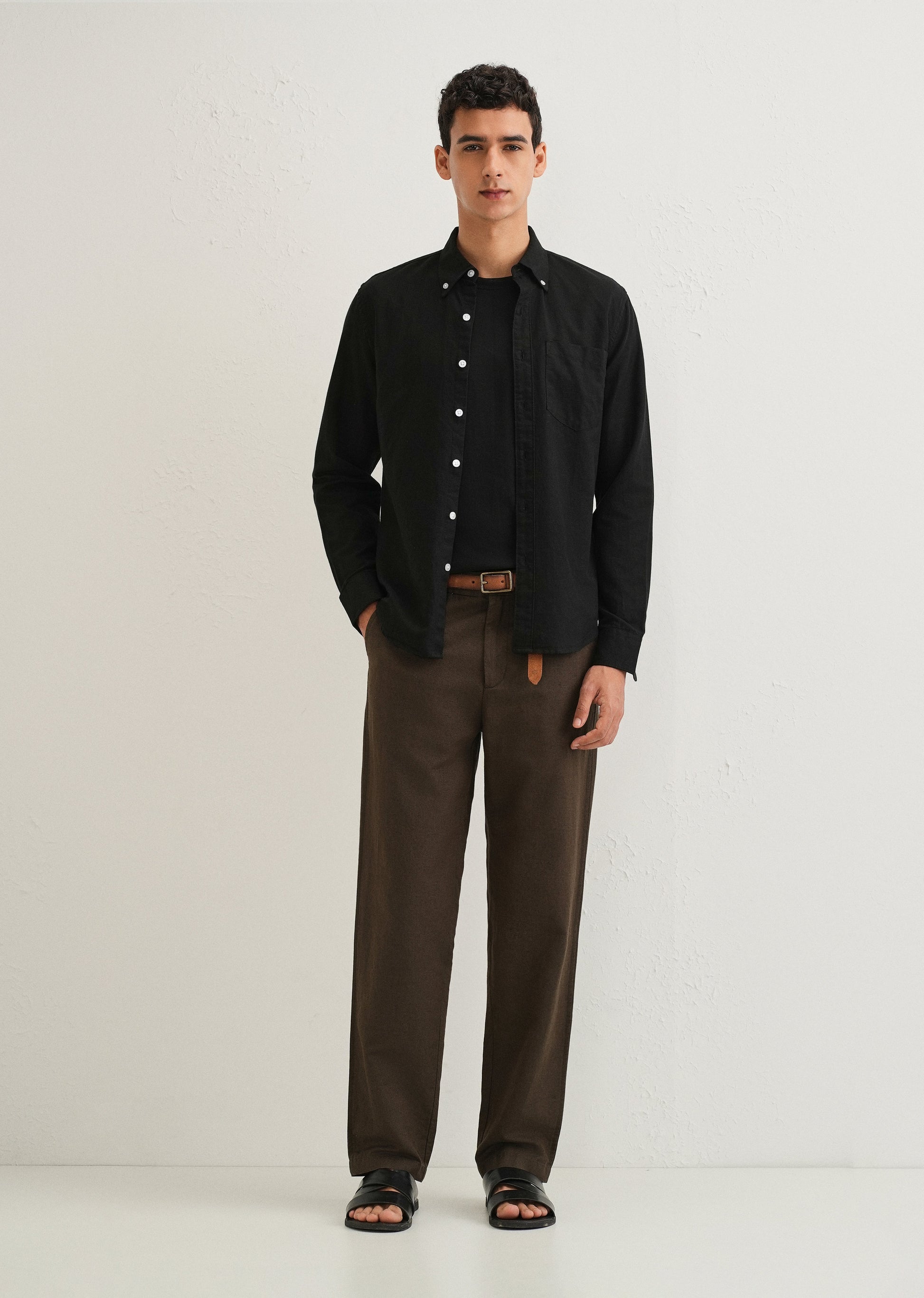 Crafted from a breathable cotton-linen blend, it’s perfect for any season, offering comfort and style in equal measure. A plain shirt built for work and beyond. Crisp, breathable, and easy to style, it keeps you looking sharp through long hours without compromising comfort. Available in a range of versatile colors, this shirt effortlessly enhances your everyday wardrobe.