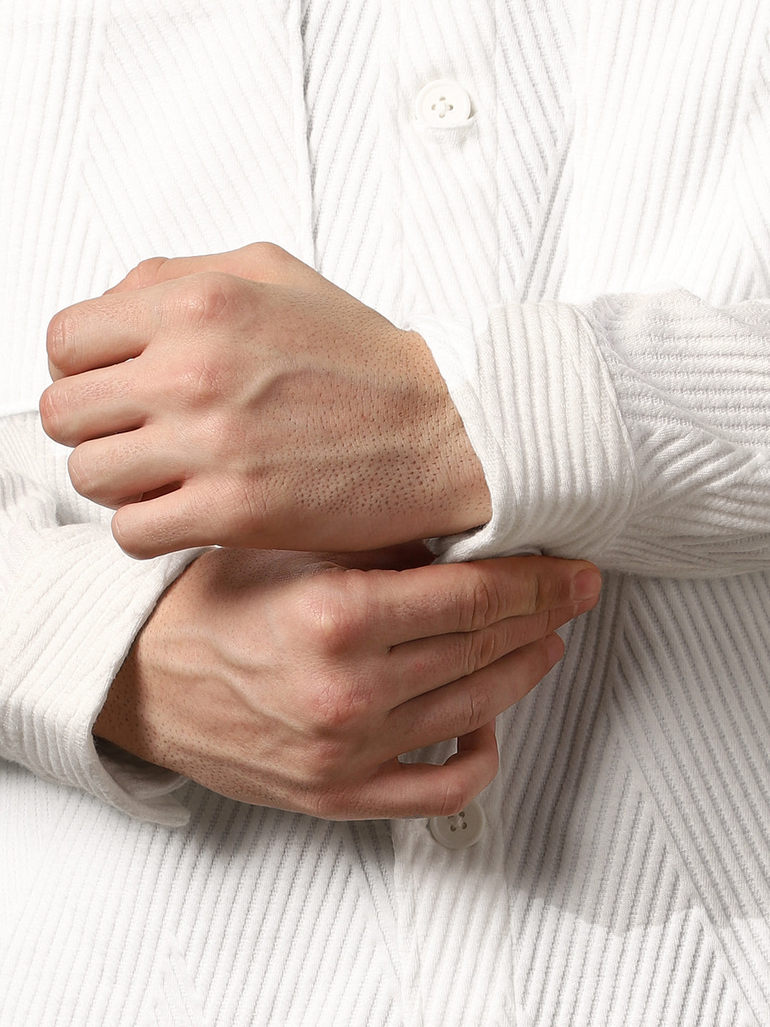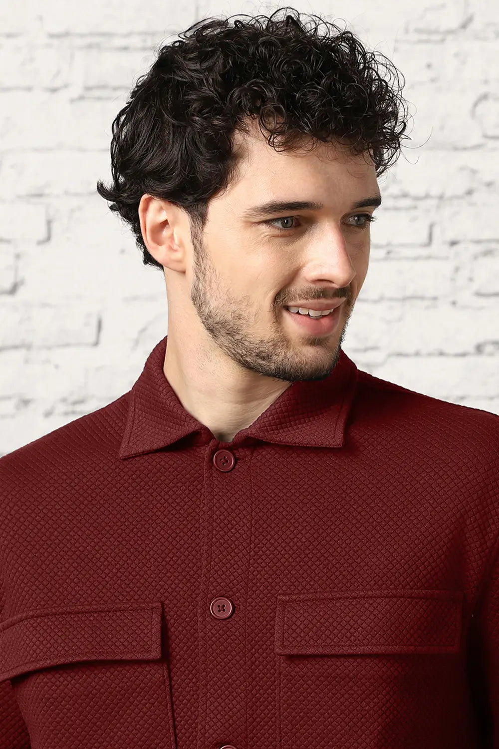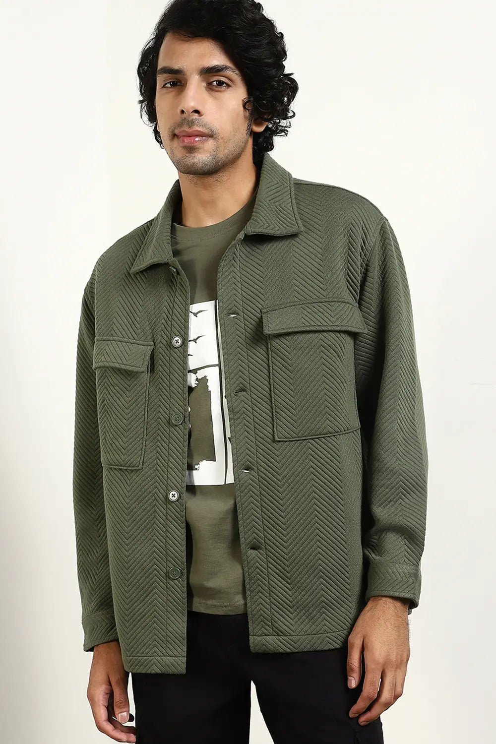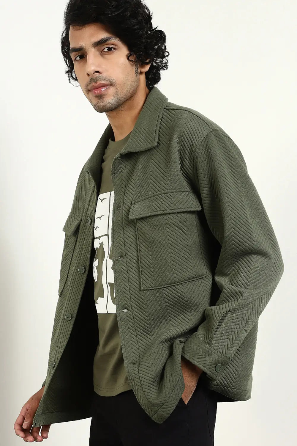 Styling: Complete your winter lookbook by pairing this cozy textured shacket with a trendy Nobero jogger and dainty accessories.