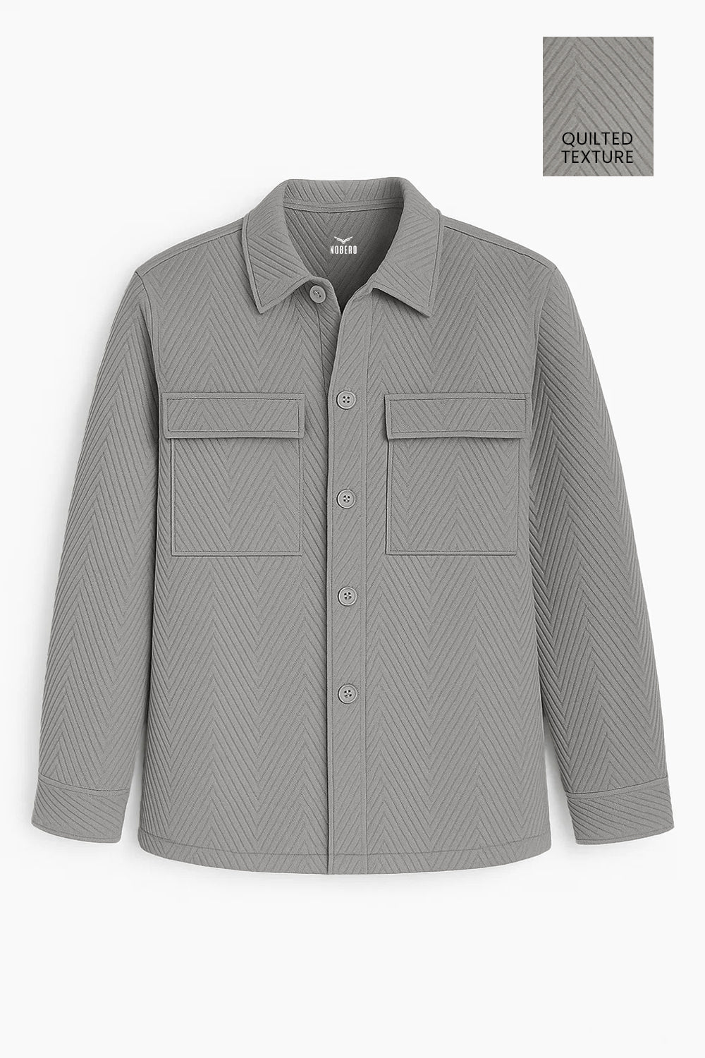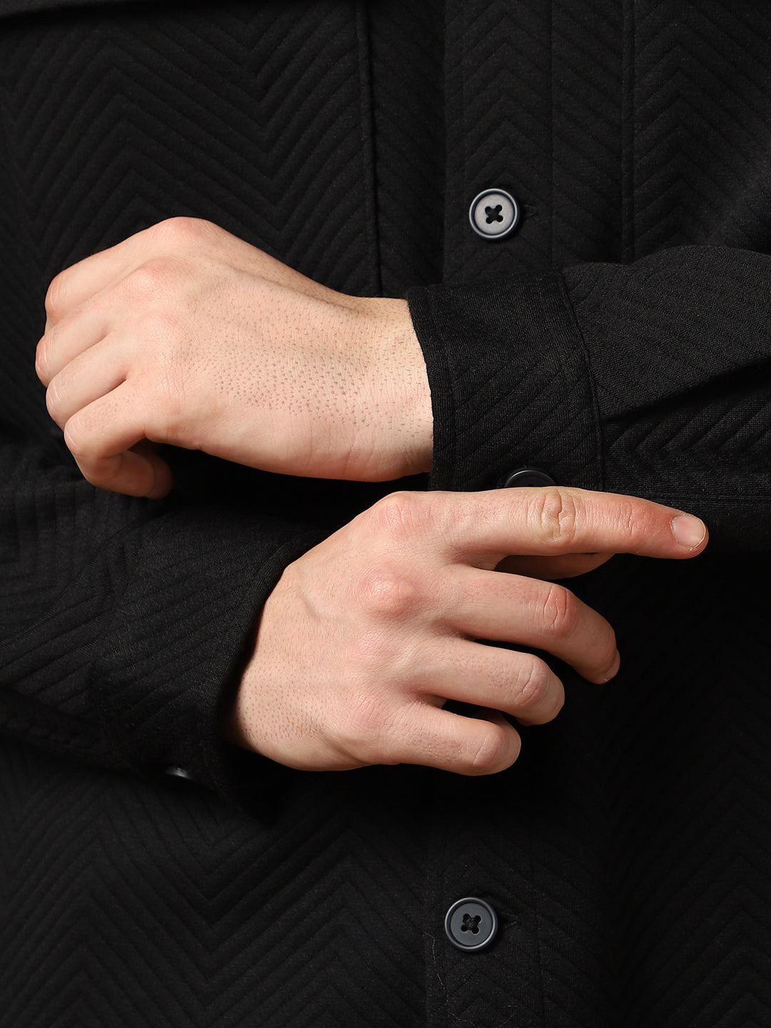 Styling: Complete your winter lookbook by pairing this cozy textured shacket with a trendy Nobero jogger and dainty accessories.