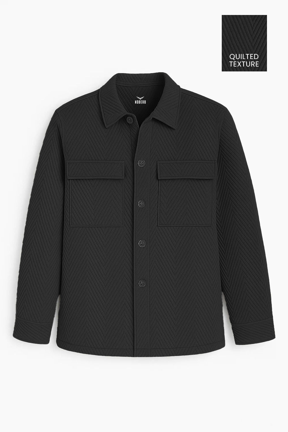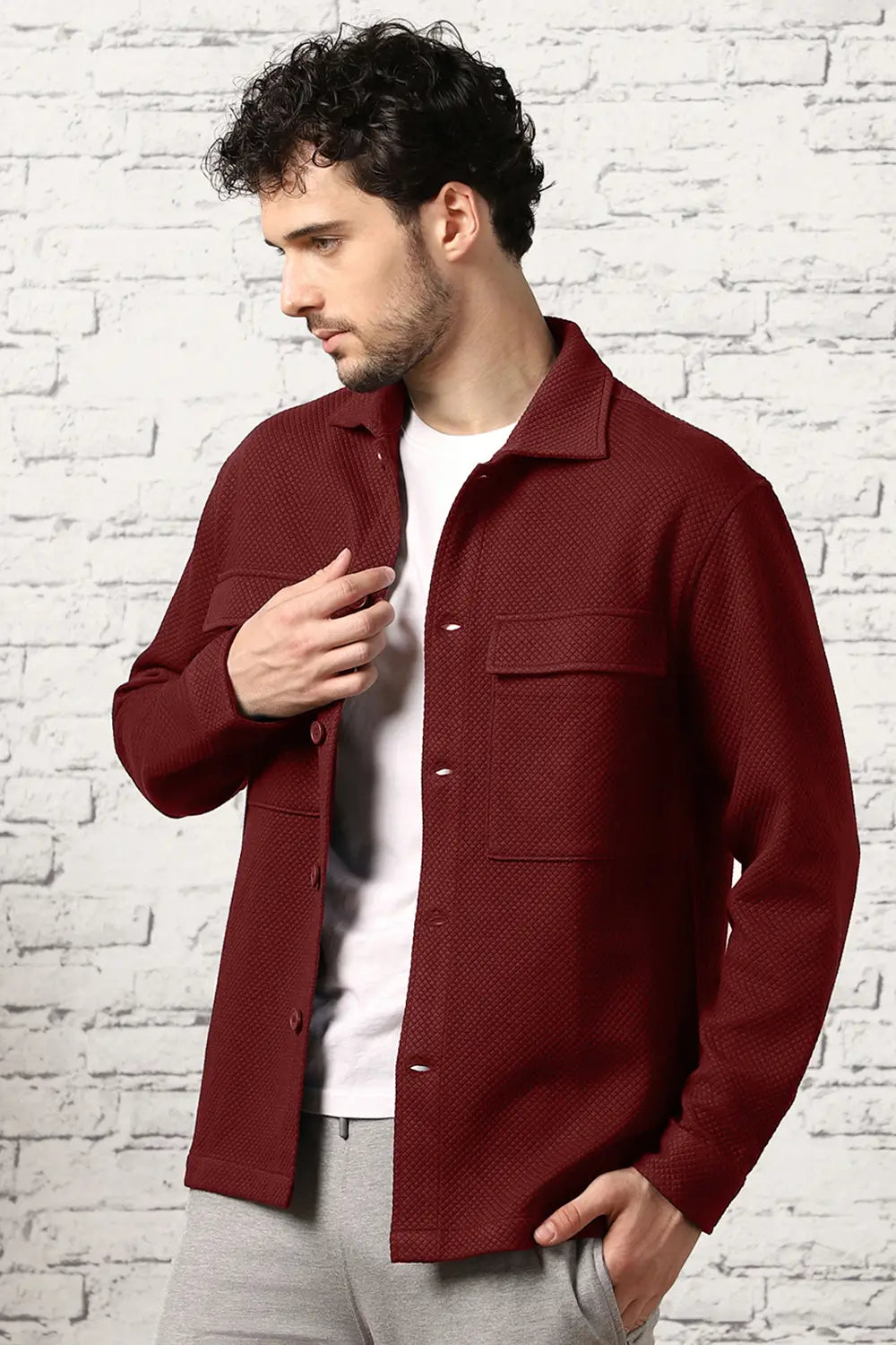 Styling: Complete your winter lookbook by pairing this cozy textured shacket with a trendy Nobero jogger and dainty accessories.