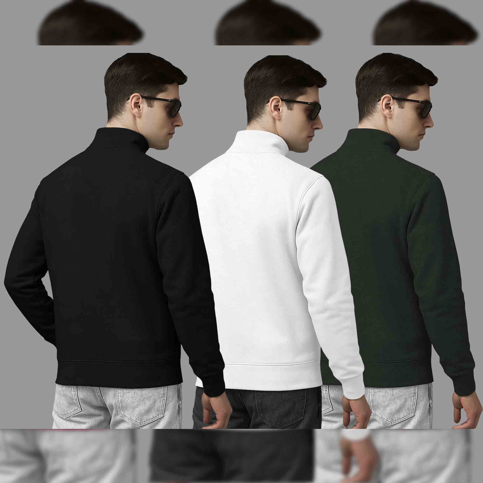 (Pack Of 3) Mens High Neck Sweatshirts Black-White-Olive