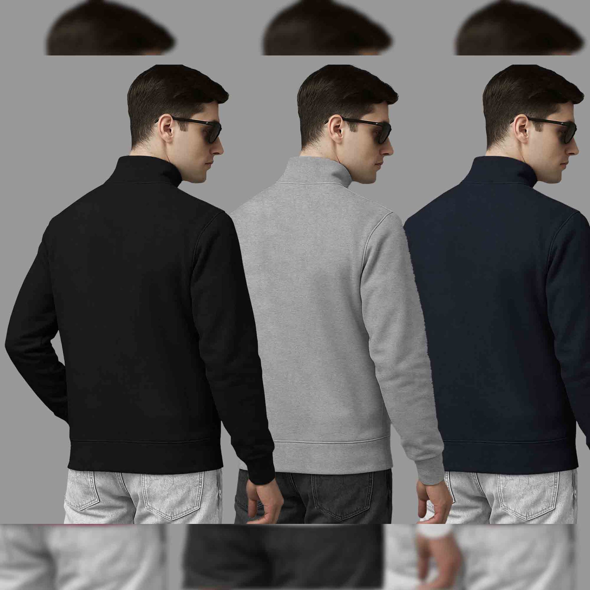(Pack Of 3) Mens High Neck Sweatshirts Black-Grey-Navy