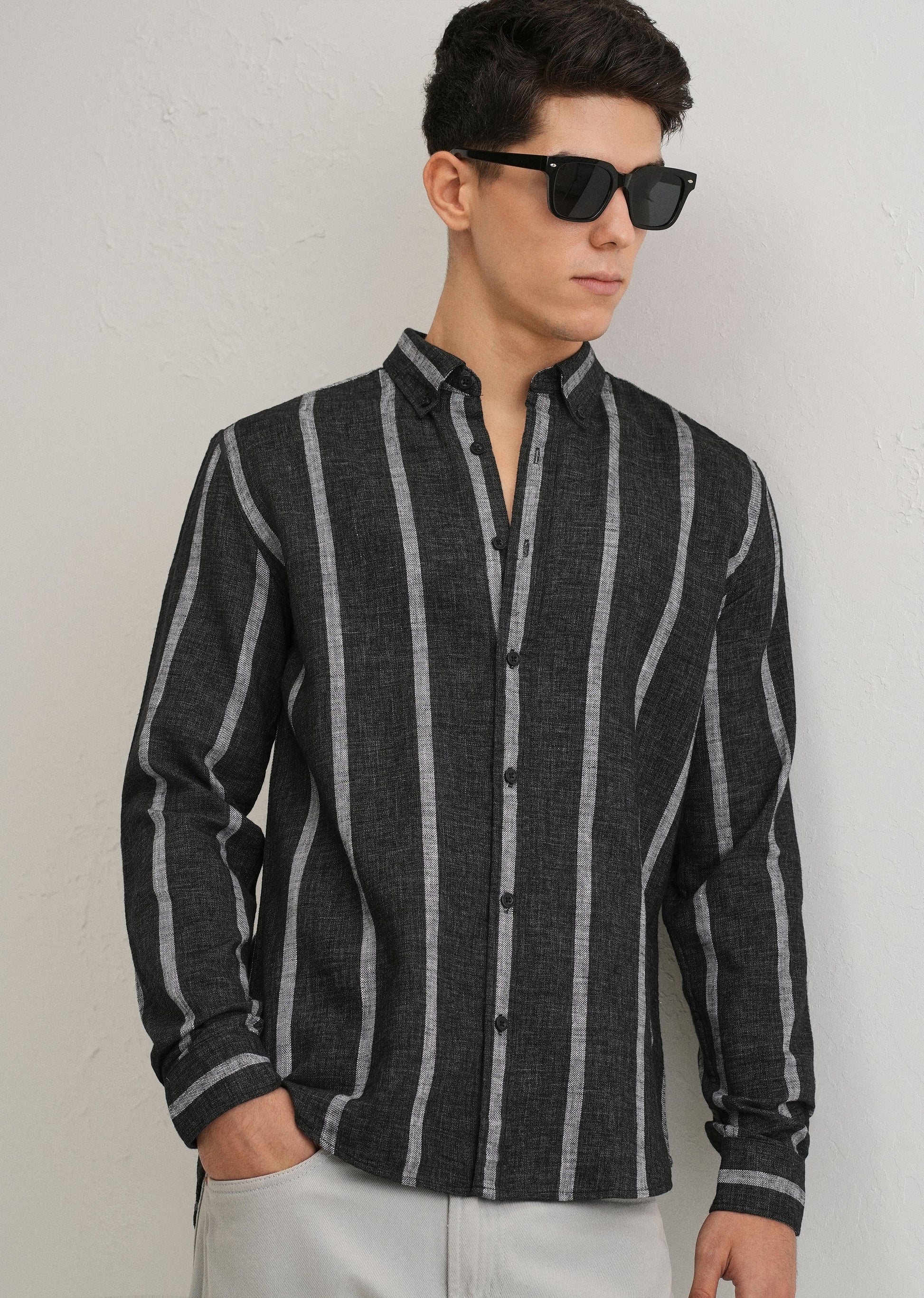 Melange Parallel Gray Stripe Shirt