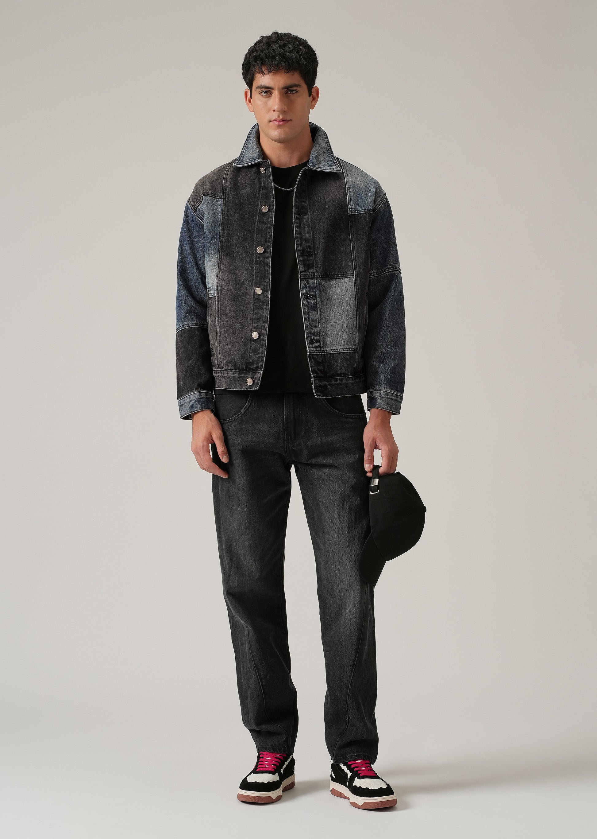 Make a statement with our patchwork denim jacket. The patchwork design gives it a unique touch, while the sturdy denim fabric makes it perfect for layering. With handy side pockets and a metal button detail at the back, this piece is both functional and stylish.