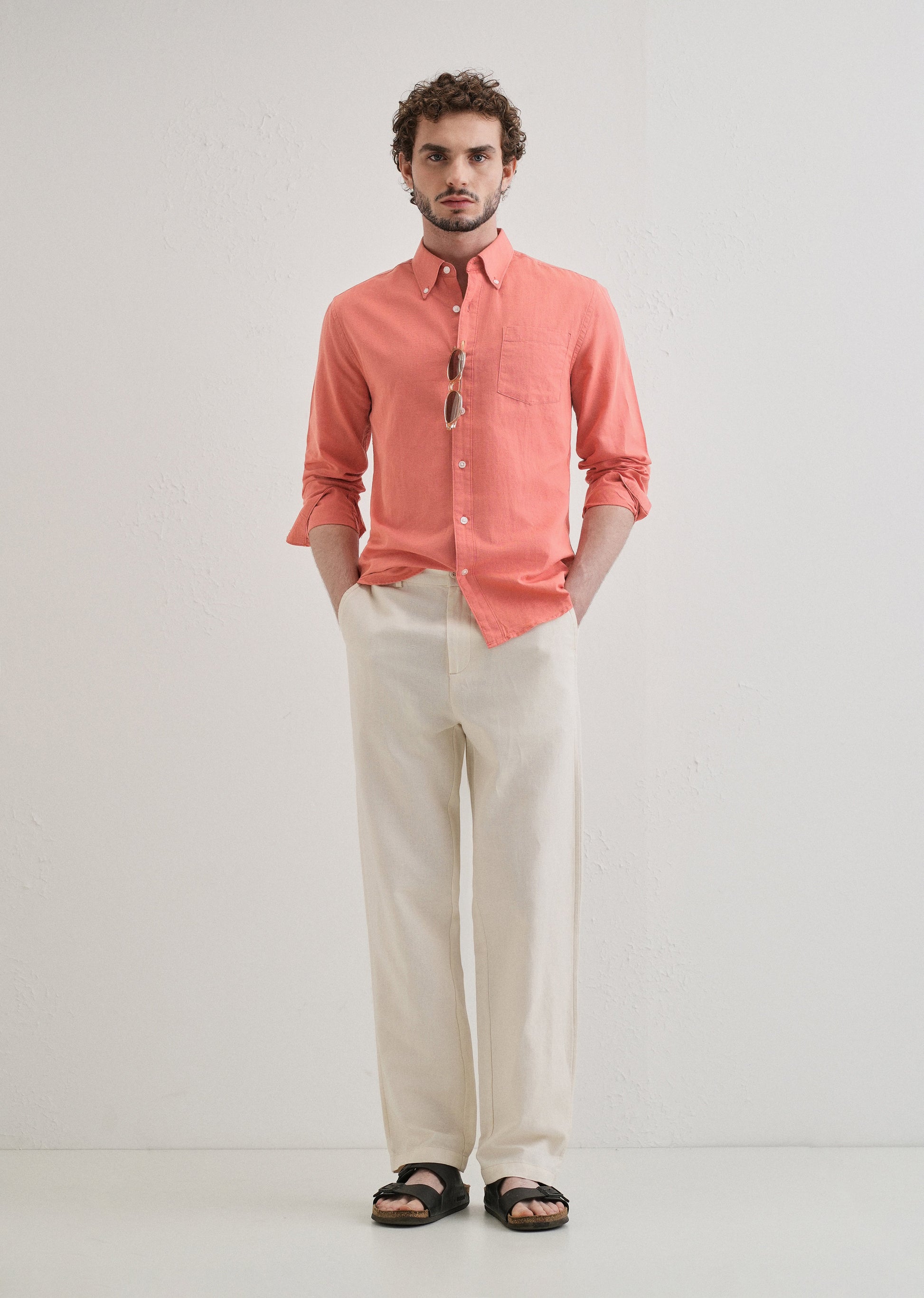 Crafted from a breathable cotton-linen blend, it’s perfect for any season, offering comfort and style in equal measure. A plain shirt built for work and beyond. Crisp, breathable, and easy to style, it keeps you looking sharp through long hours without compromising comfort. Available in a range of versatile colors, this shirt effortlessly enhances your everyday wardrobe.