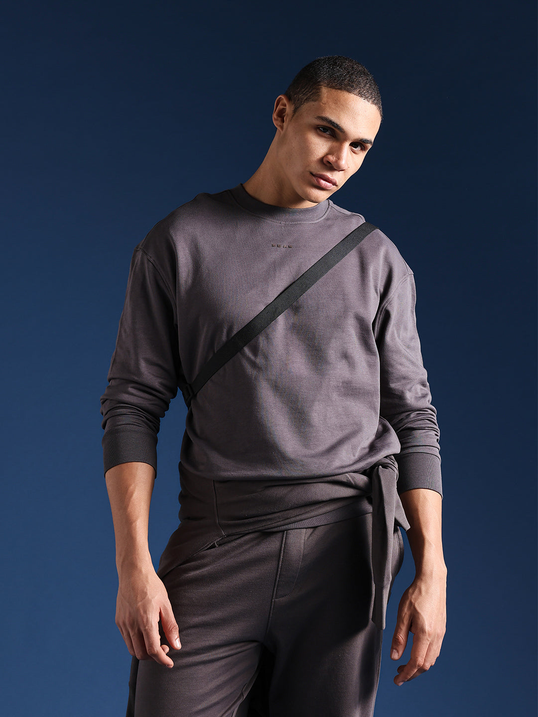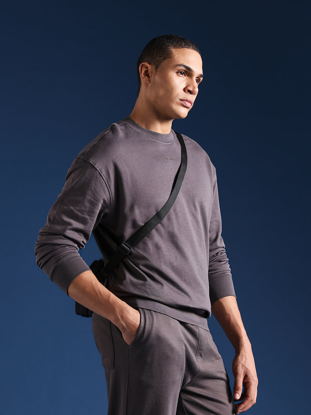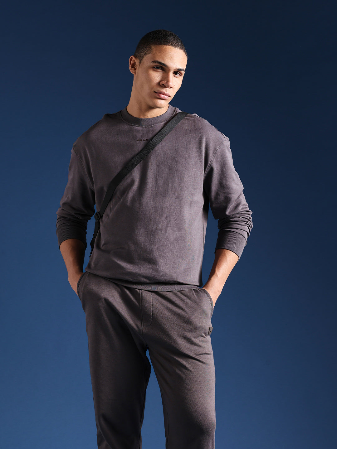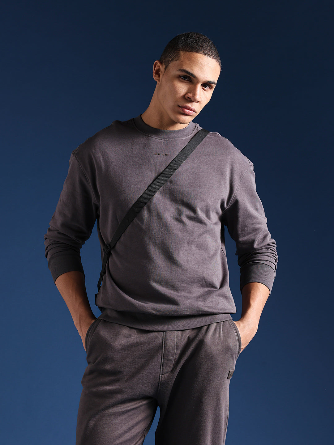 Grey Crew Neck Relax Fit Sweatshirt with Minimal Branding
