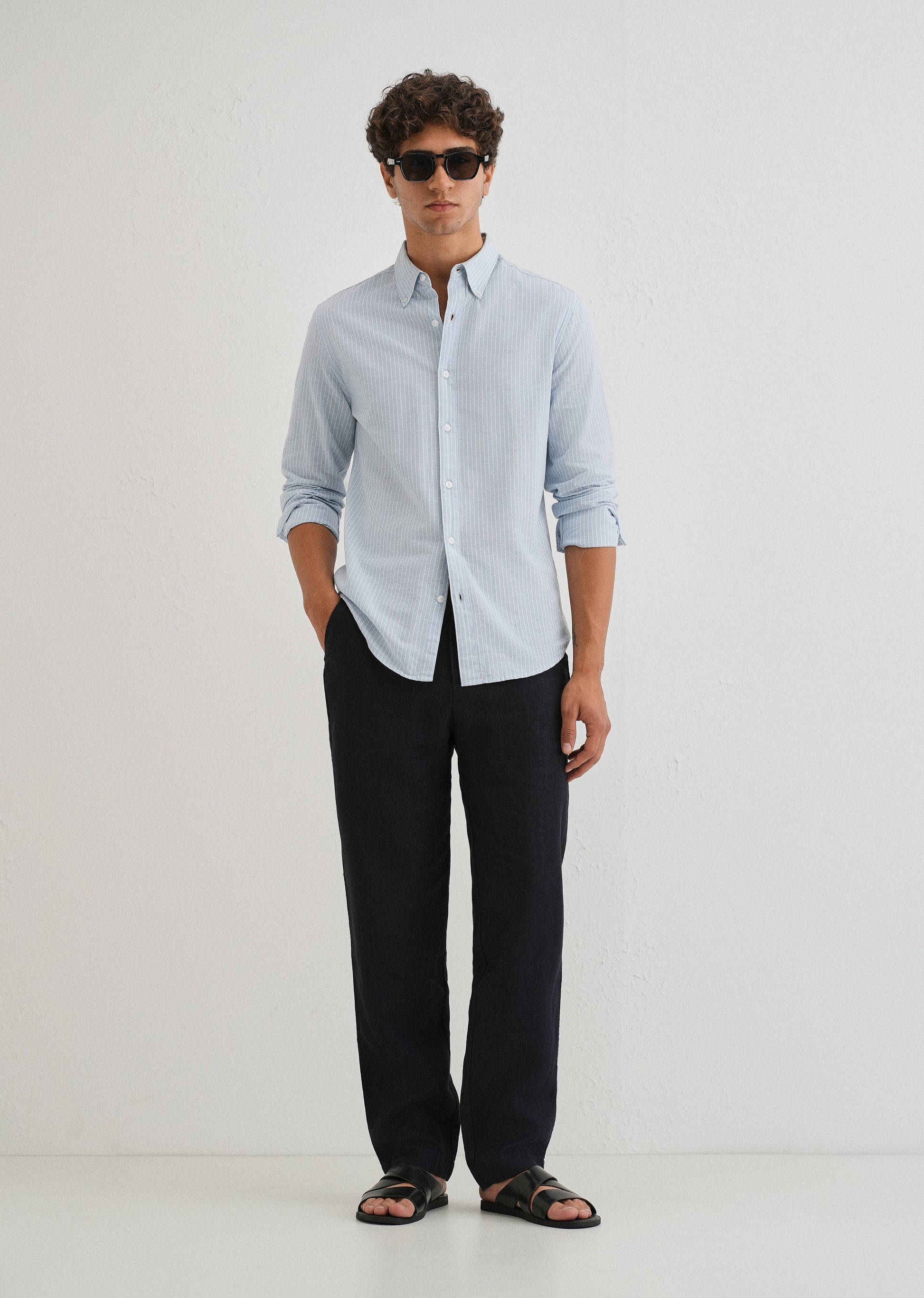 - Trousers in airy linen with covered elastication and a concealed drawstring at the waist.