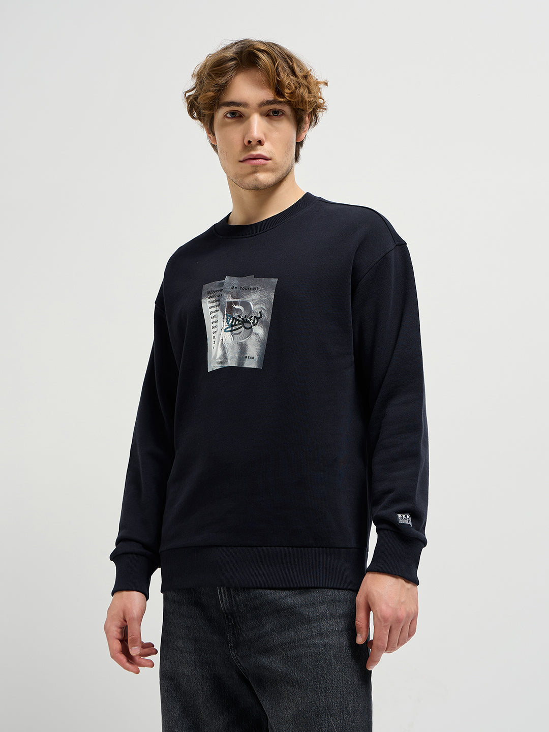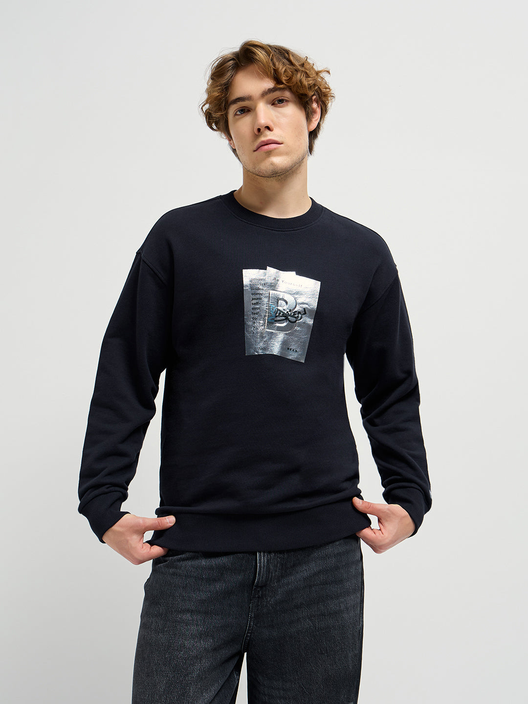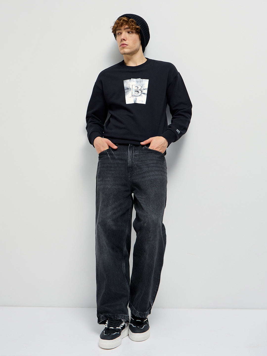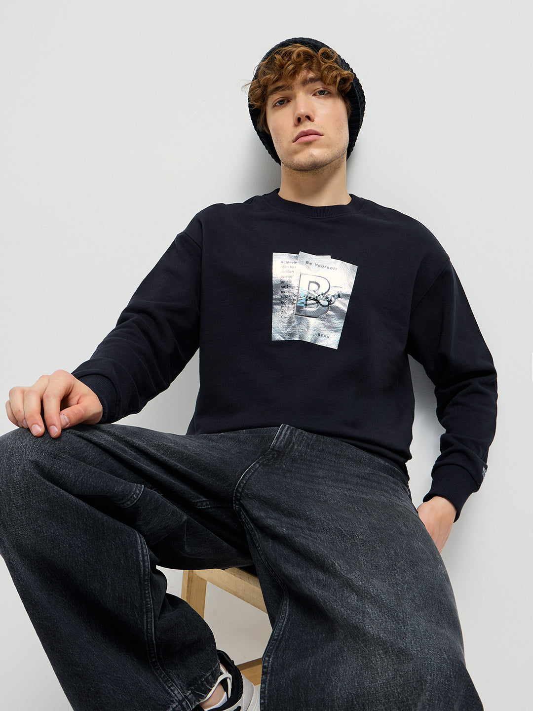 Black Graphic Printed Relax Fit Crew Neck Sweatshirt