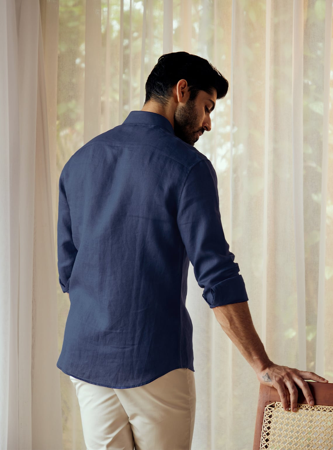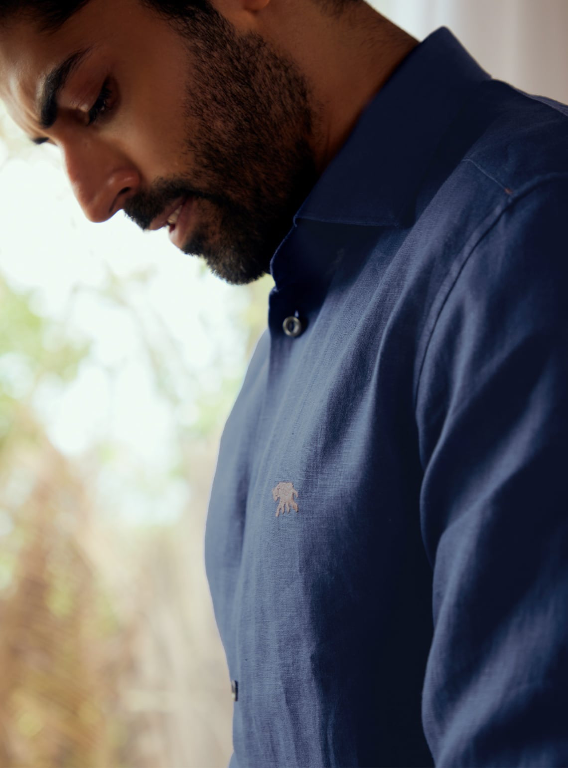 Timeless, soft to touch & naturally breathable. Our iconic linen shirts are back for another season. Crafted entirely from one of Earth's friendliest fibers, linen from European flax, a super crop that requires zero manual irrigation, is 100% bio-degradable & enriches the soil as it grows. Features a cutaway collar & Rajan, the mark of Andamen.